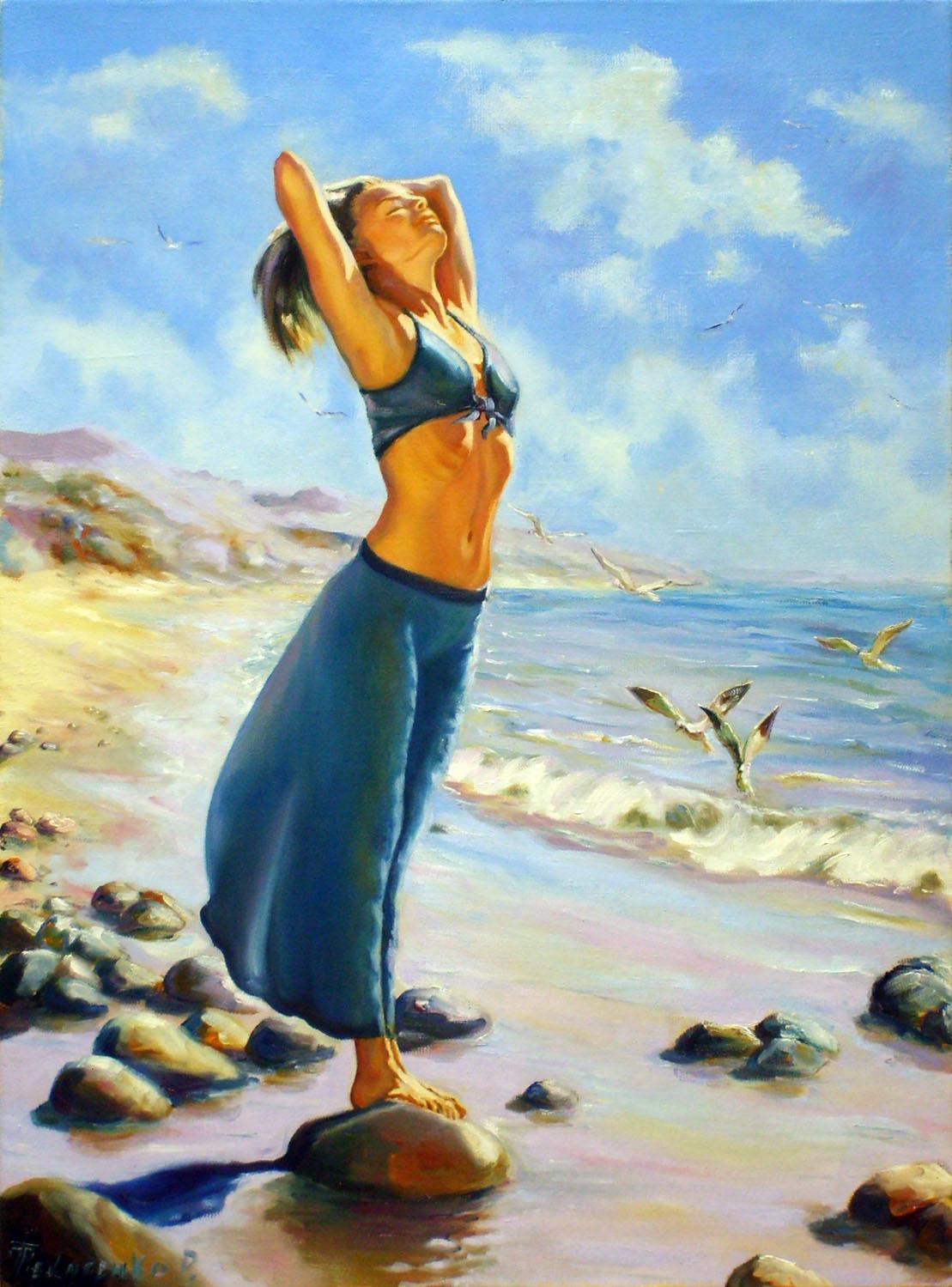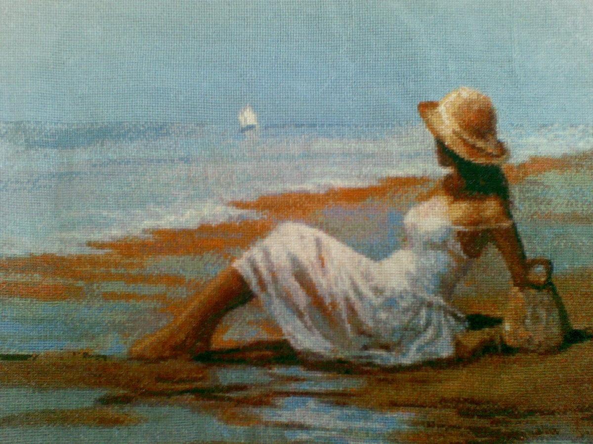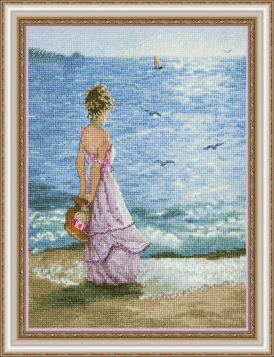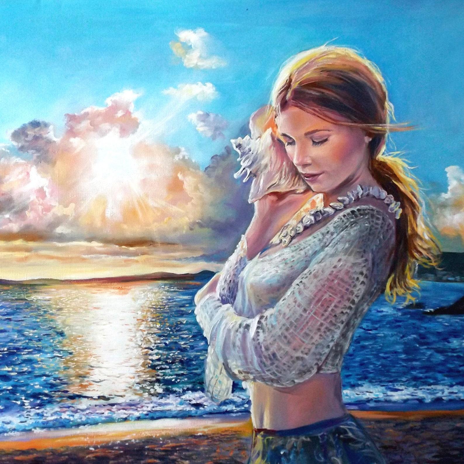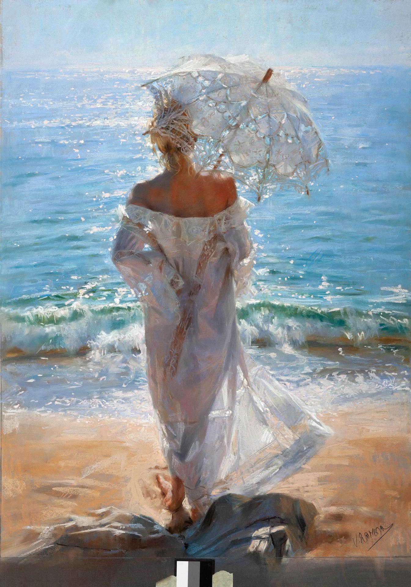Девушка на берегу моря нарисованные