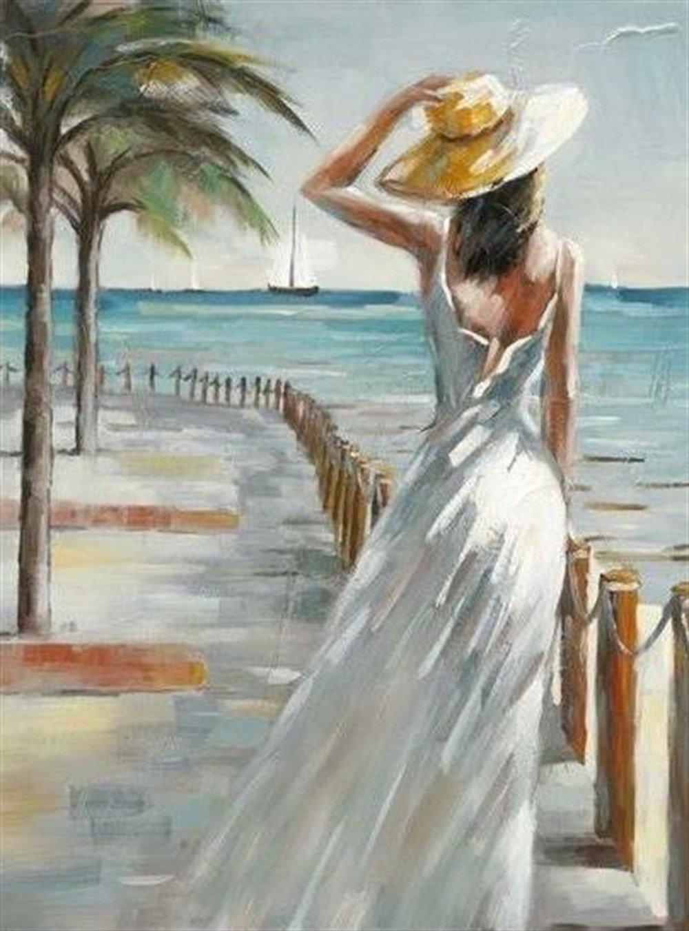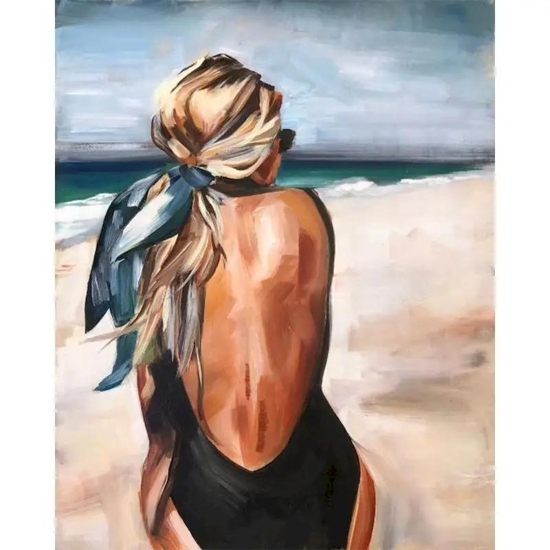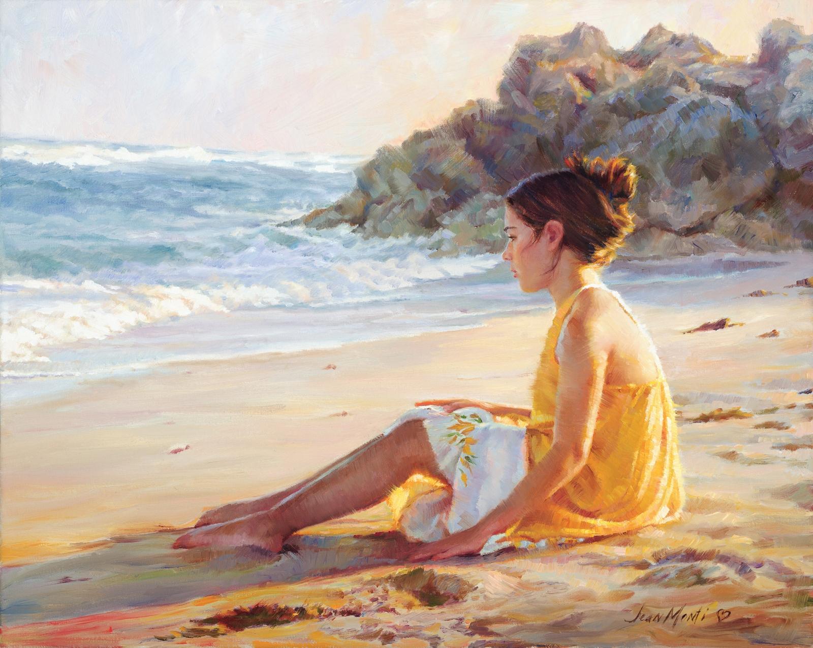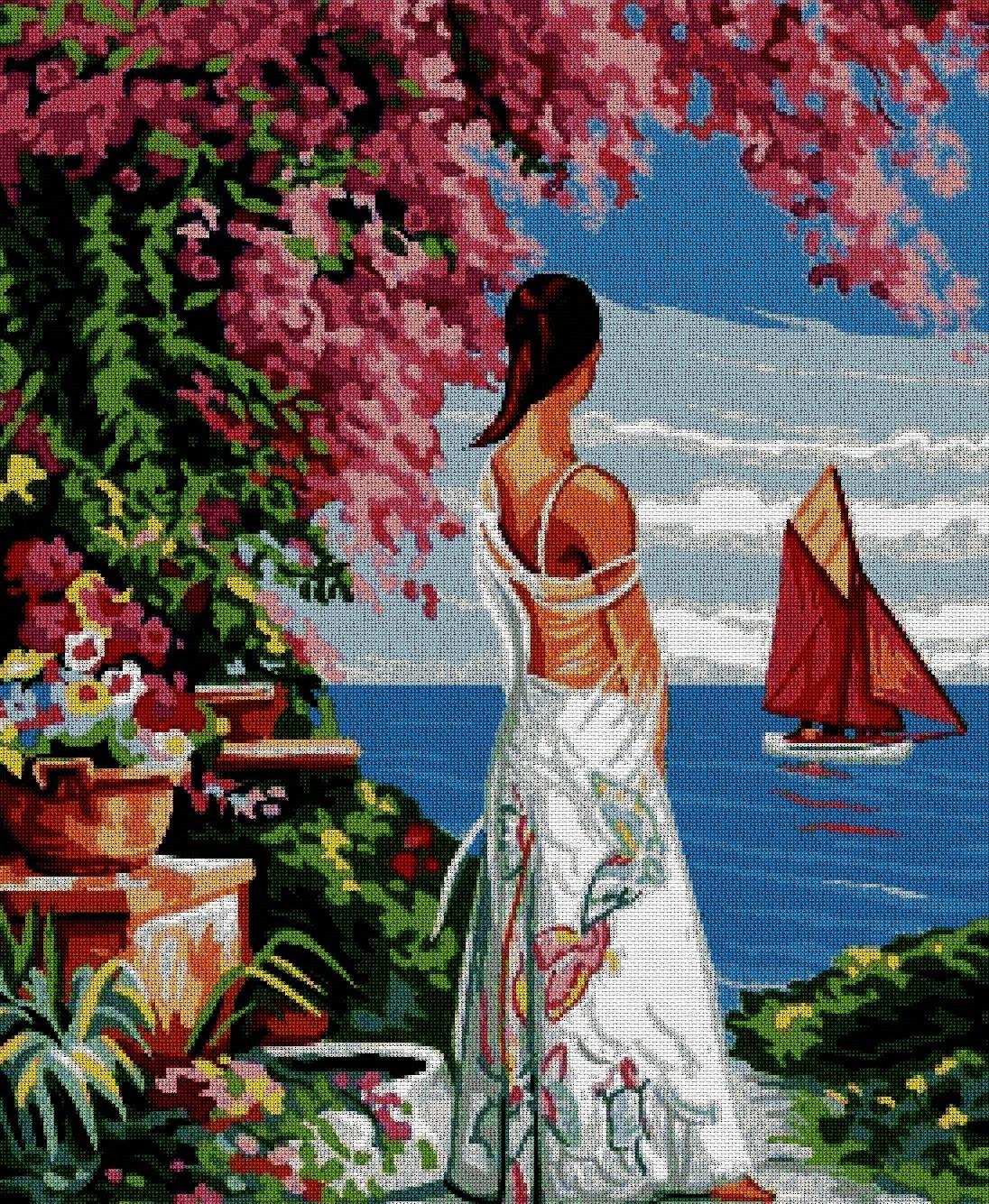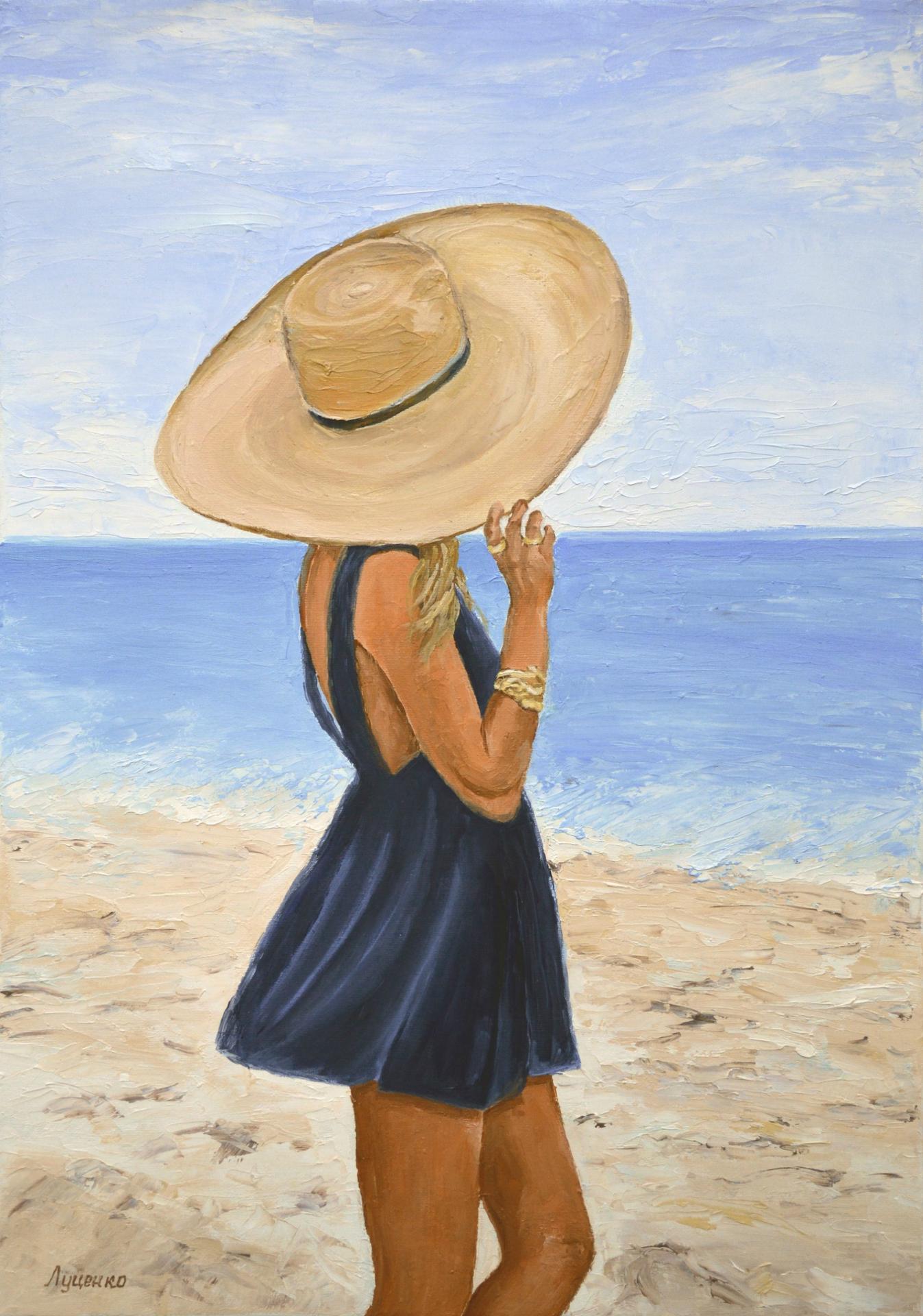 Девушка на берегу моря нарисованные