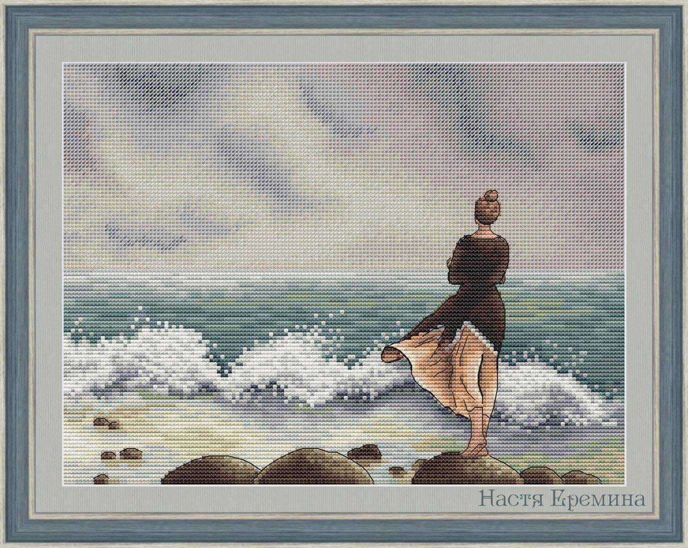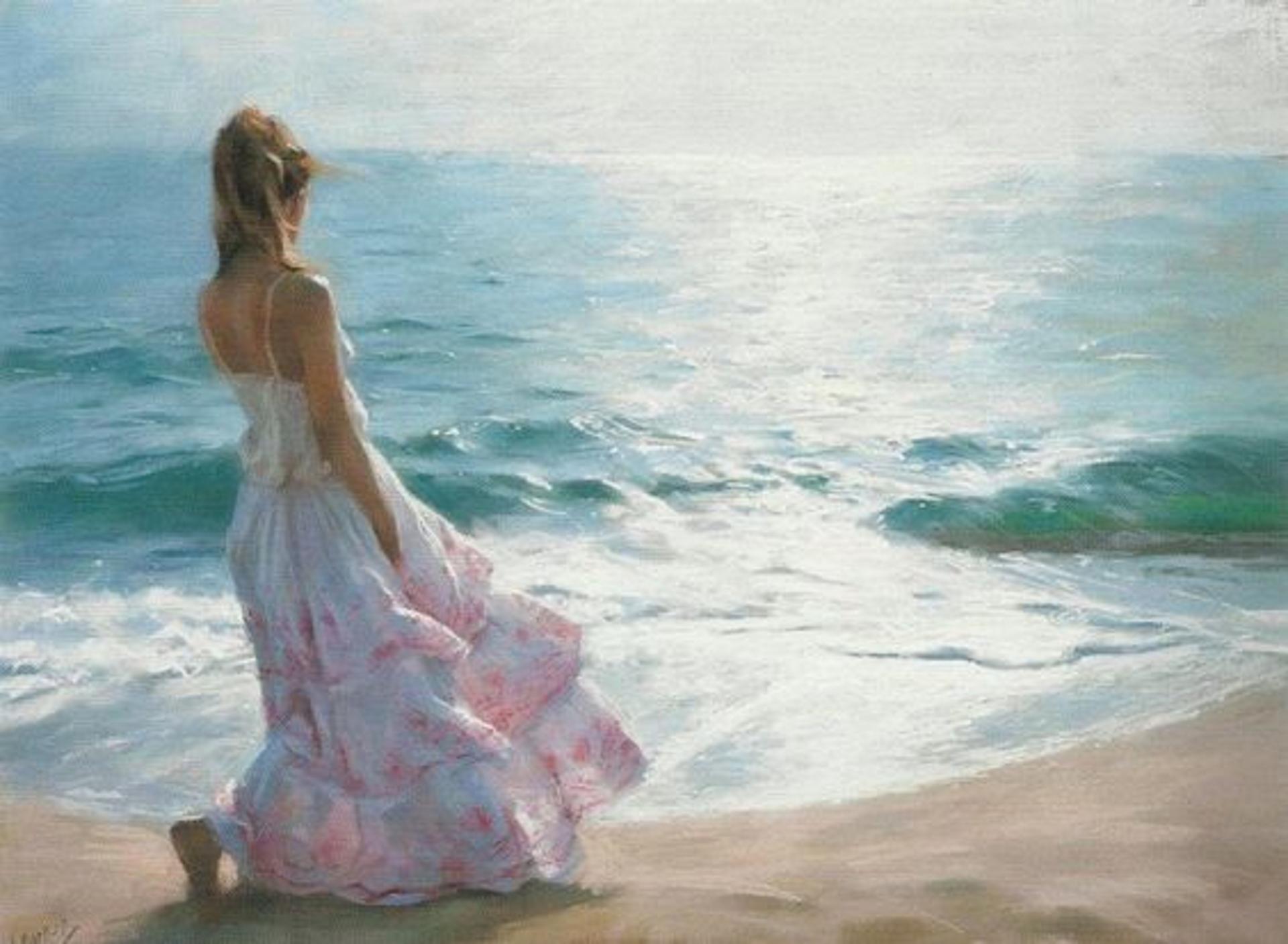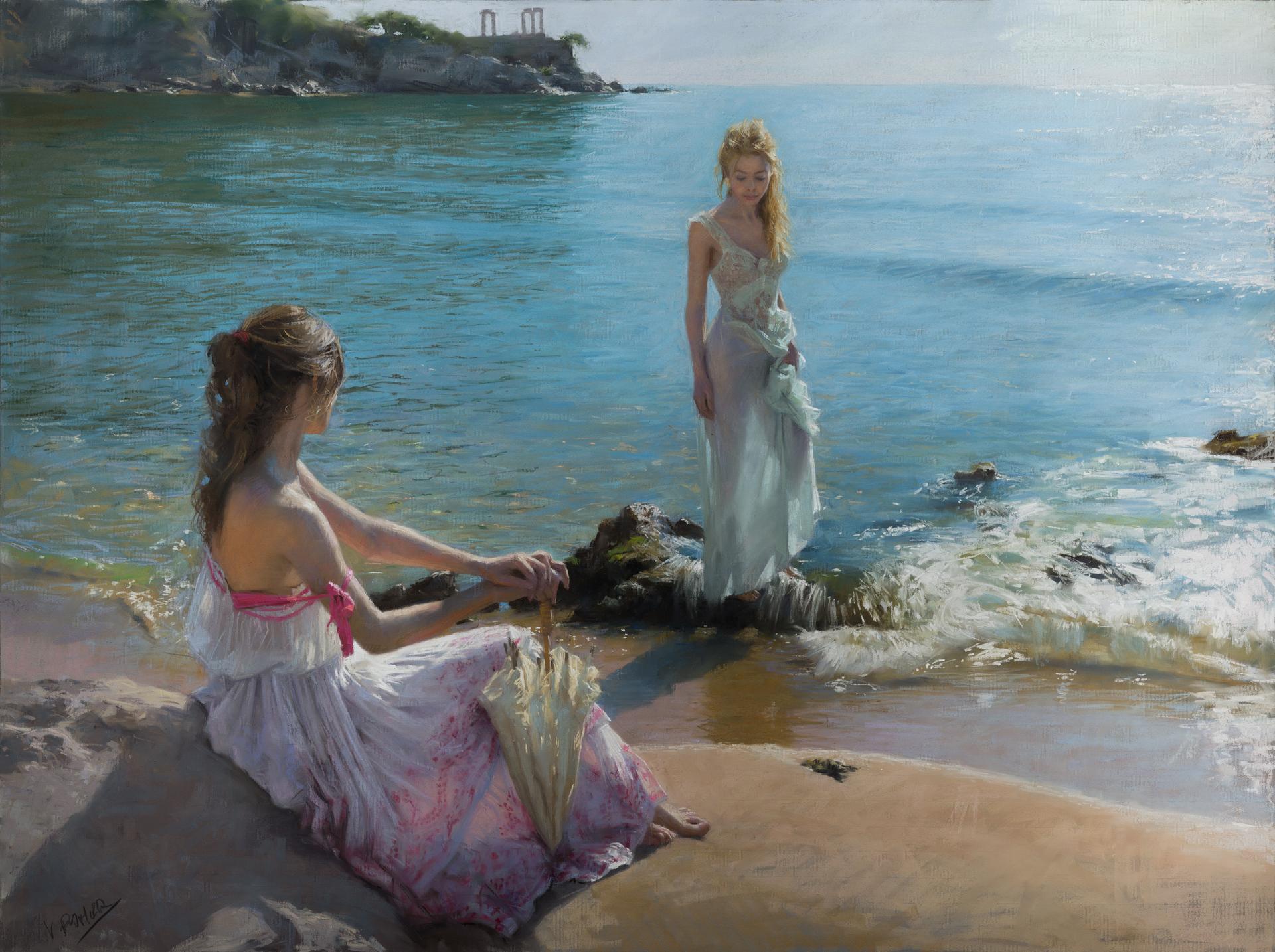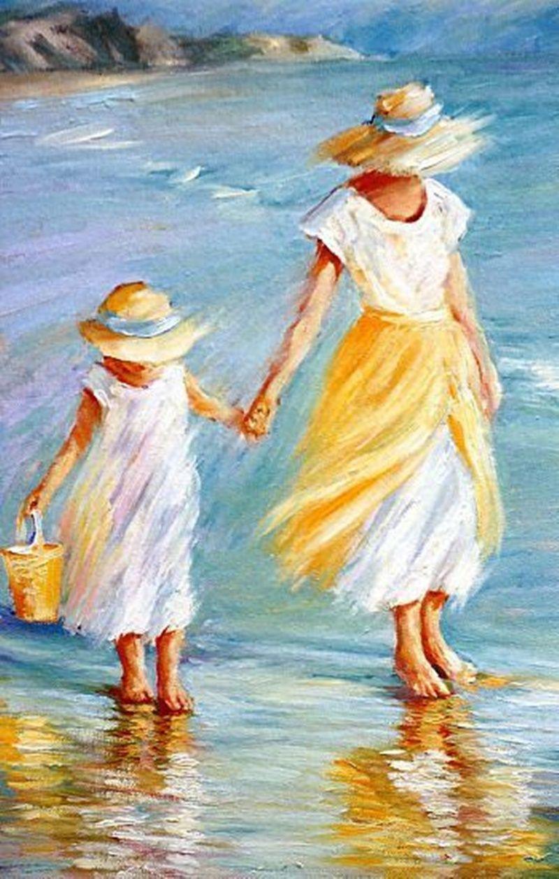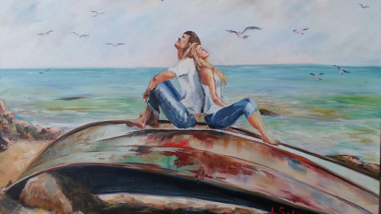 Девушка на берегу моря нарисованные