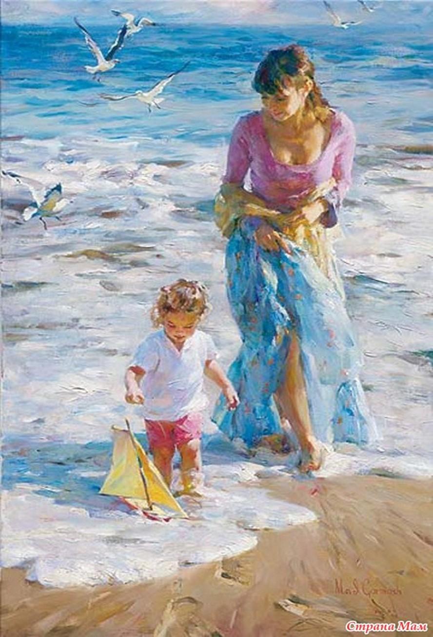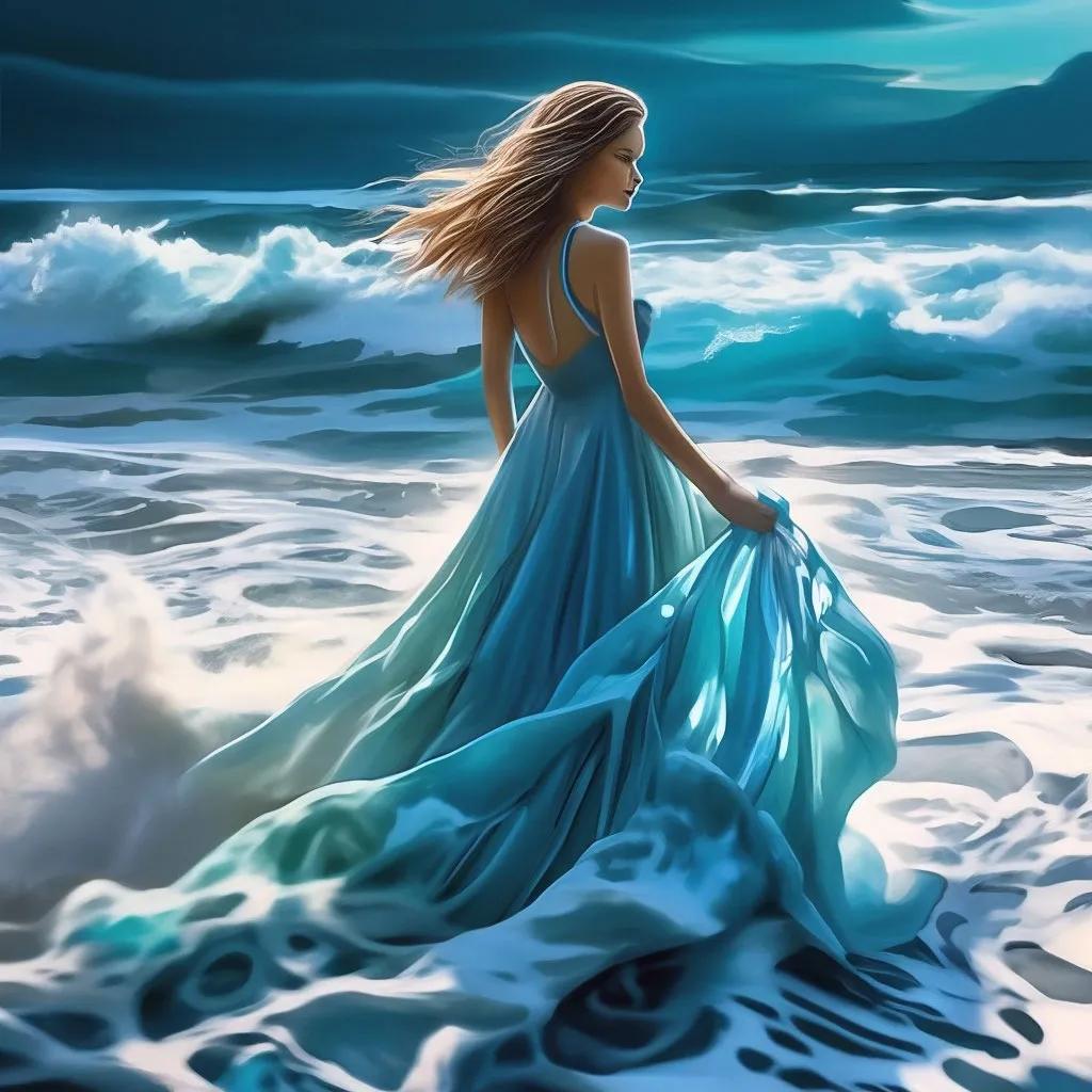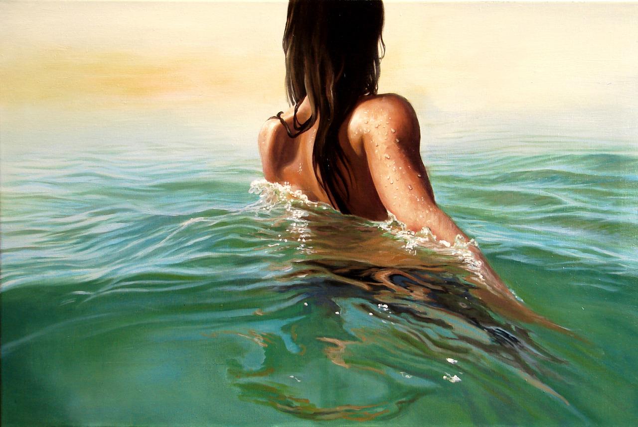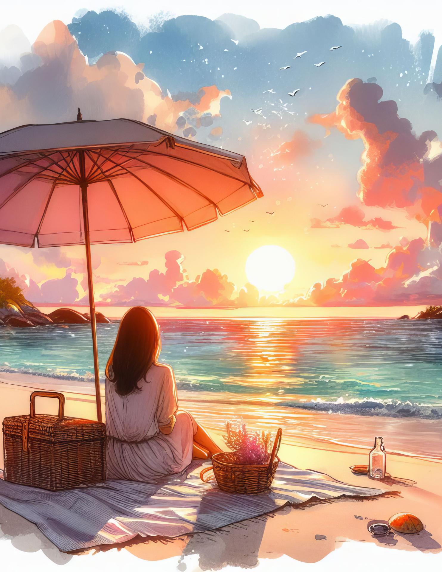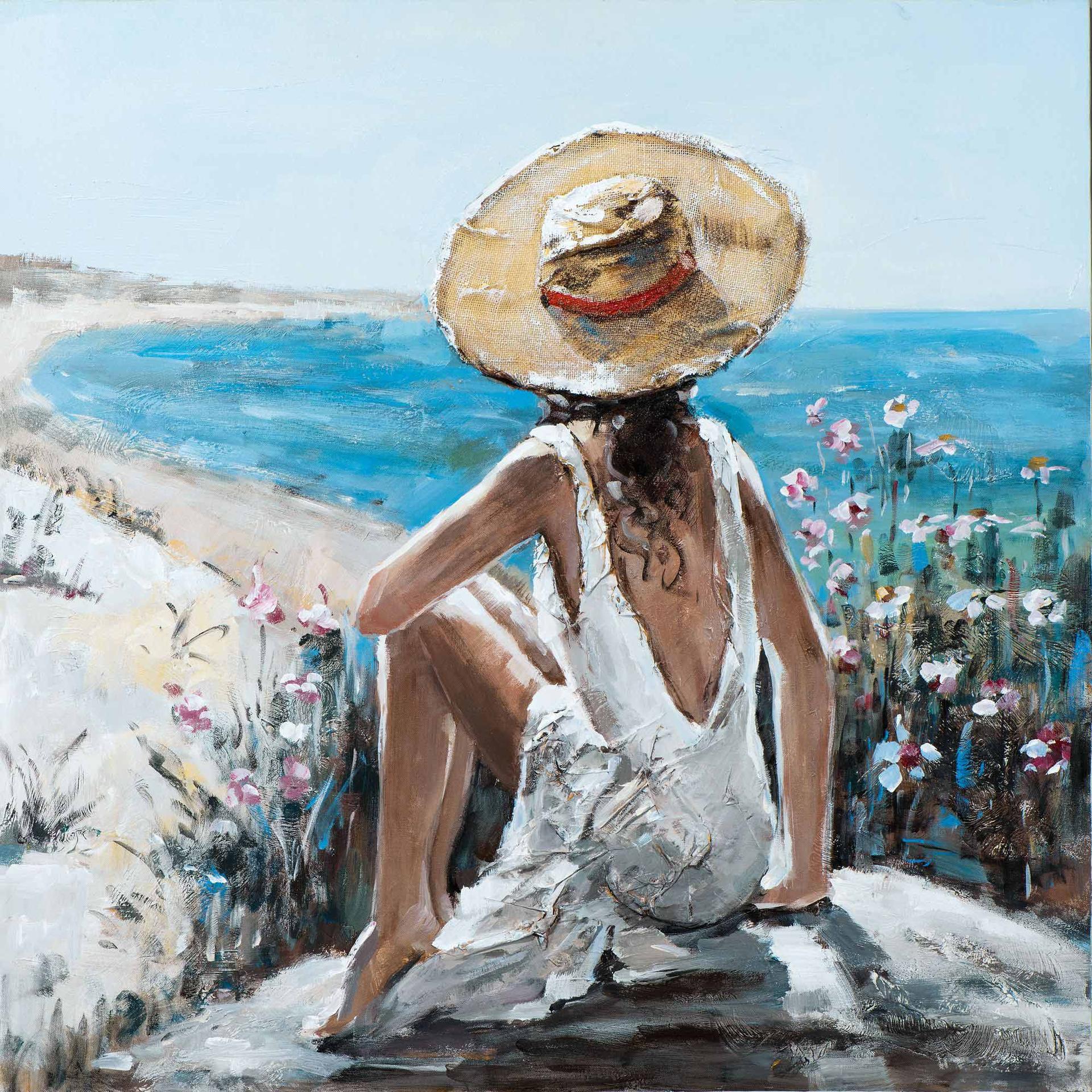 Девушка на берегу моря нарисованные