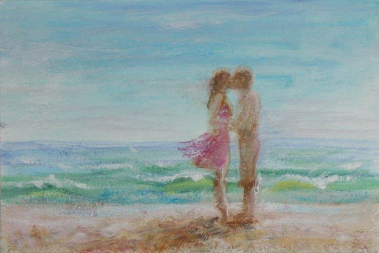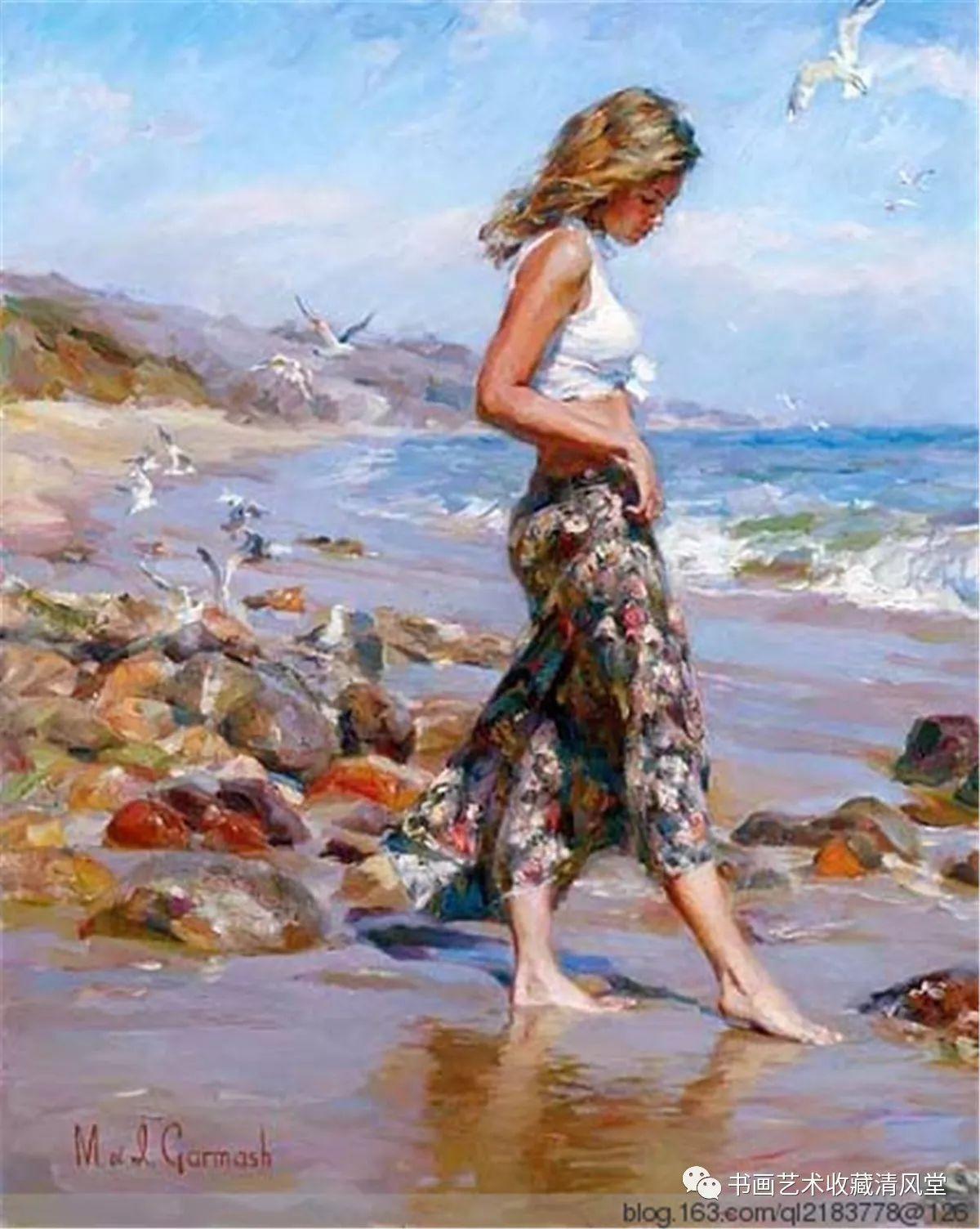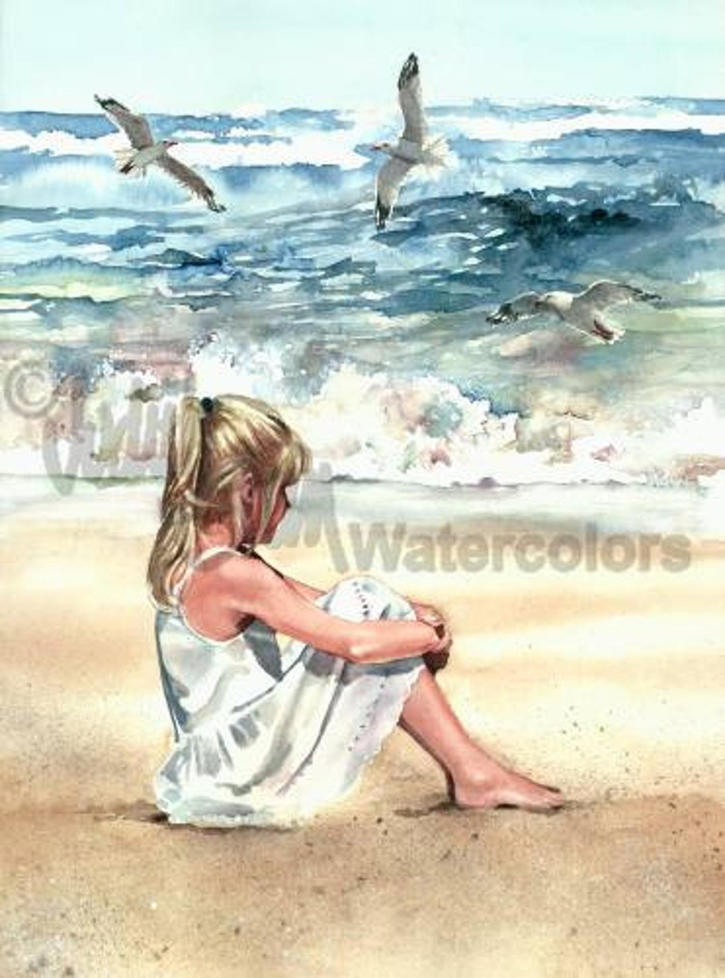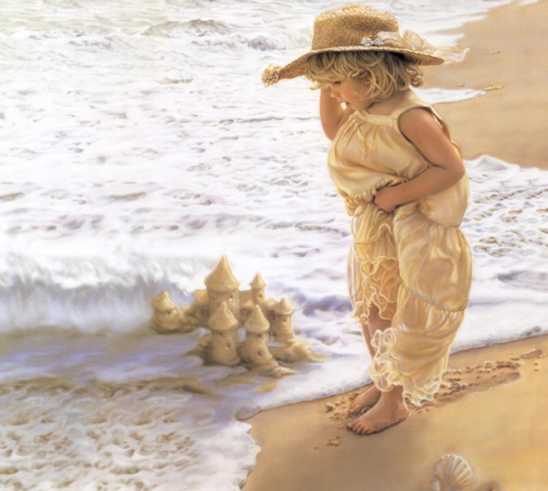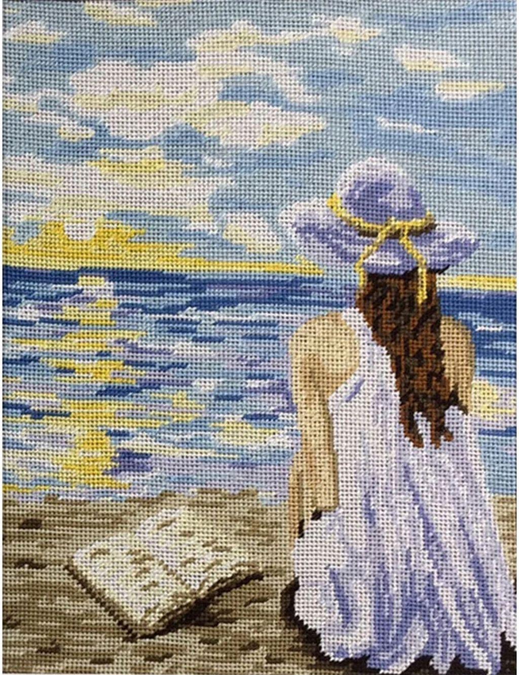 Девушка на берегу моря нарисованные