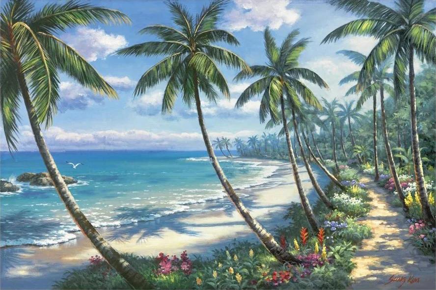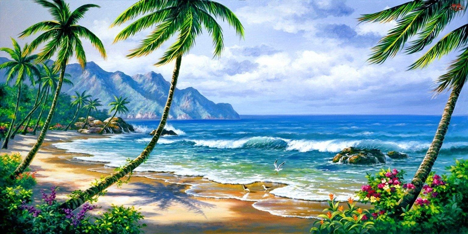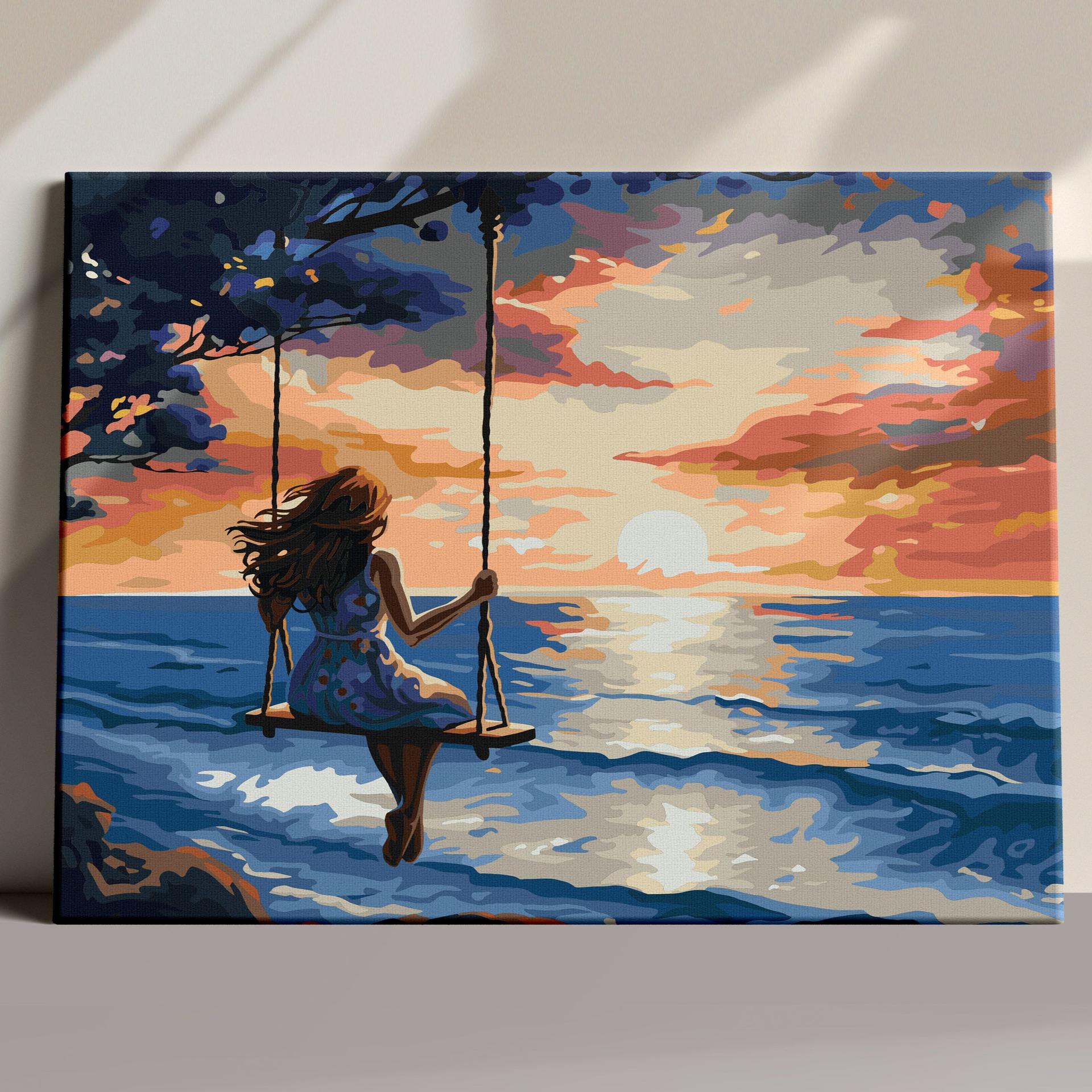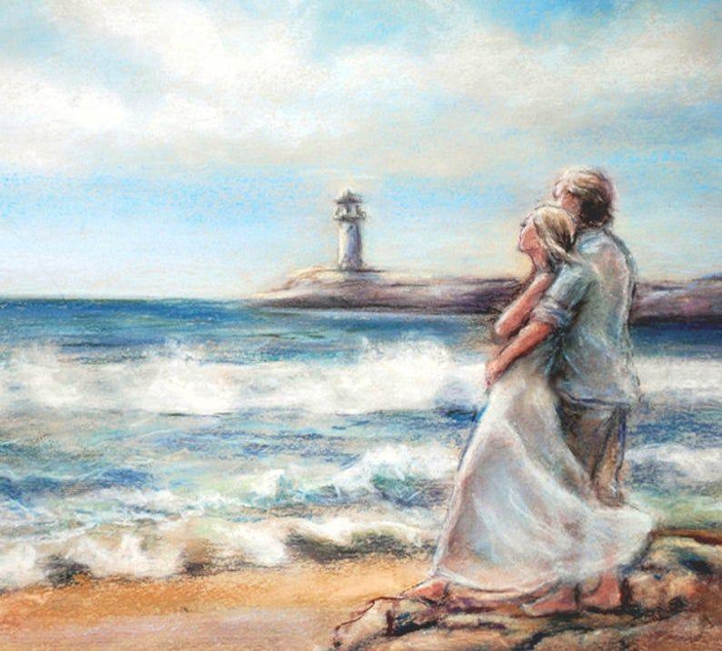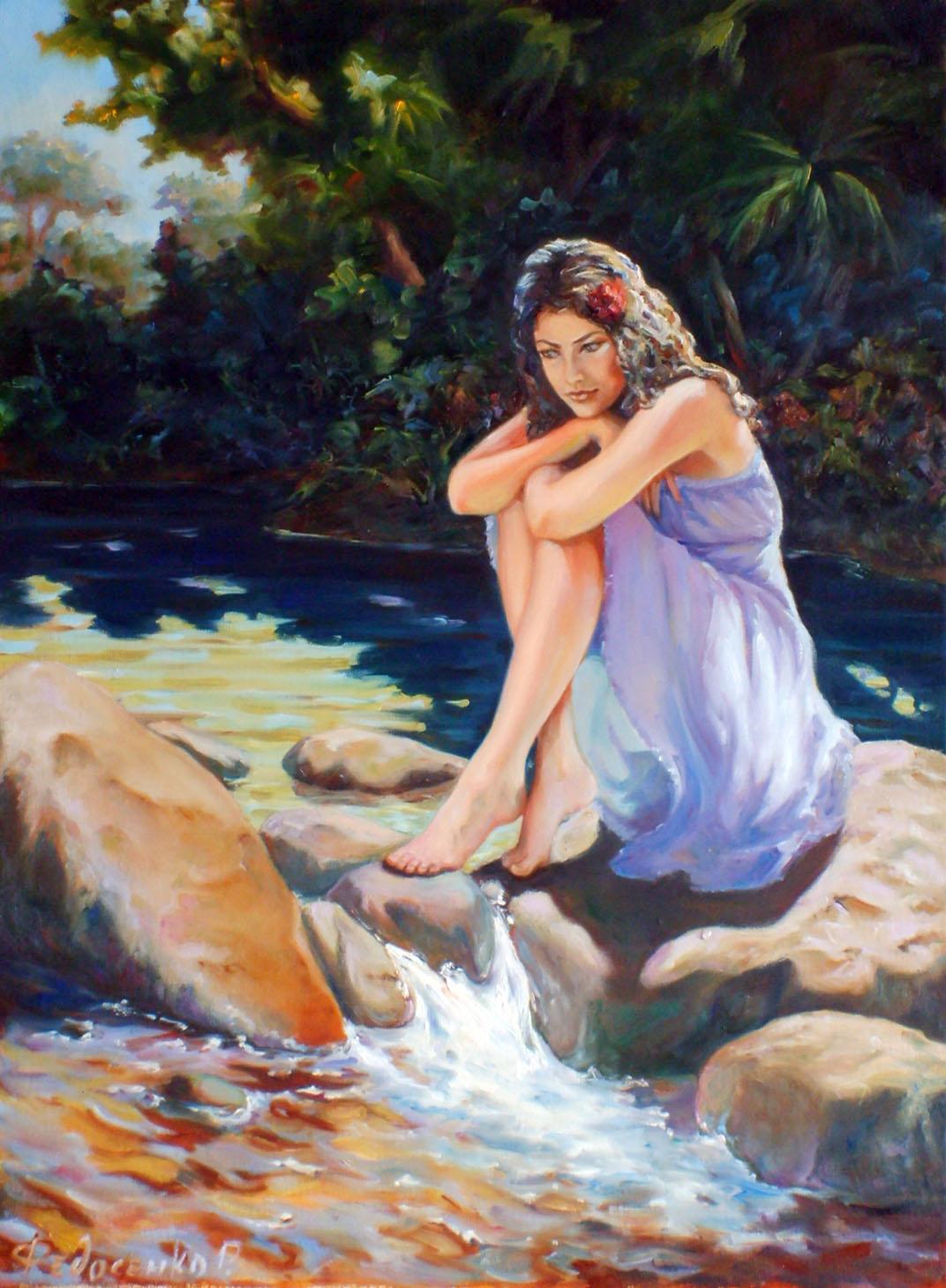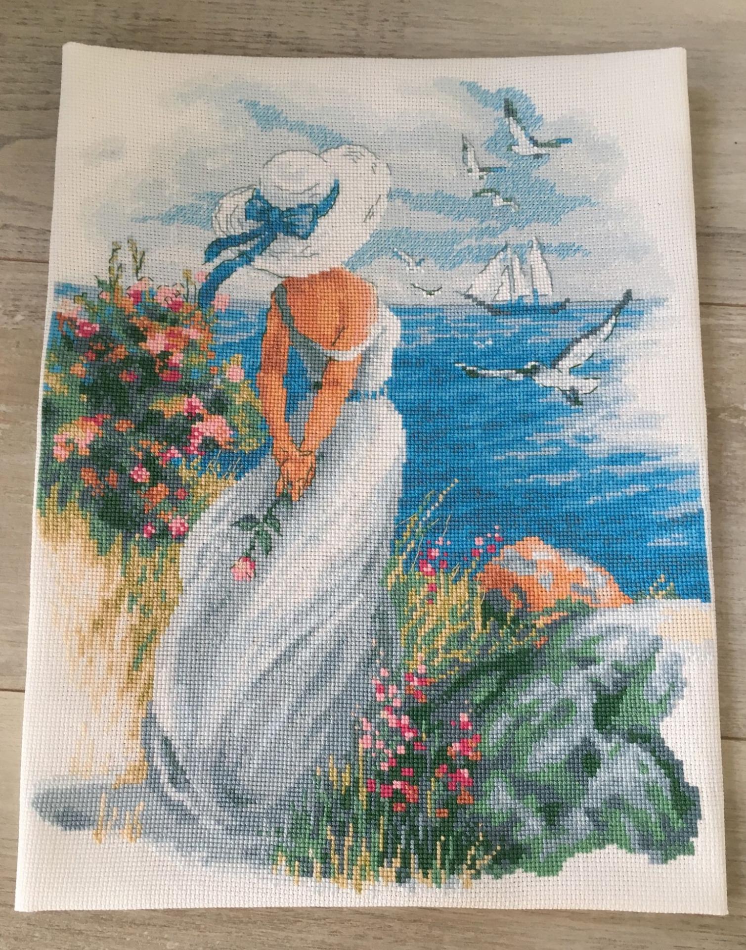 Девушка на берегу моря нарисованные