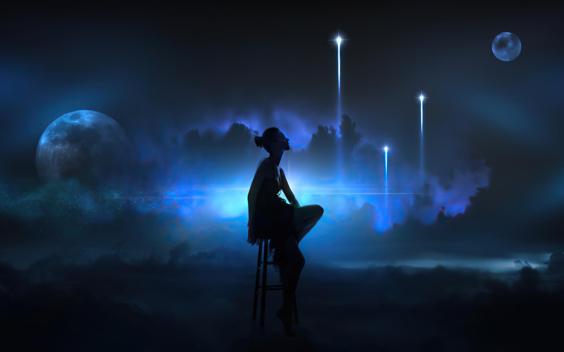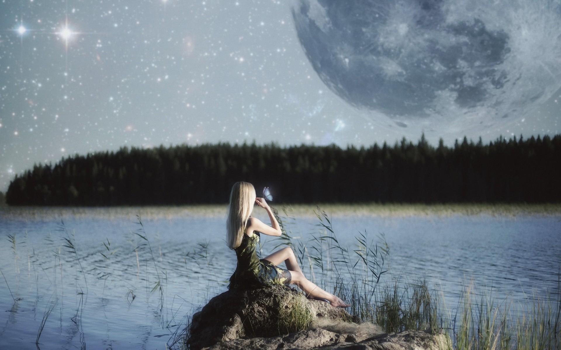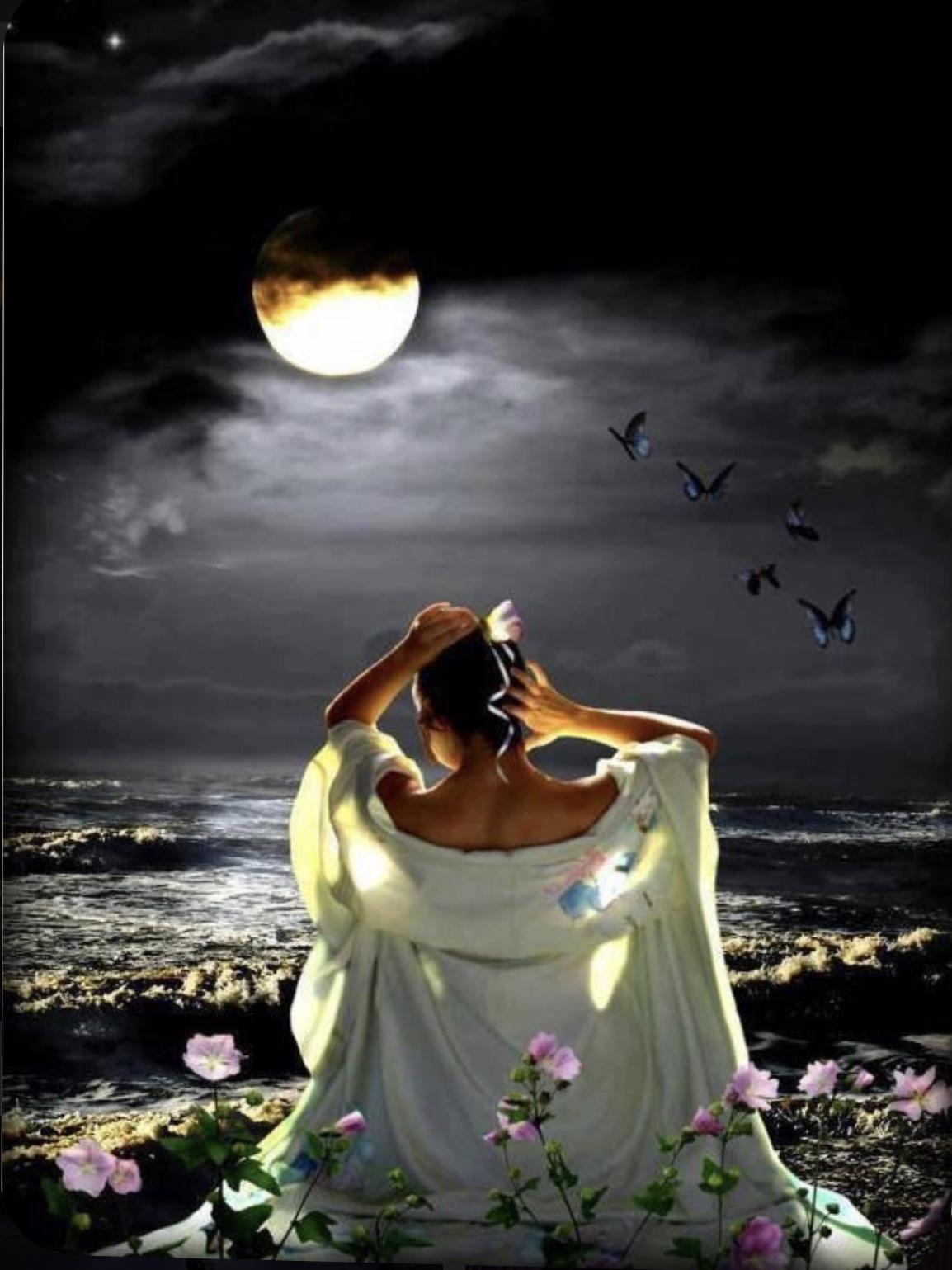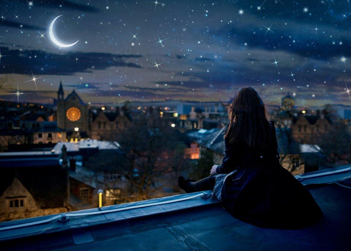 Красивые картинки Ночная девушка с надписями