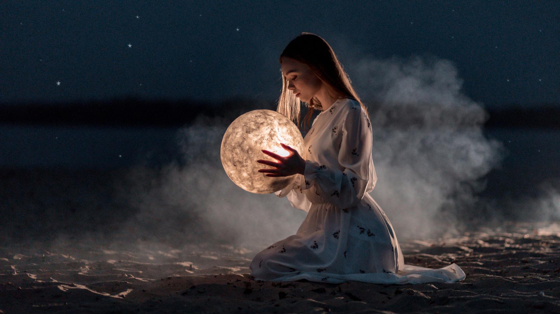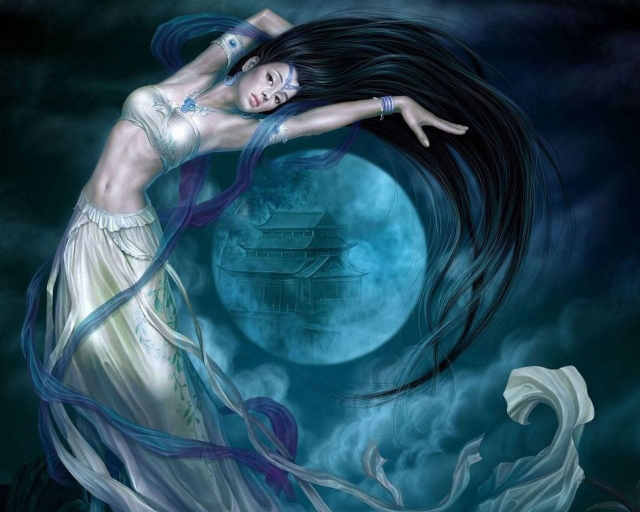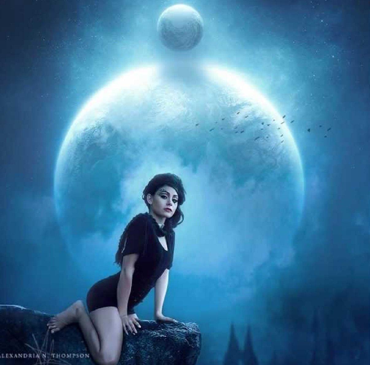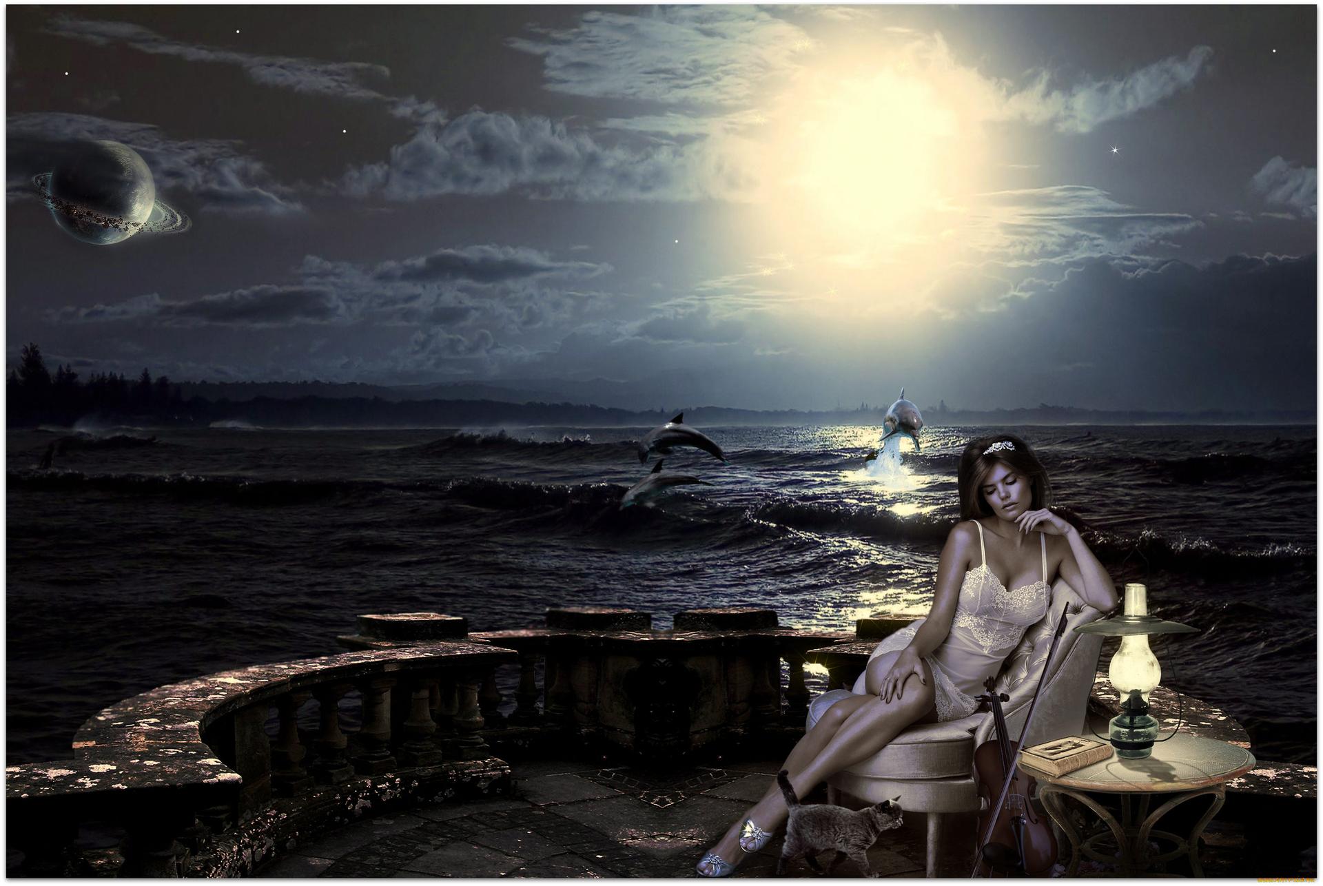 Красивые картинки Ночная девушка с надписями