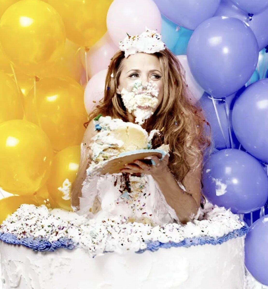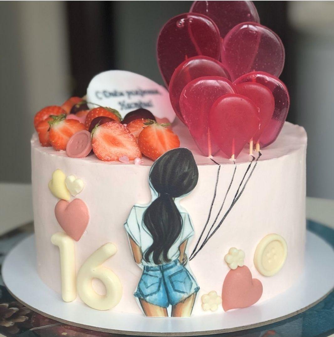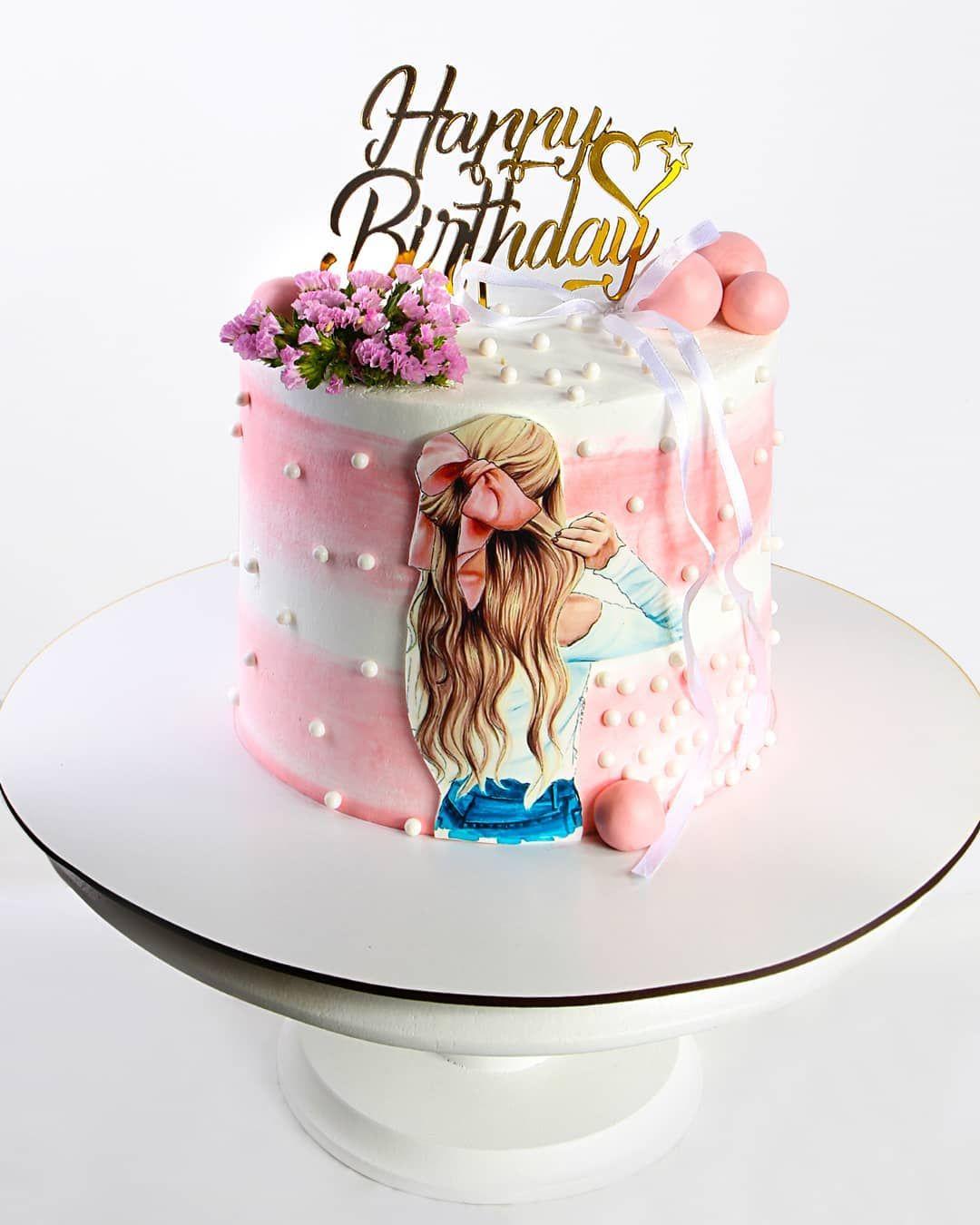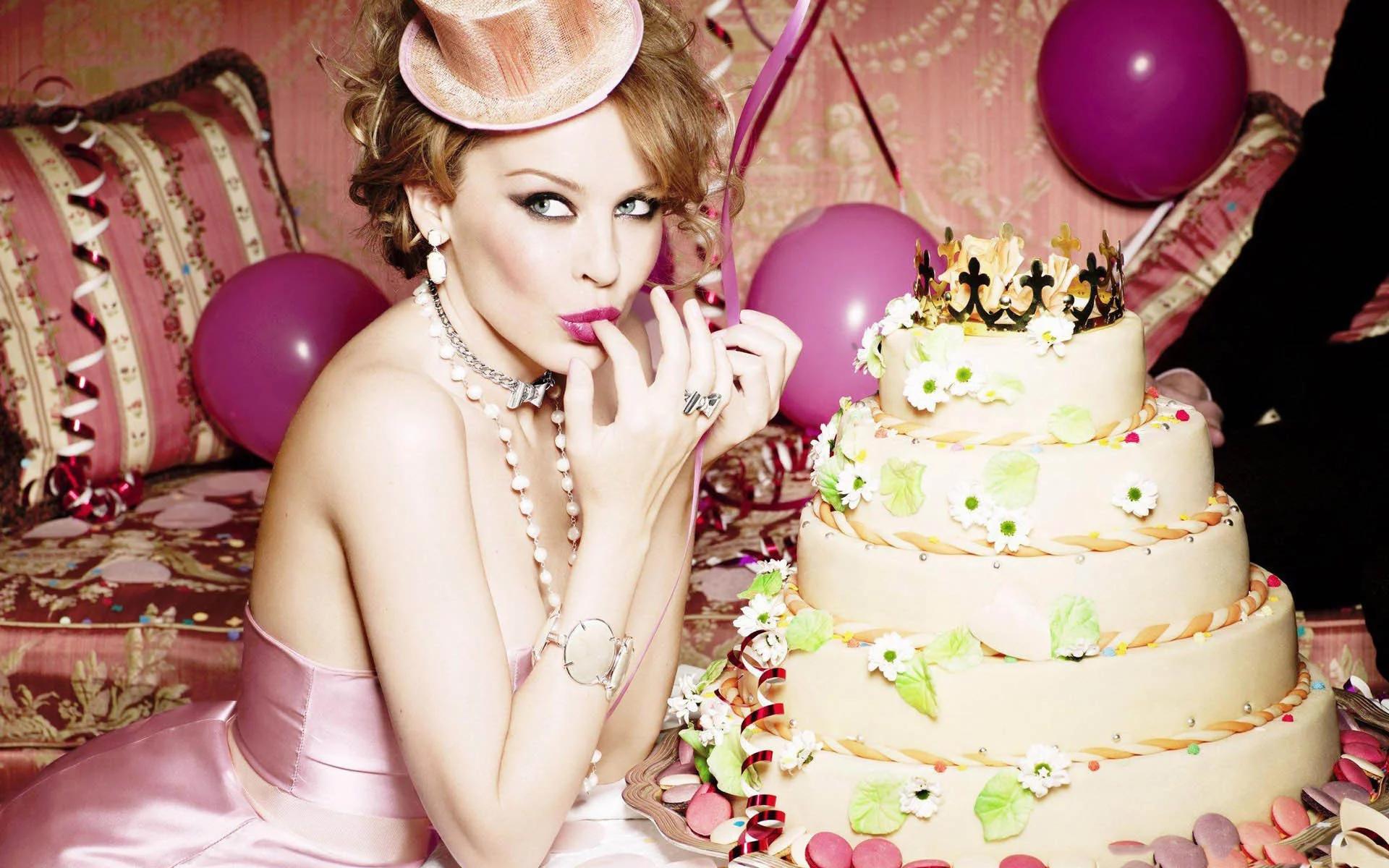 Красивые картинки Девушка с тортом с надписями