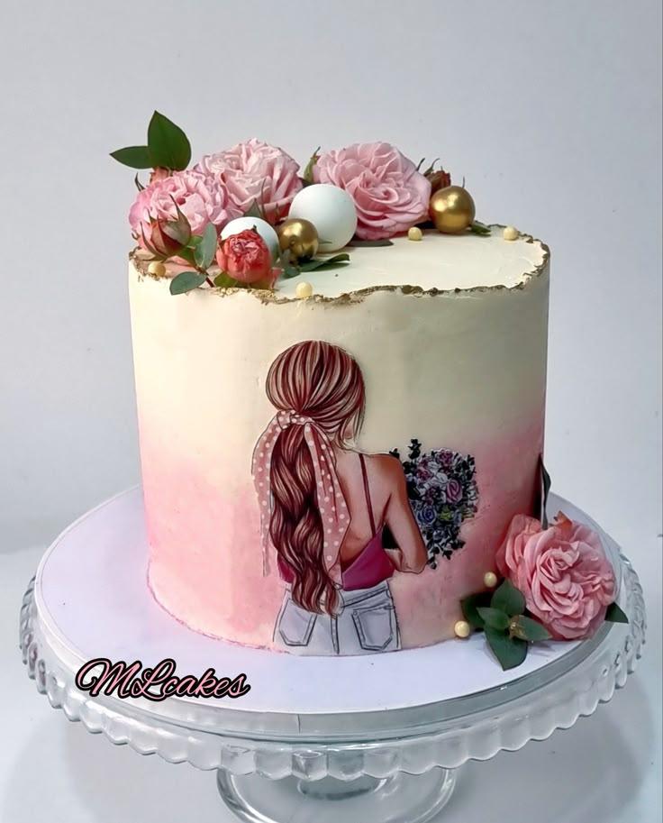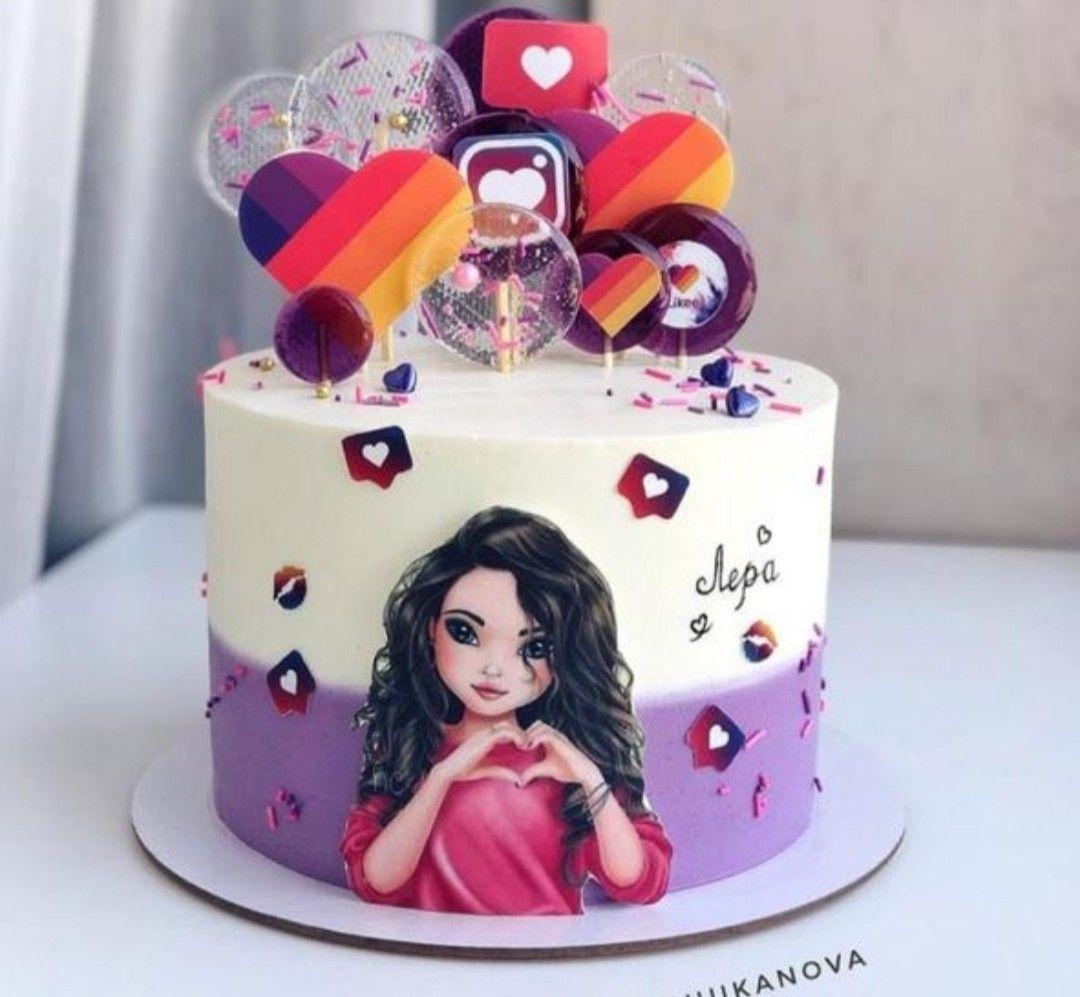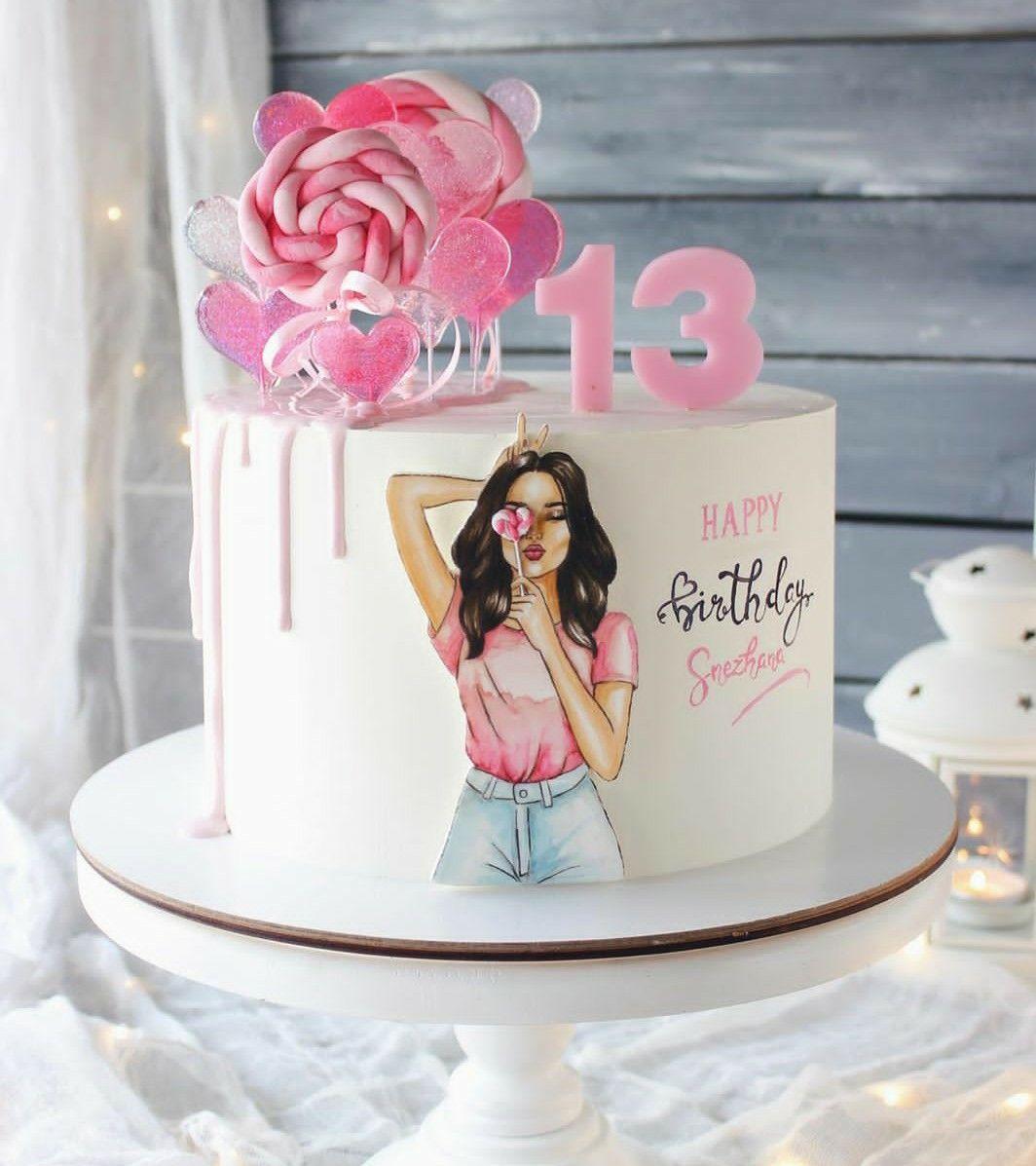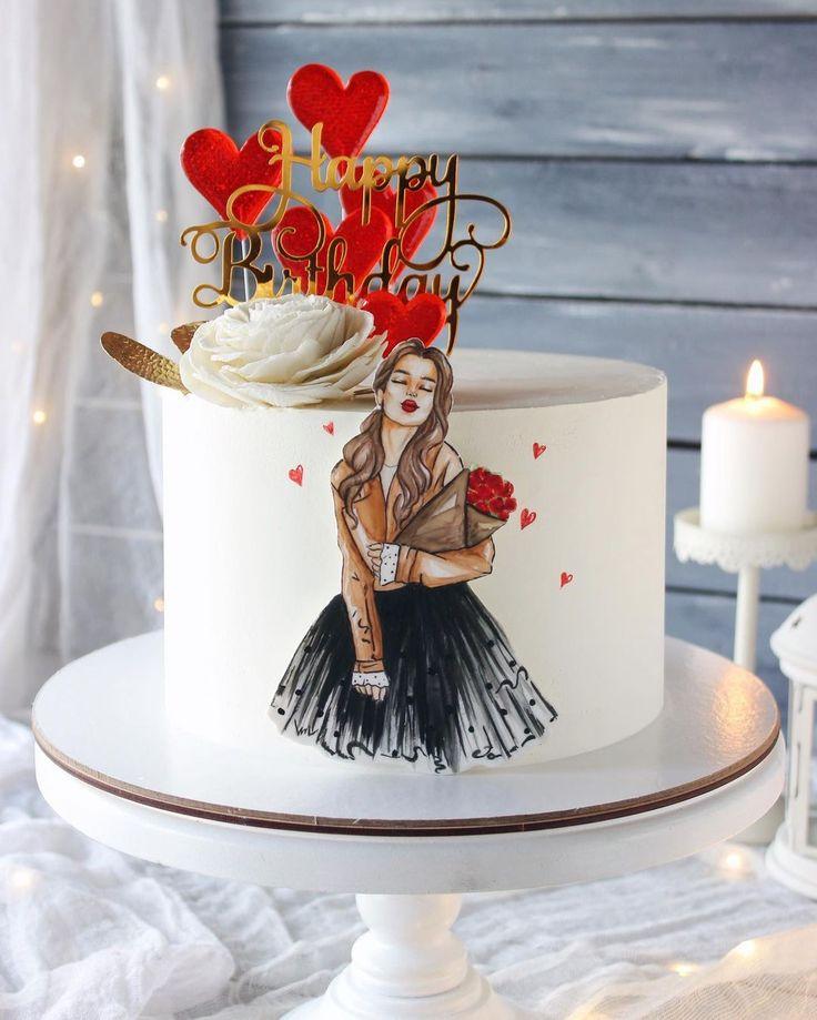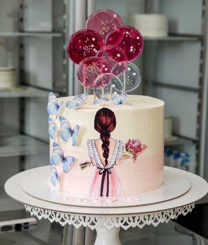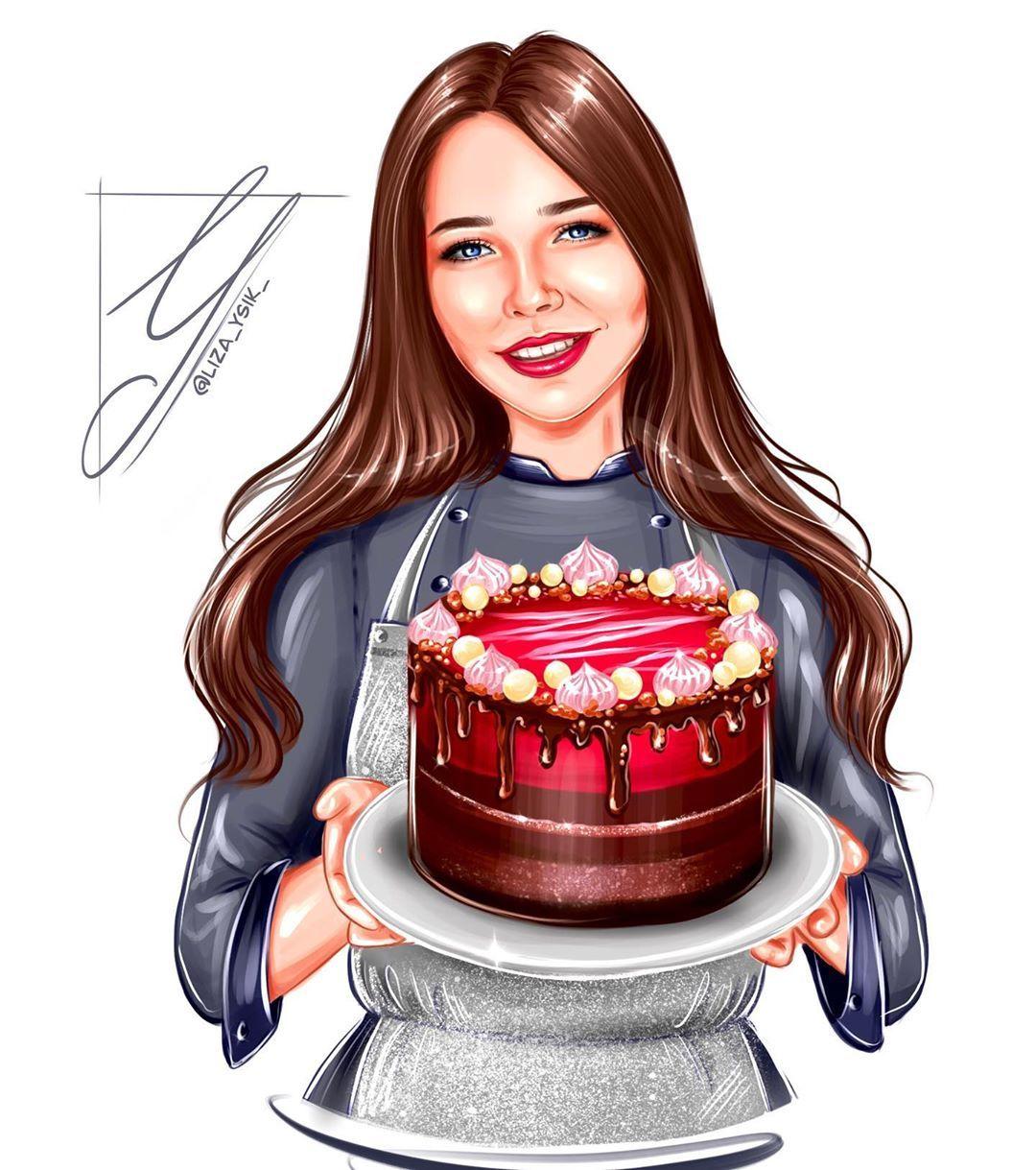 Красивые картинки Девушка с тортом с надписями