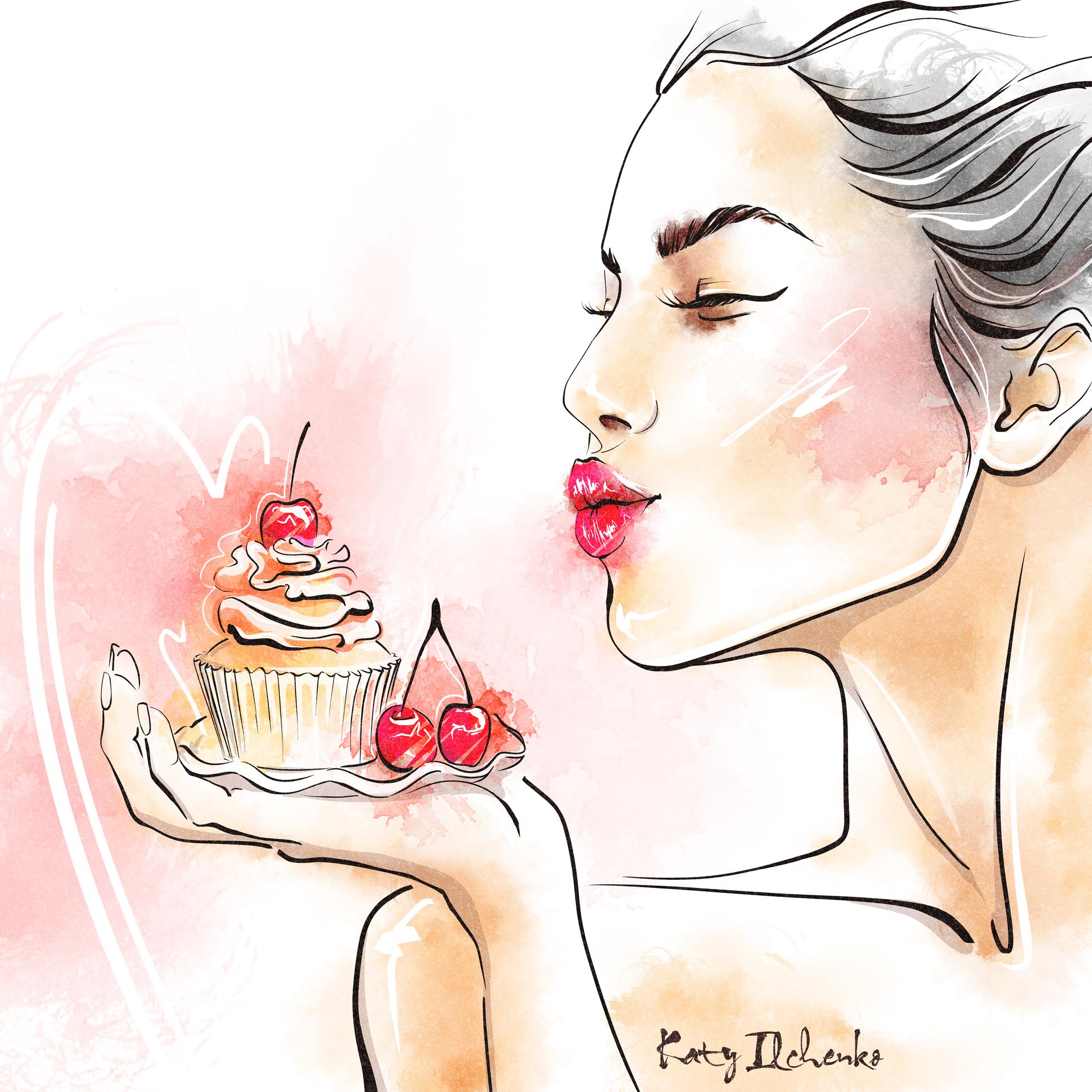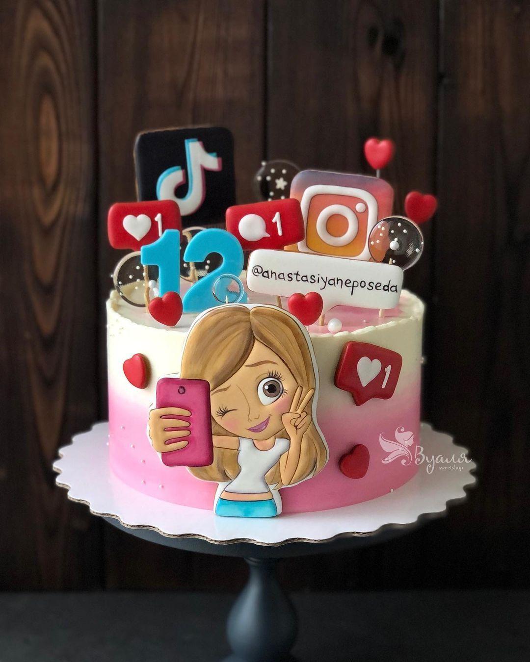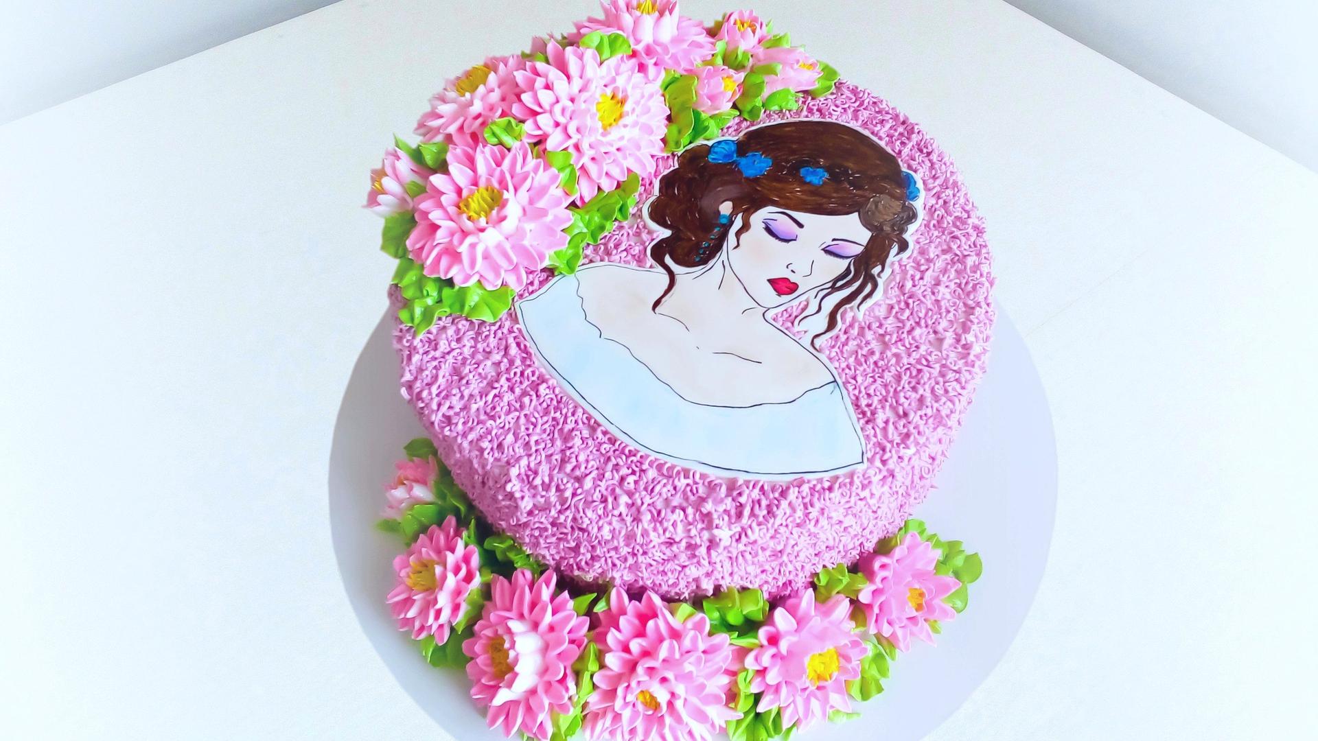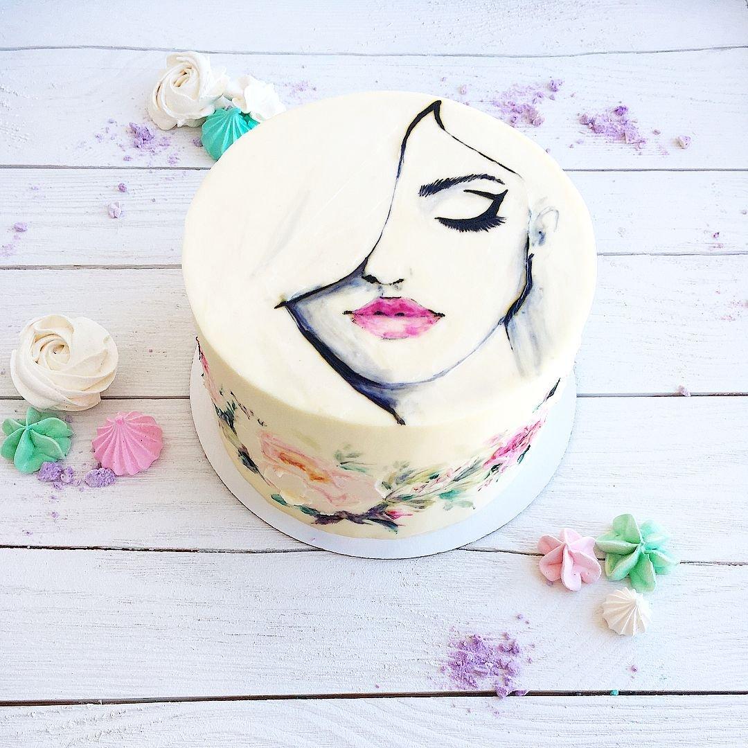 Красивые картинки Девушка с тортом с надписями