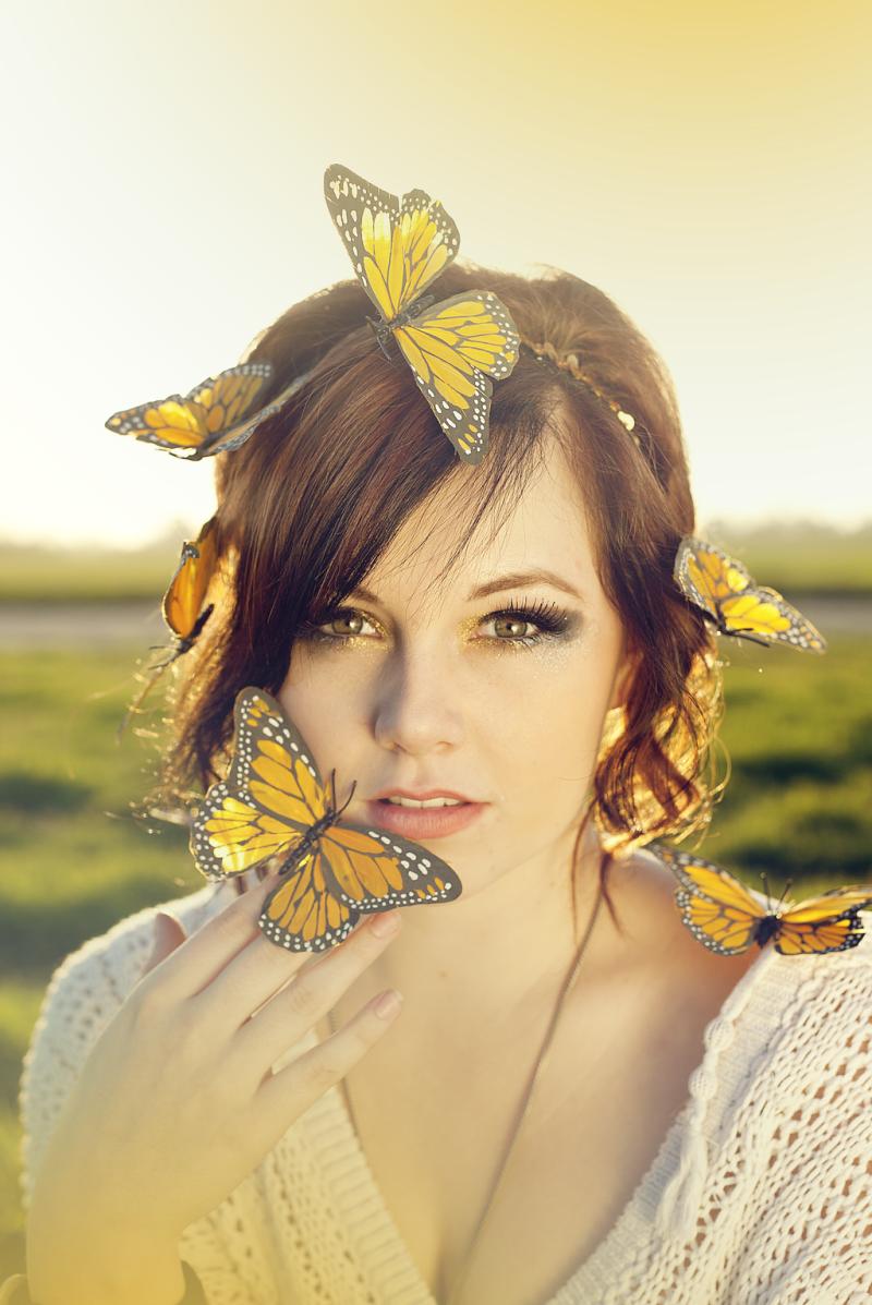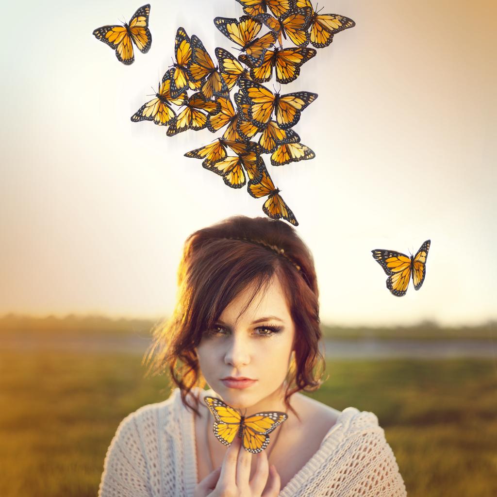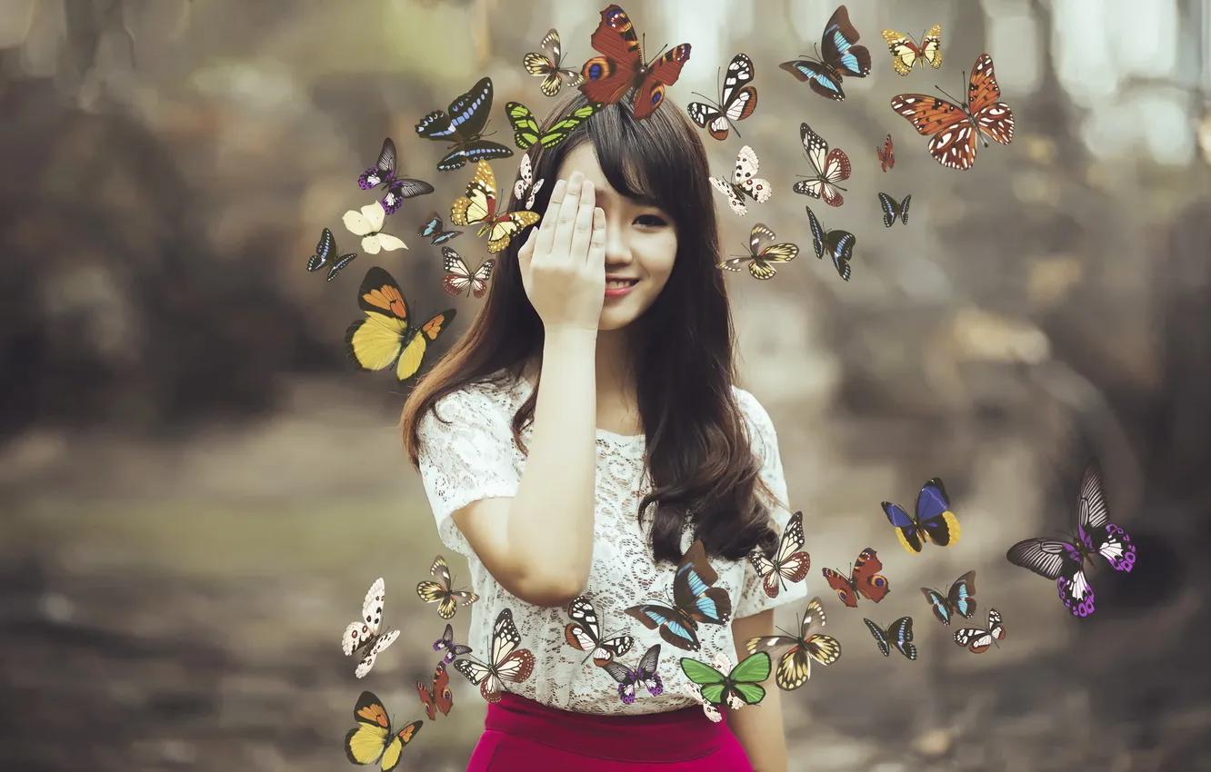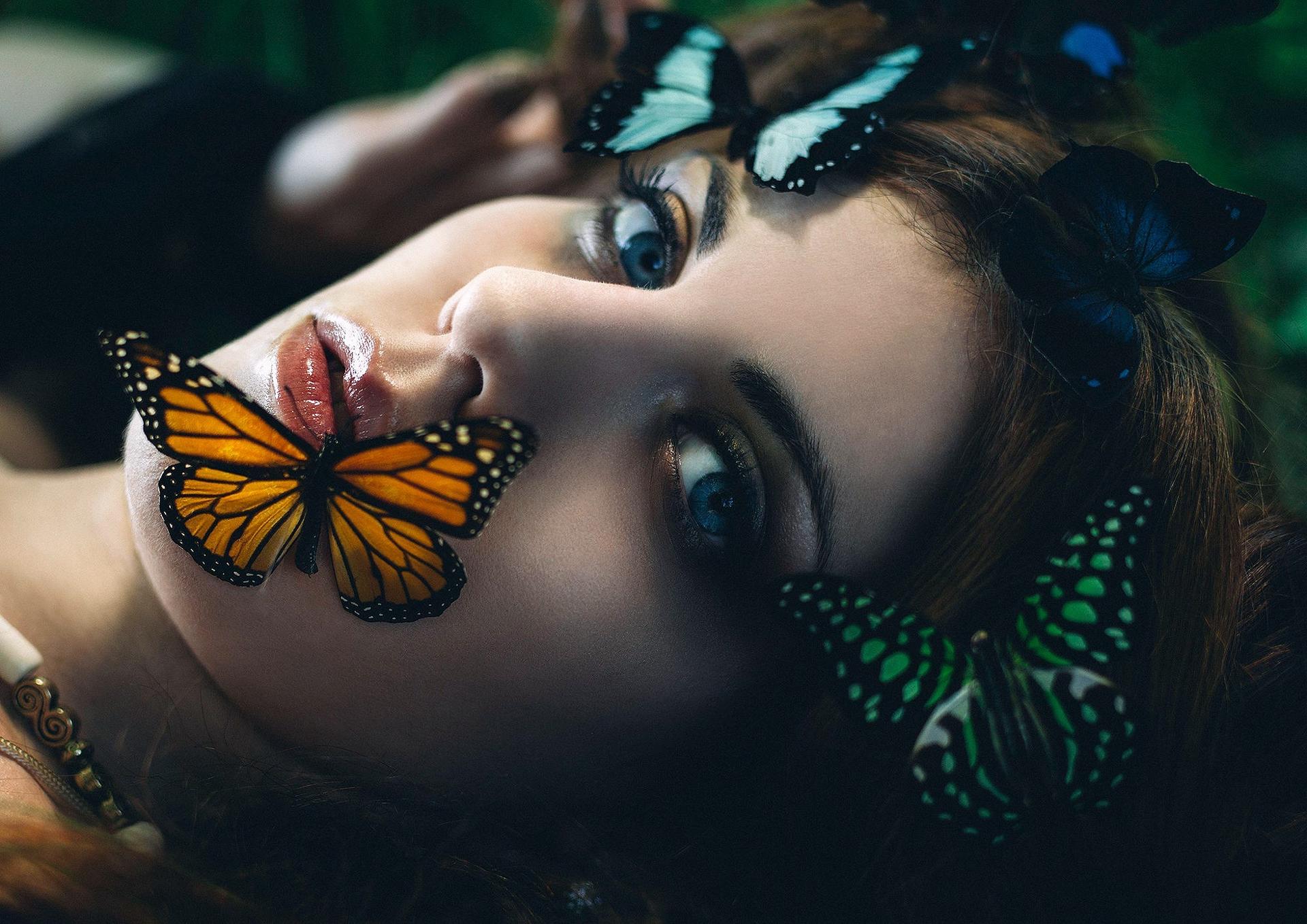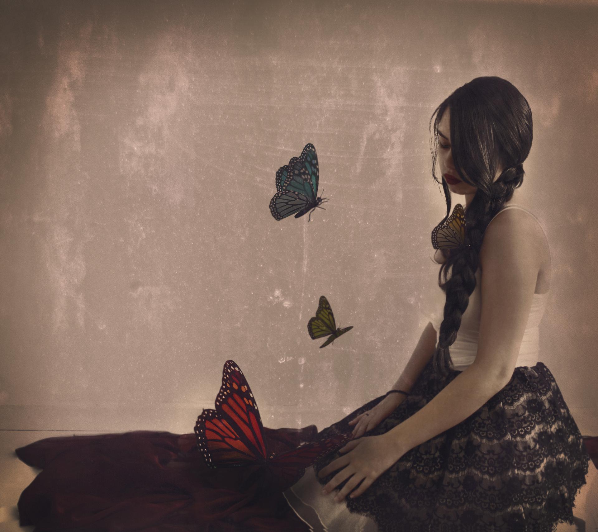 Бабочки и девушка