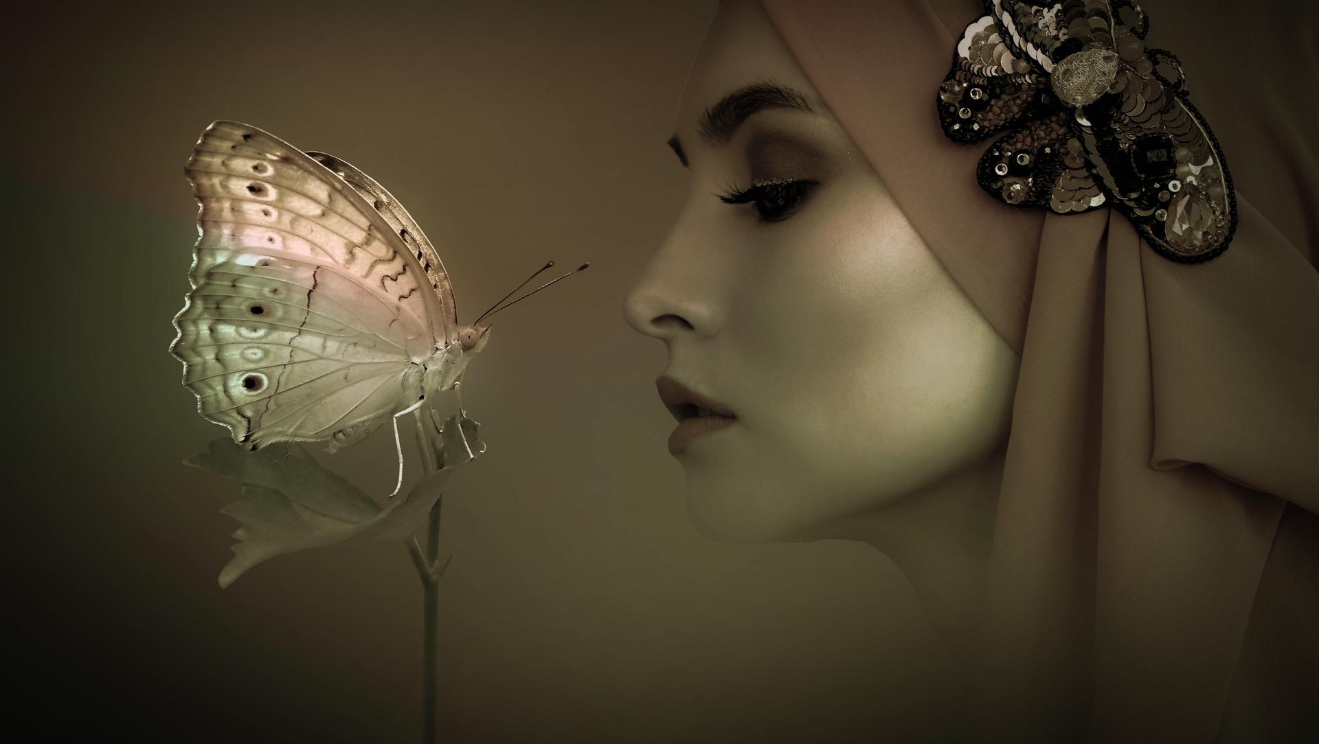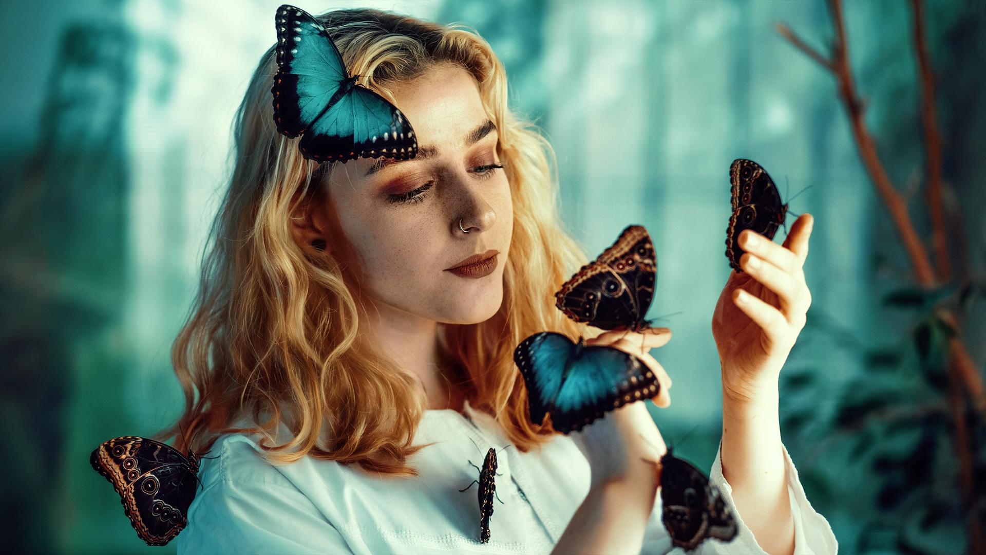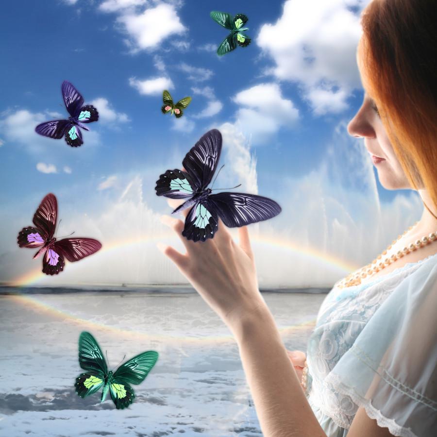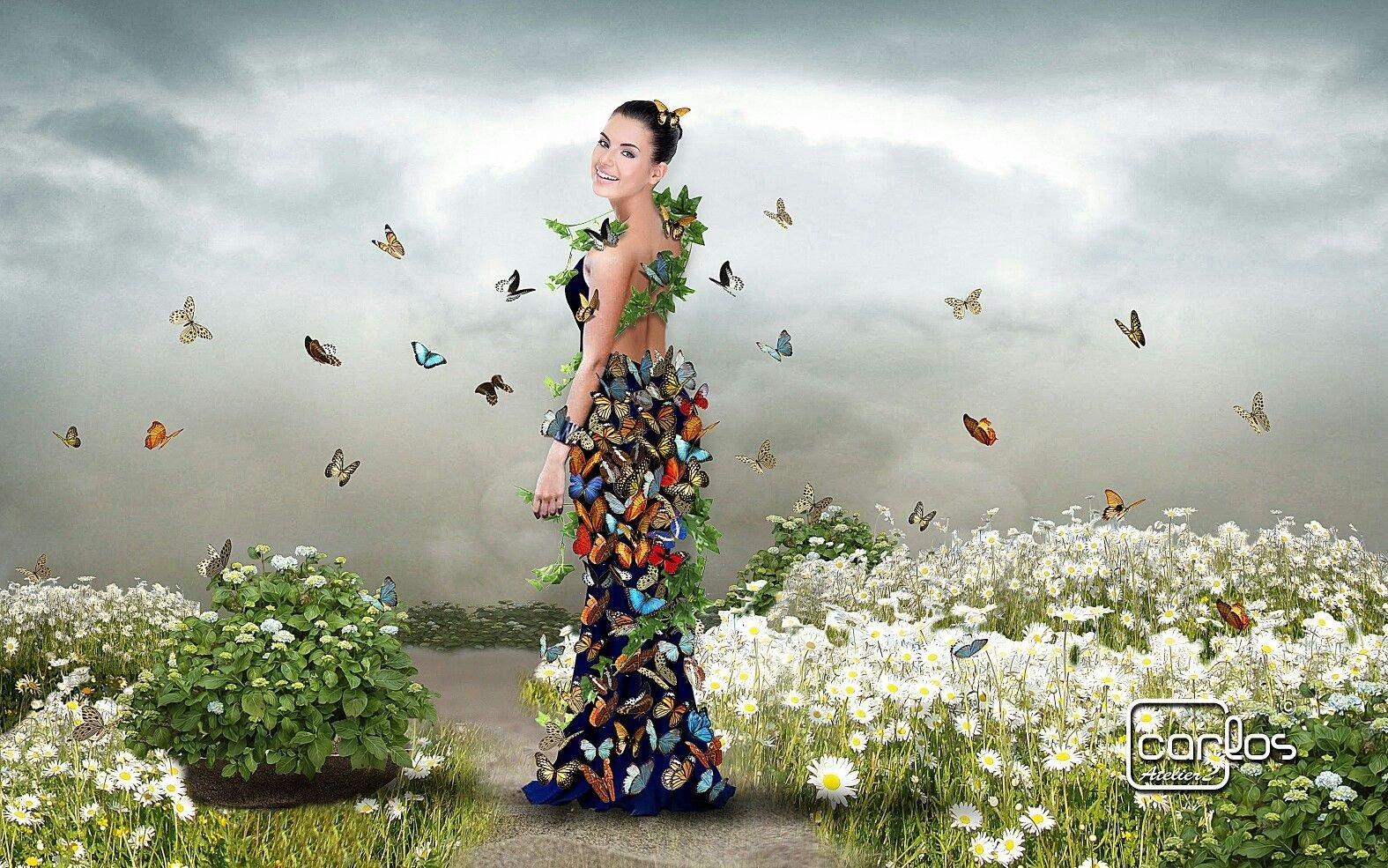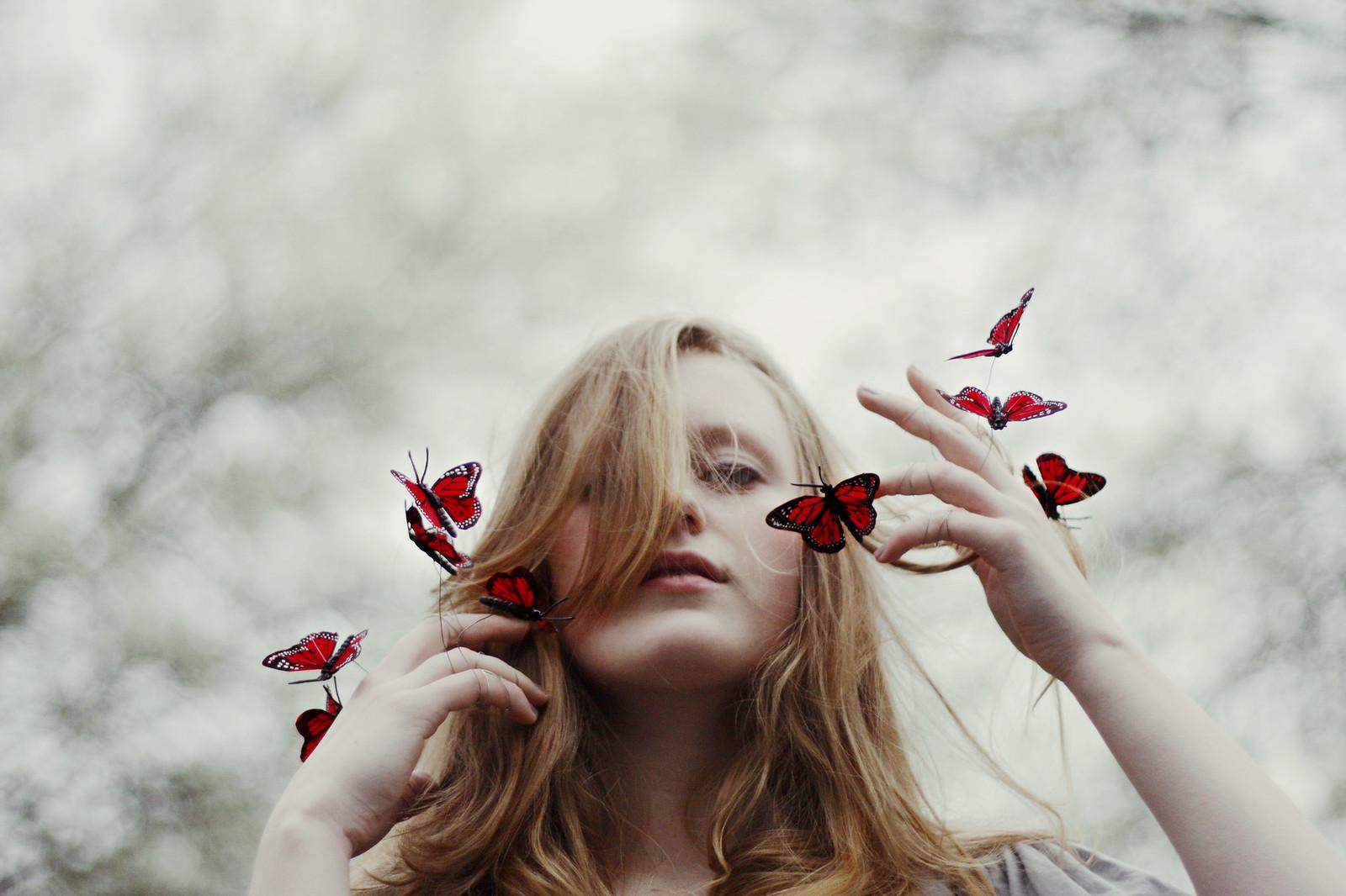 Бабочки и девушка