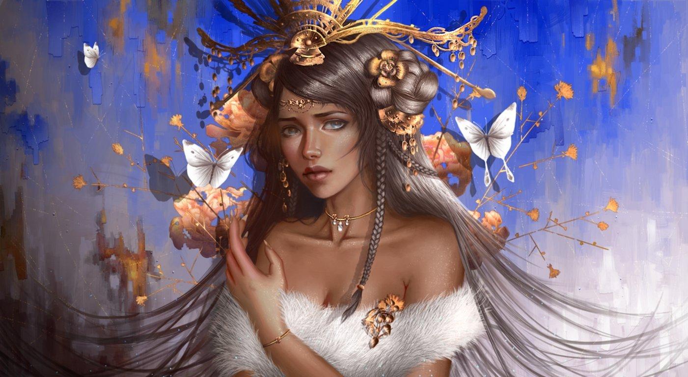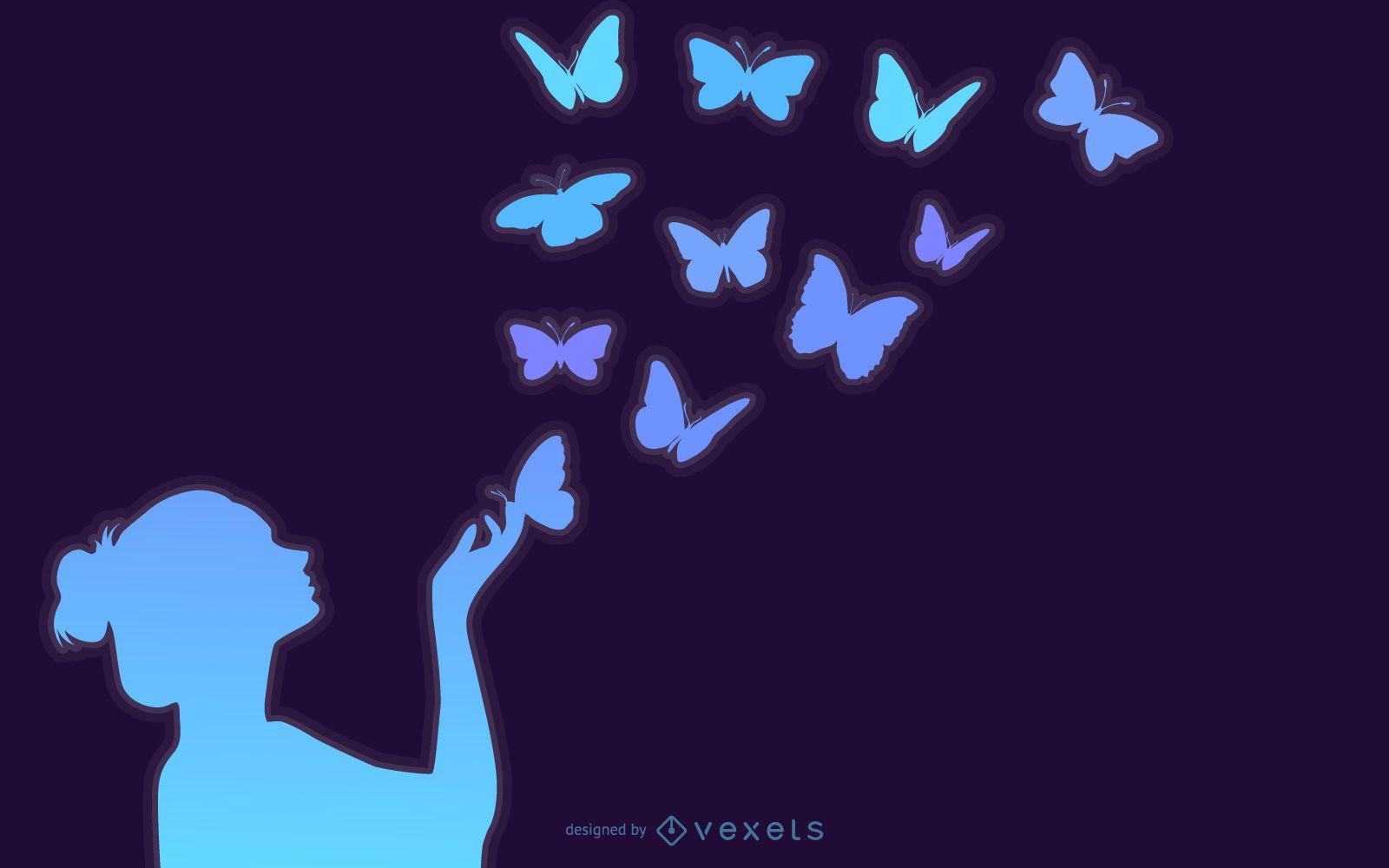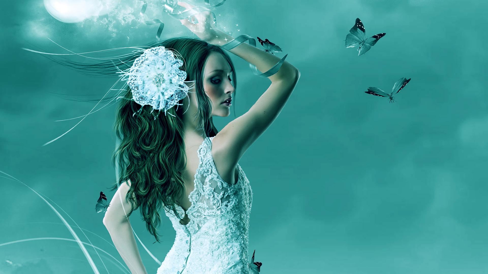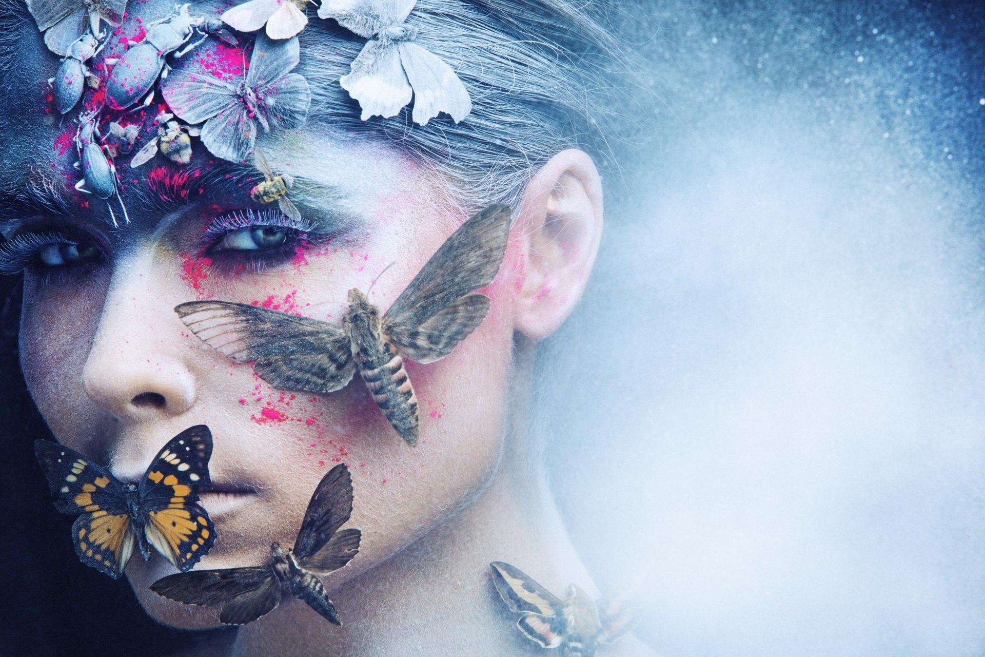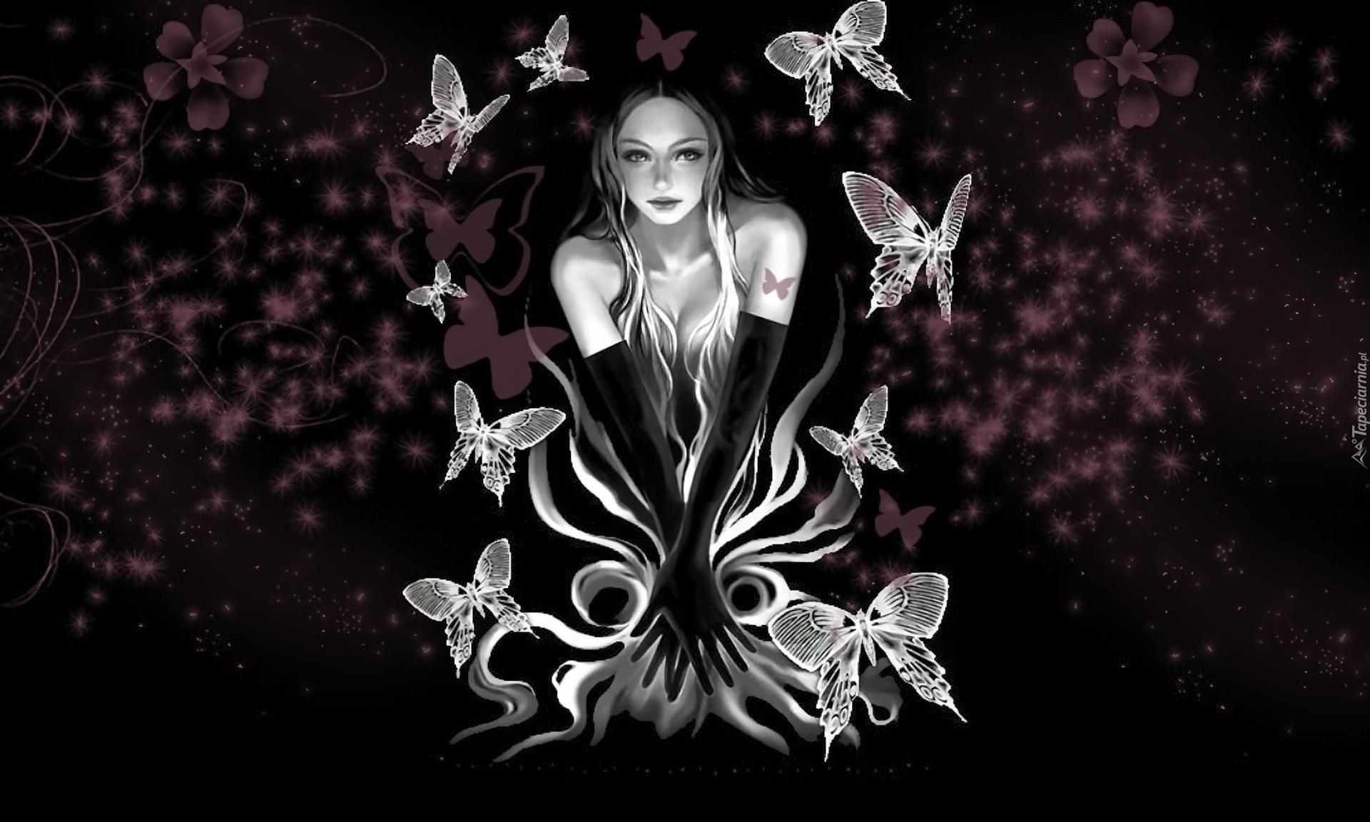 Бабочки и девушка