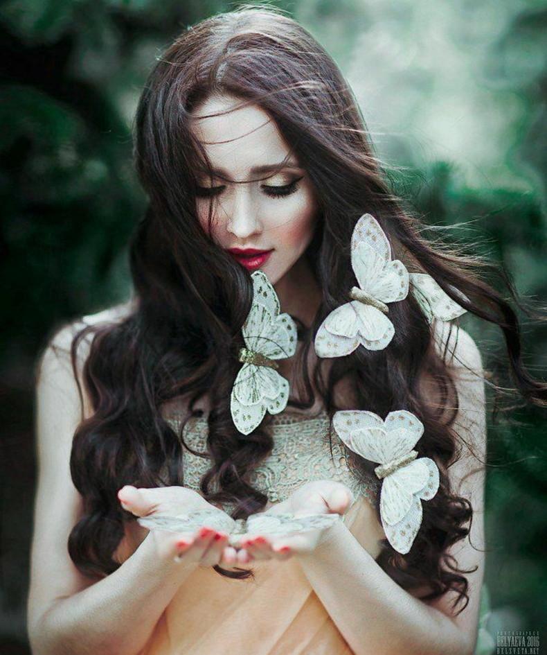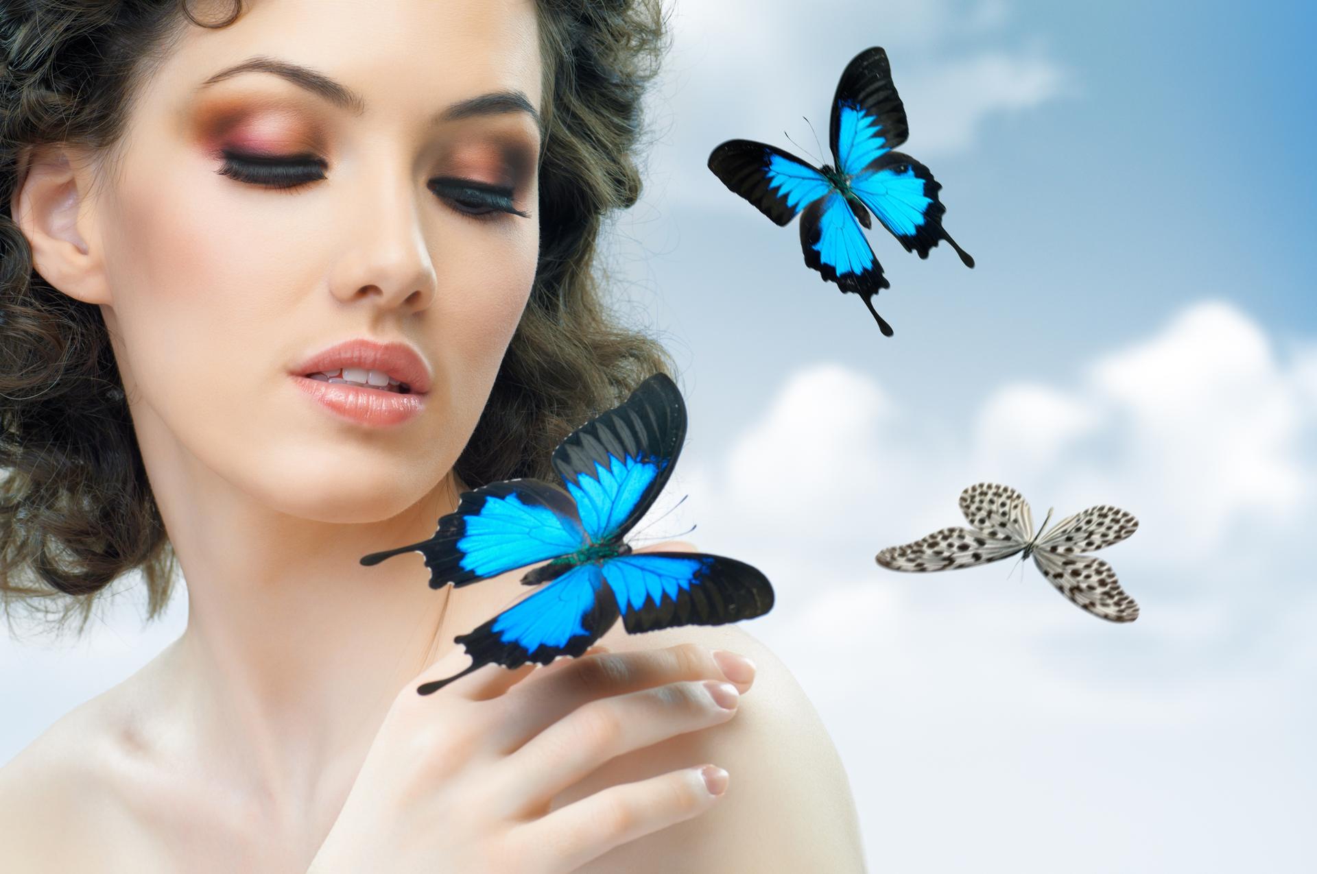 Красивые картинки Бабочки и девушка с надписями
