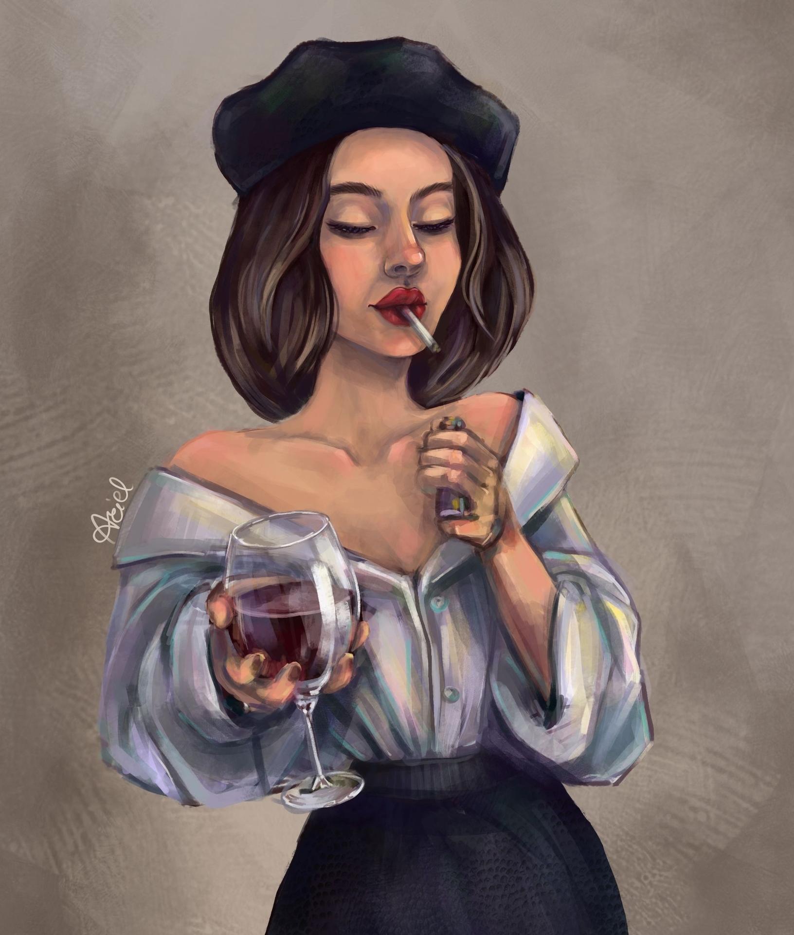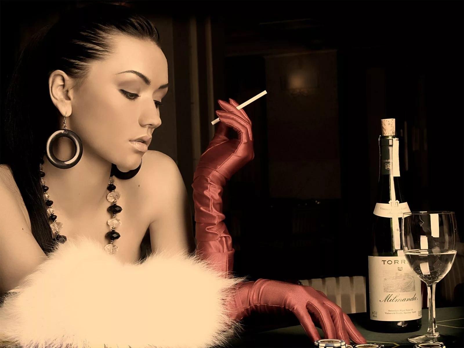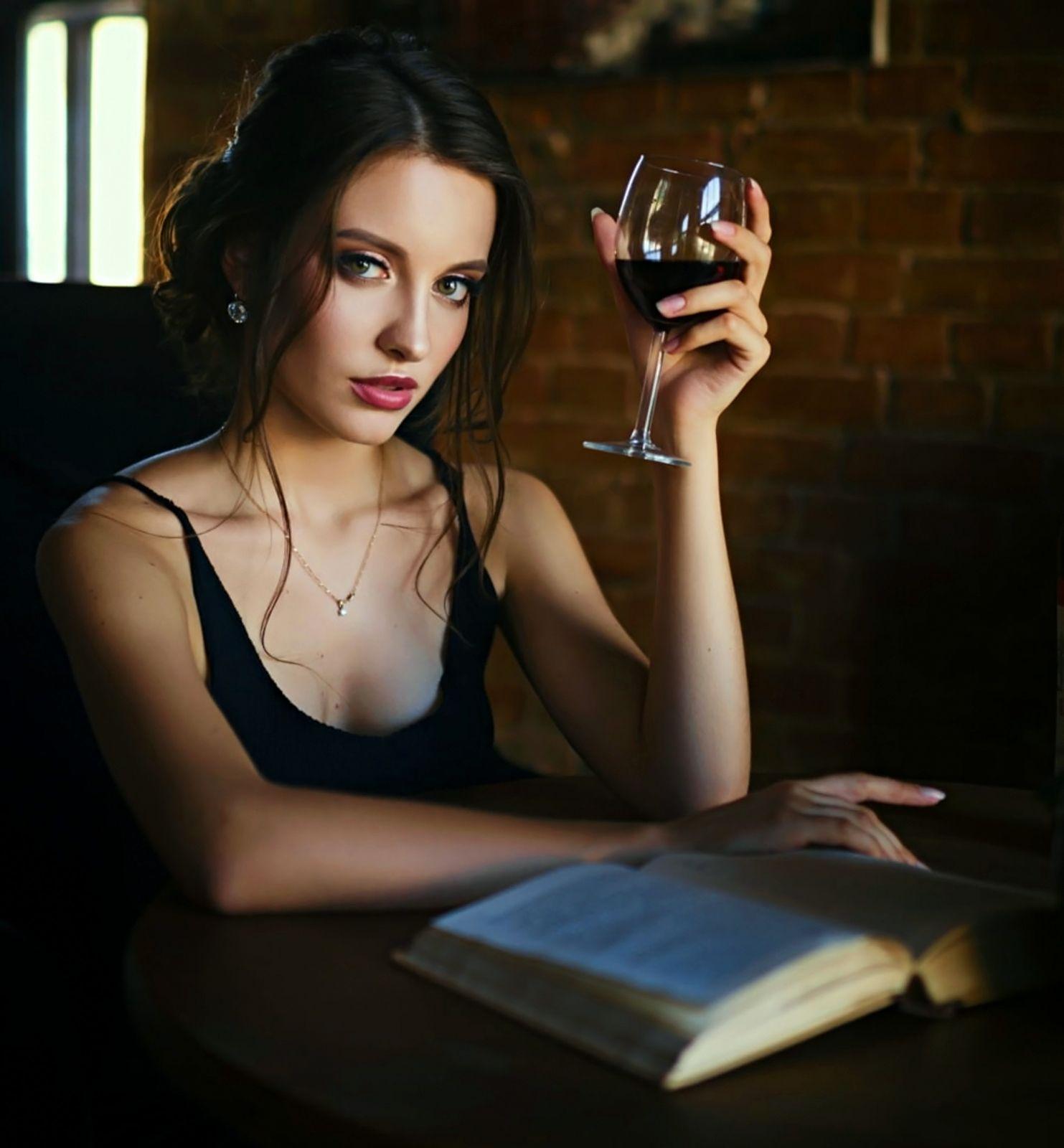 Красивые картинки Девушка и бокал с надписями