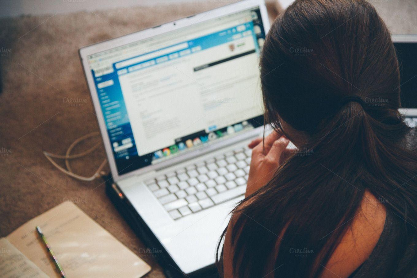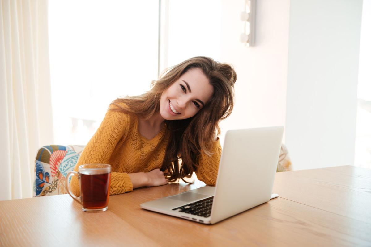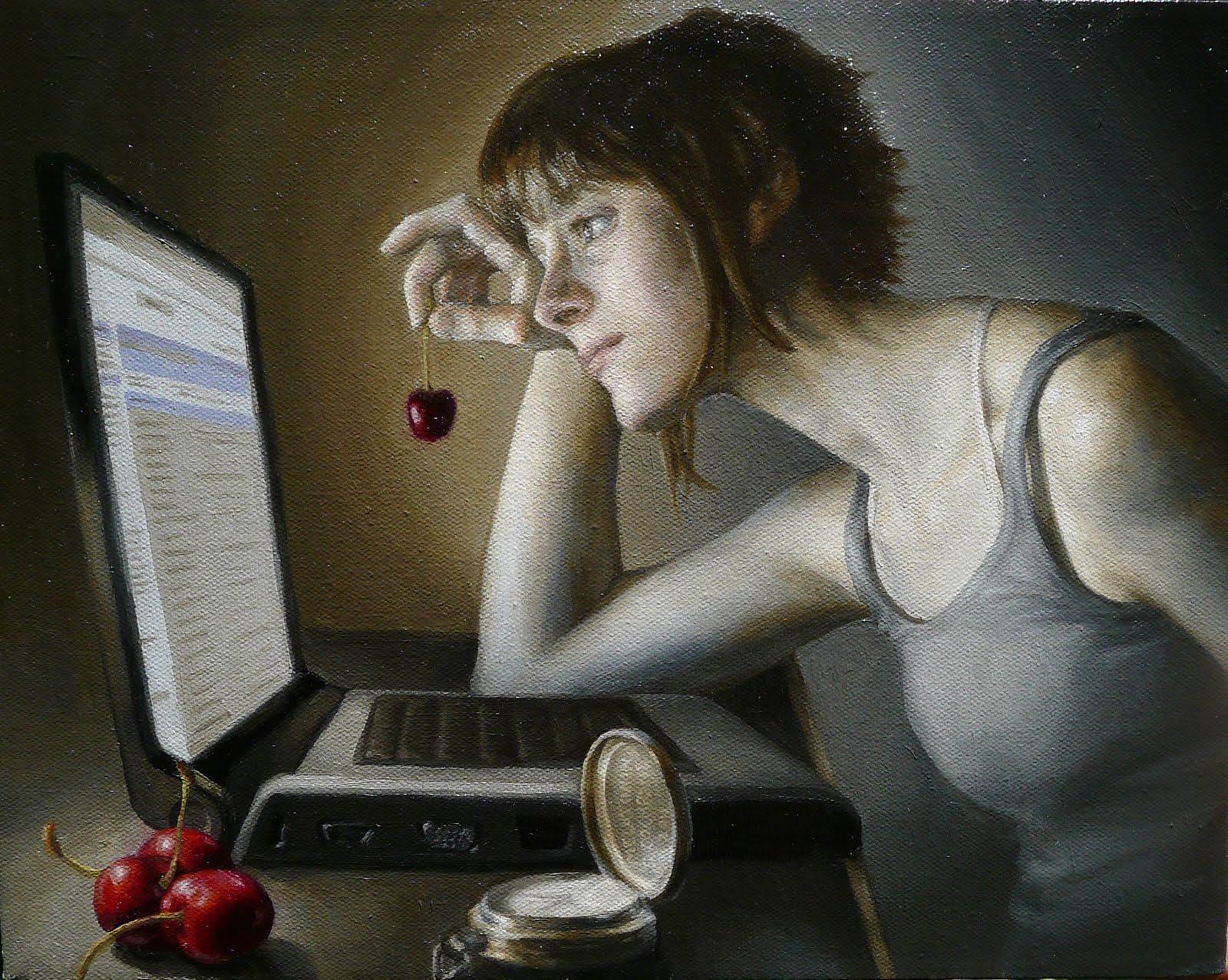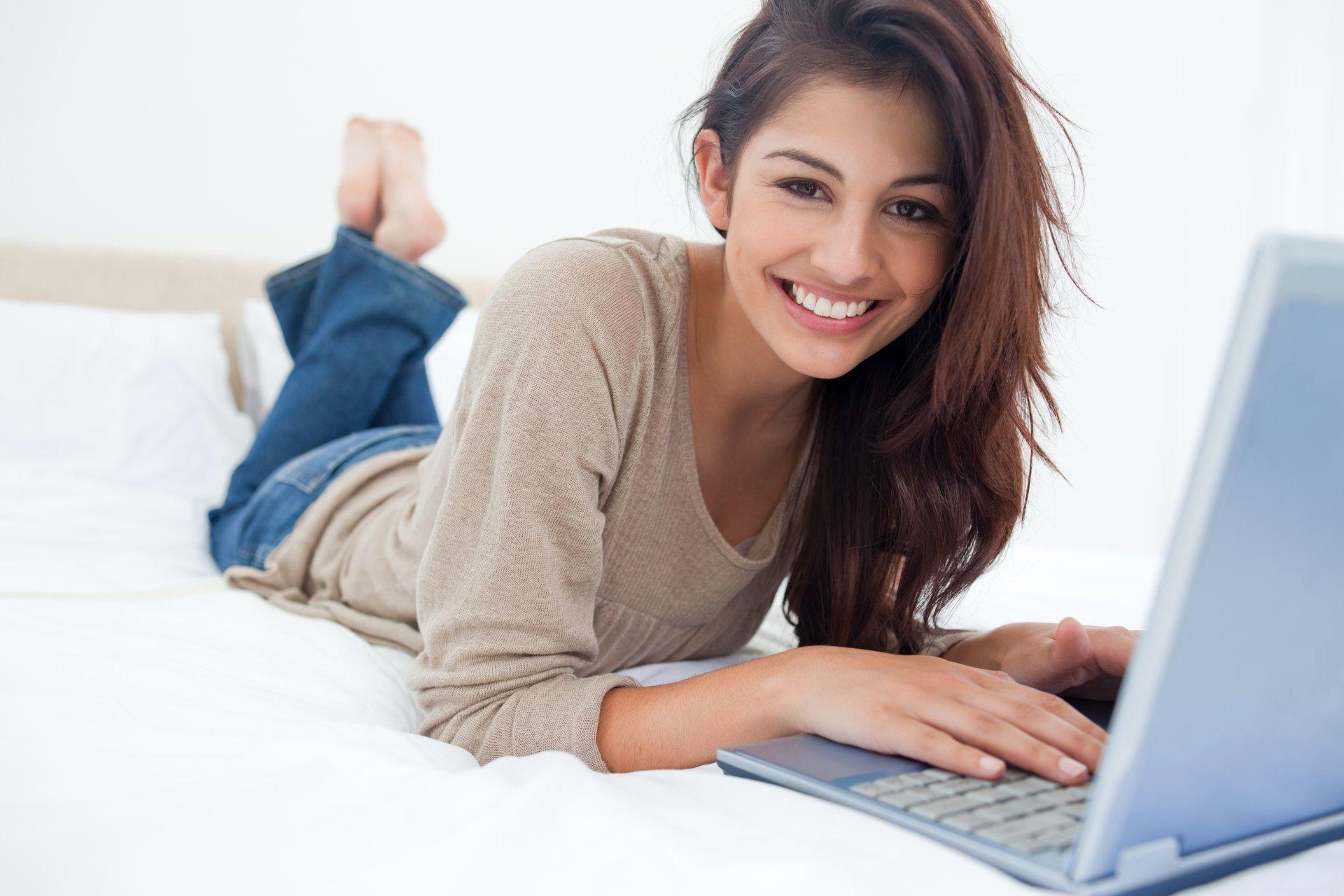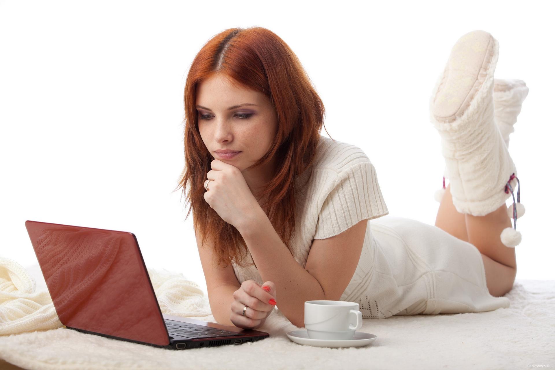 Красивые картинки Девушка у компьютера с надписями