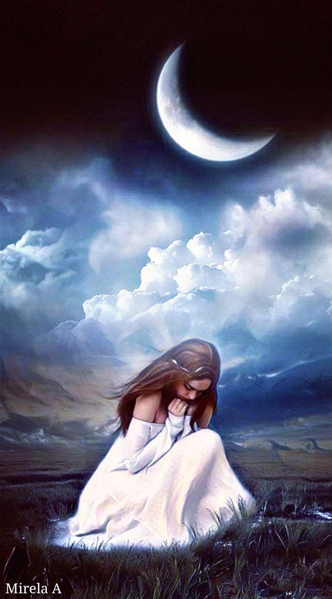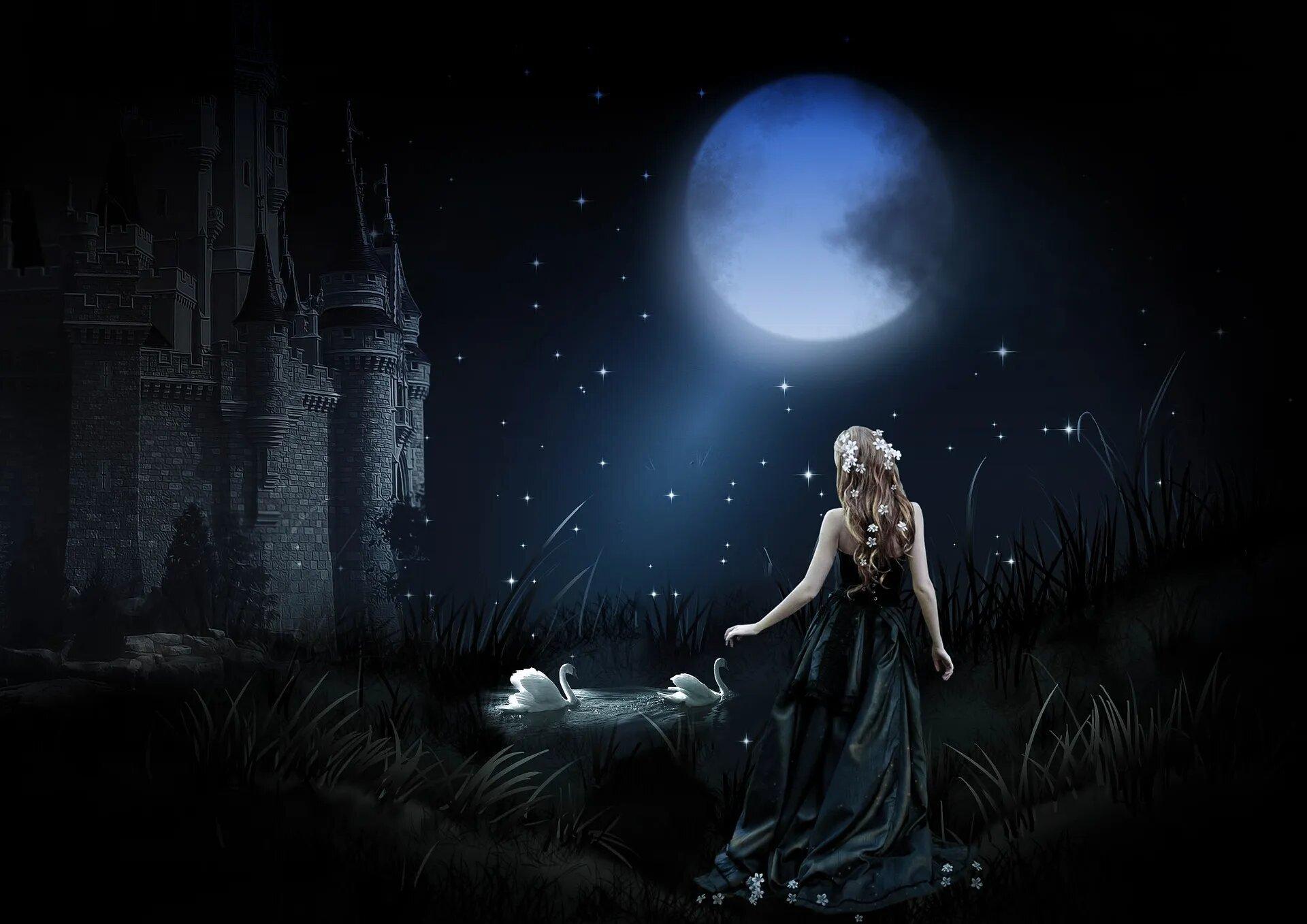 Красивые картинки Девушка под луной с надписями