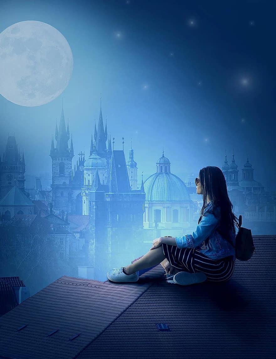 Девушка под луной