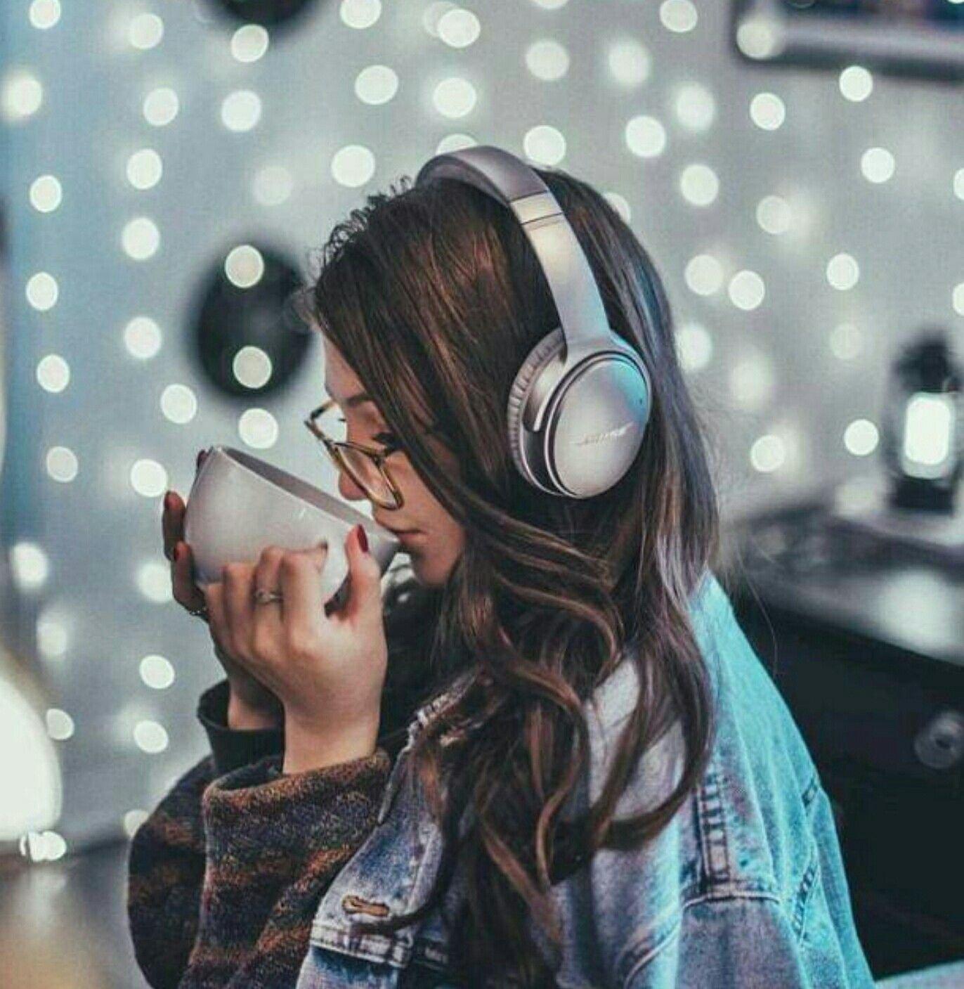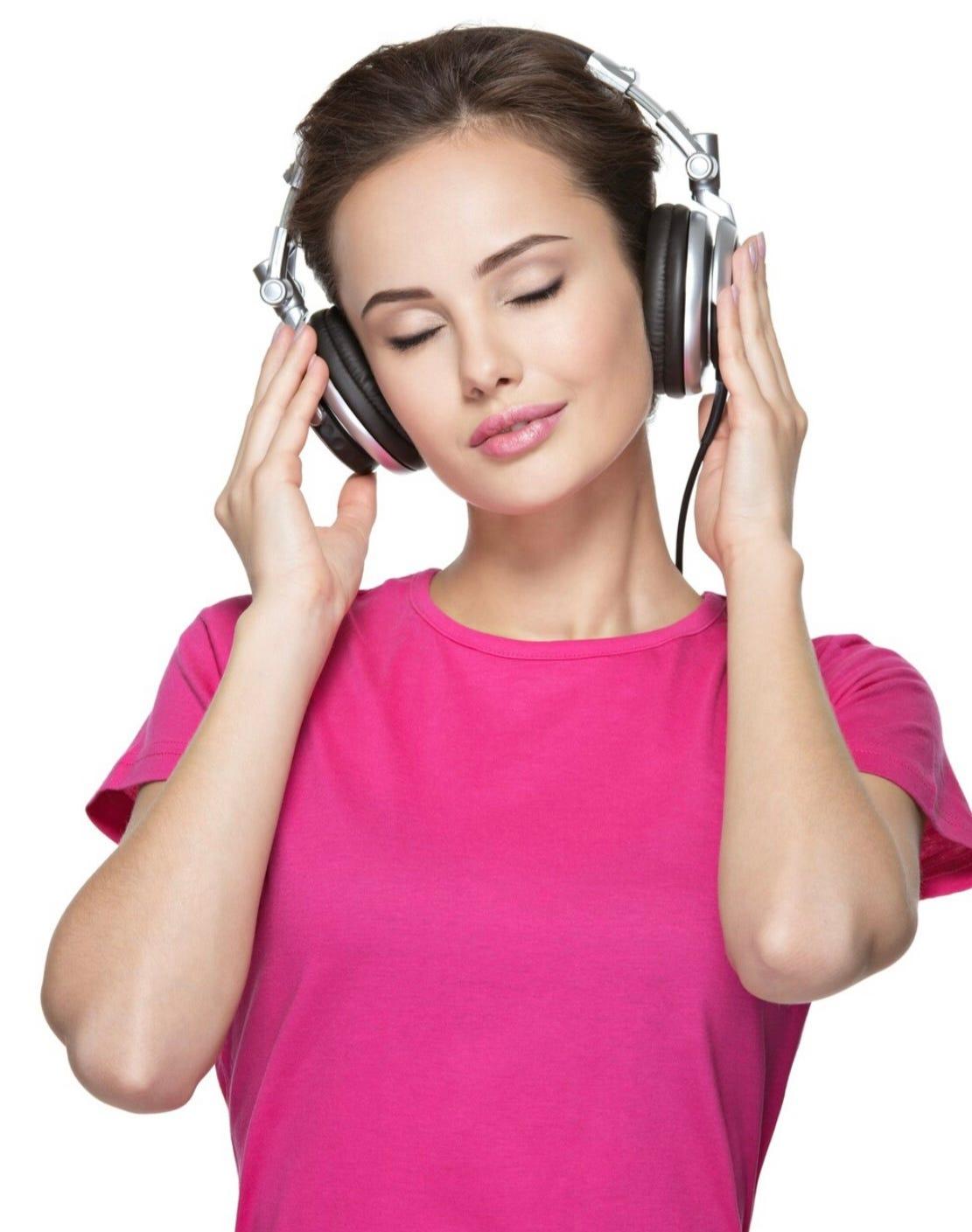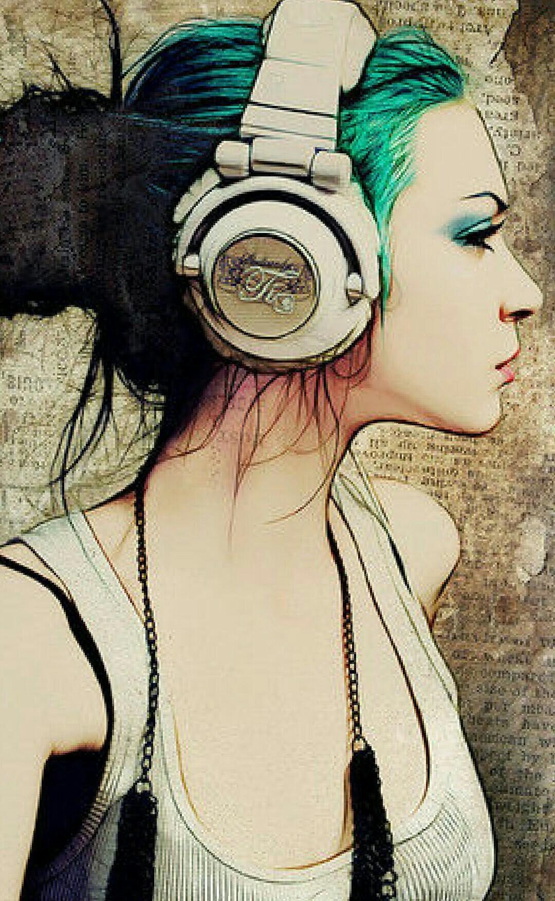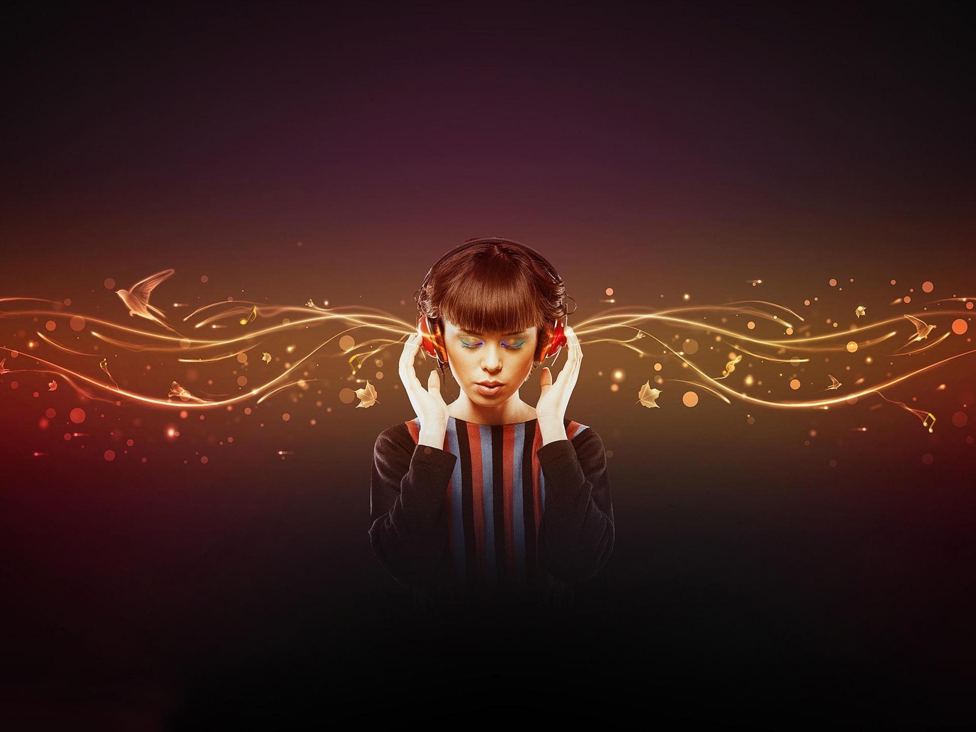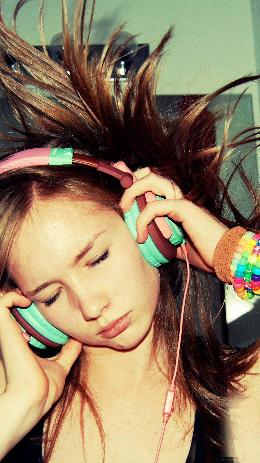 Красивые картинки Девушка слушает музыку с надписями