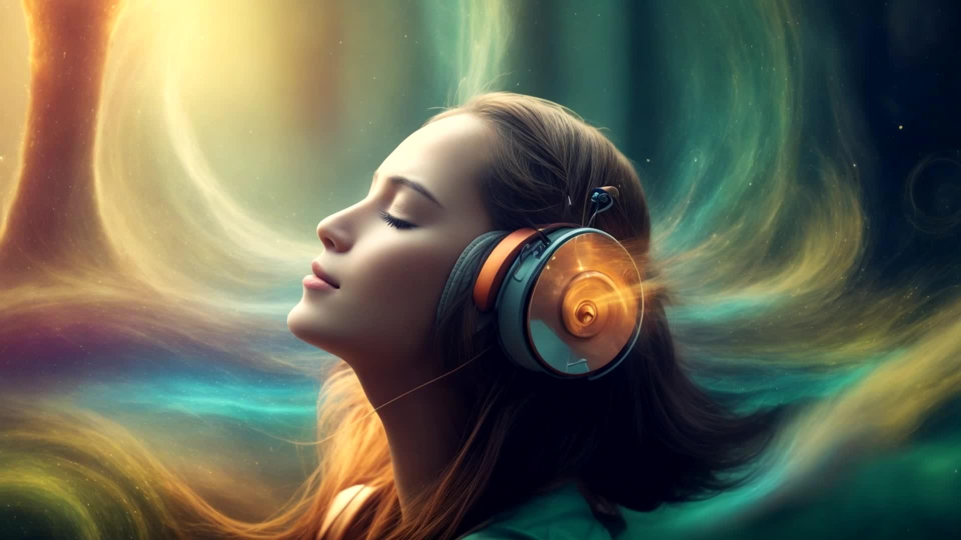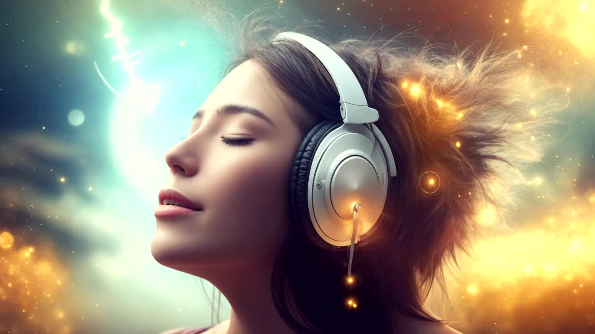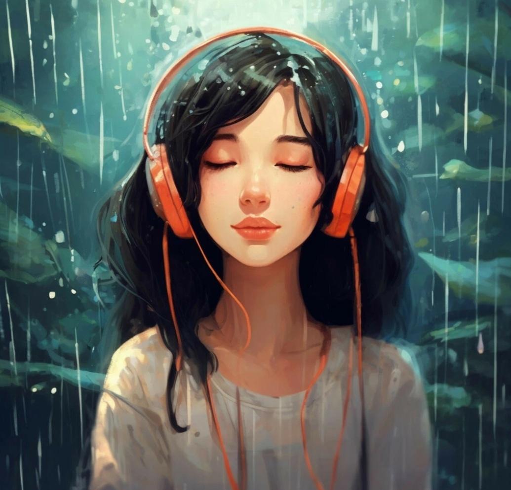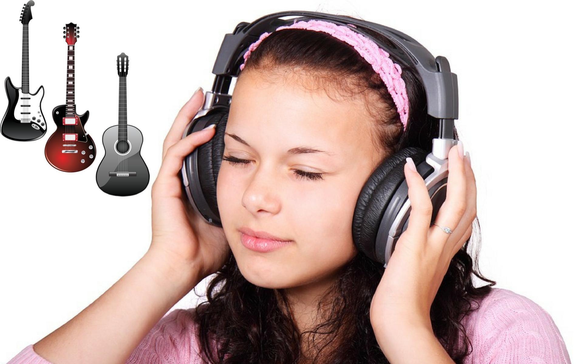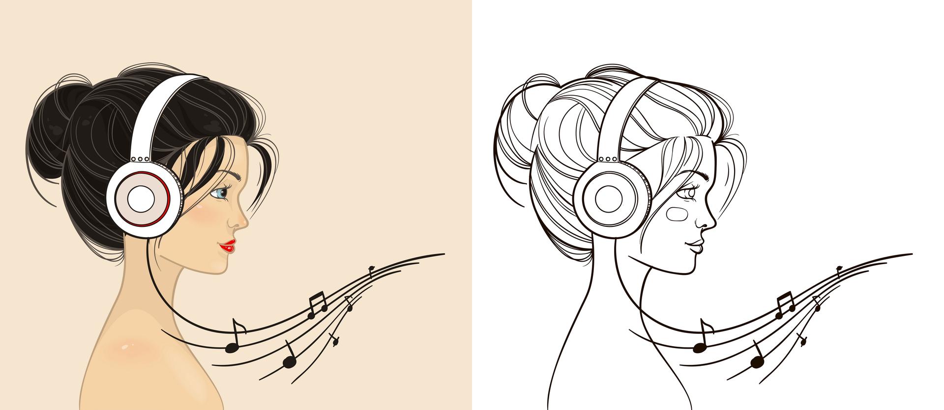 Красивые картинки Девушка слушает музыку с надписями