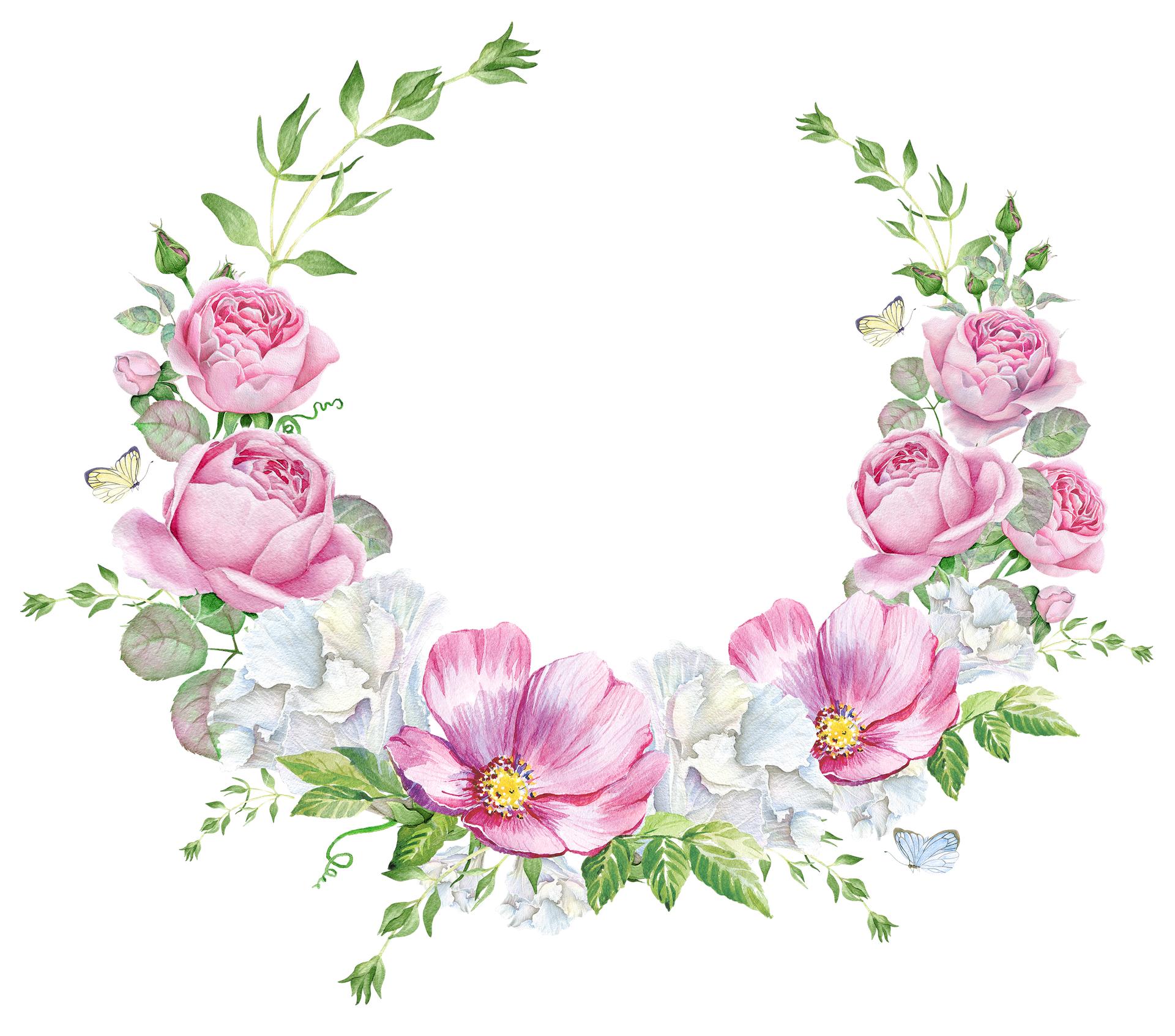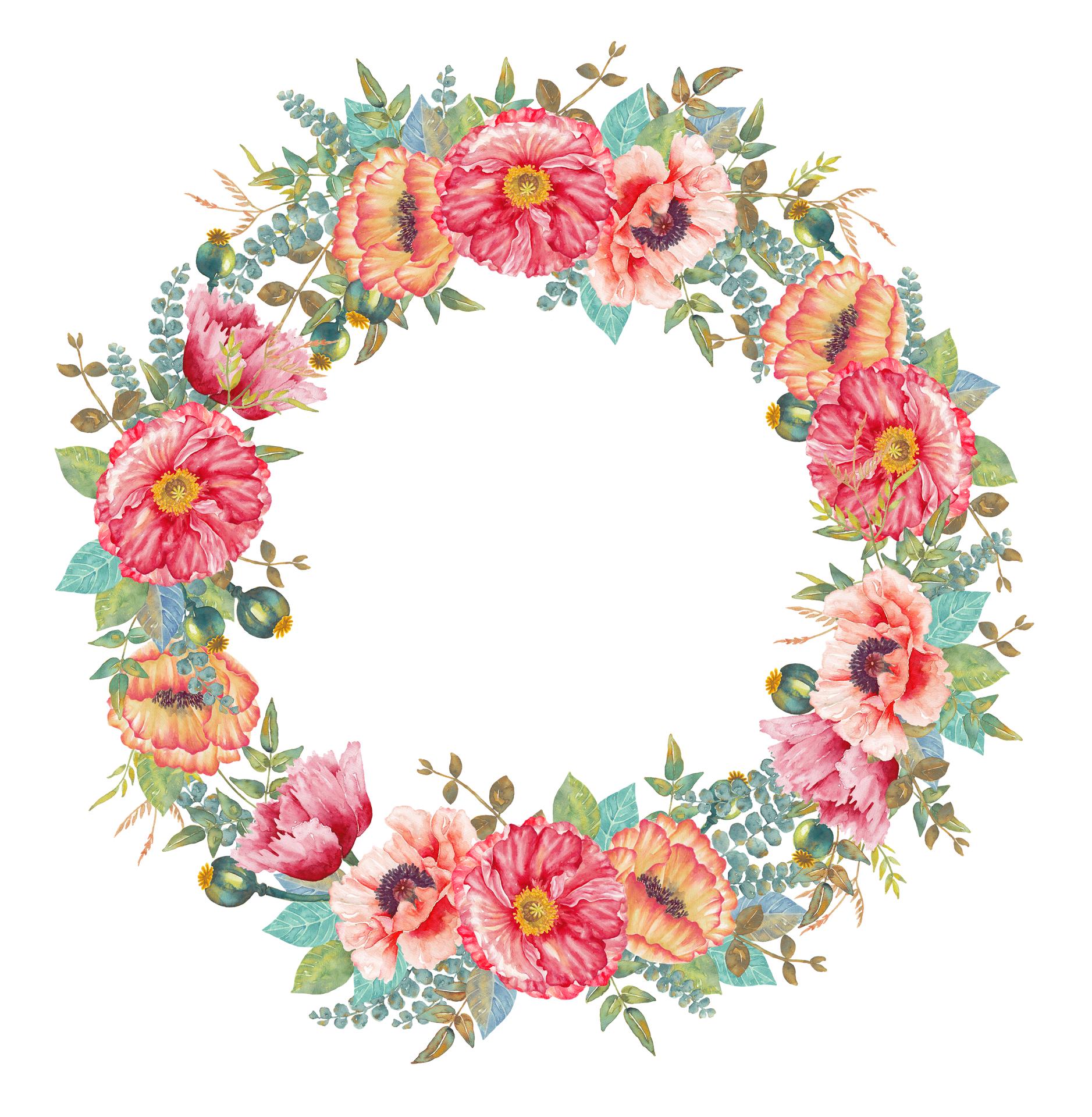 акварельный цветочный венок