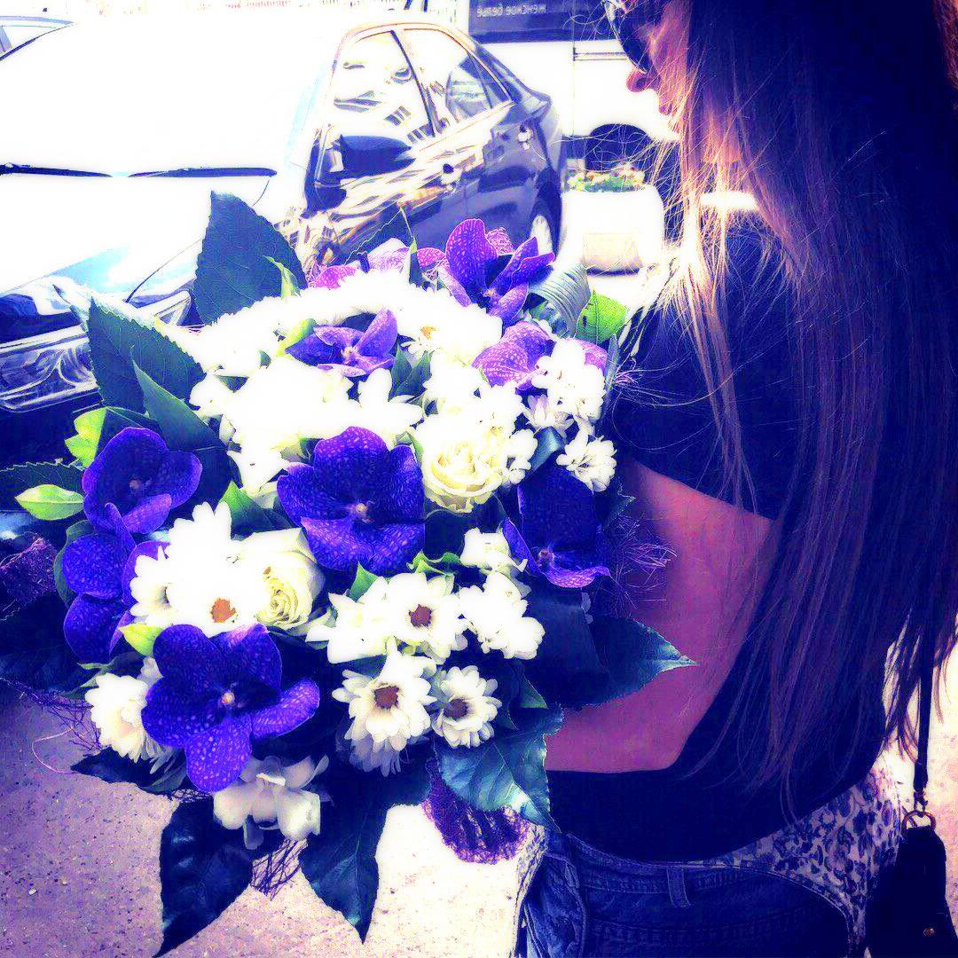девушка с огромным букетом
