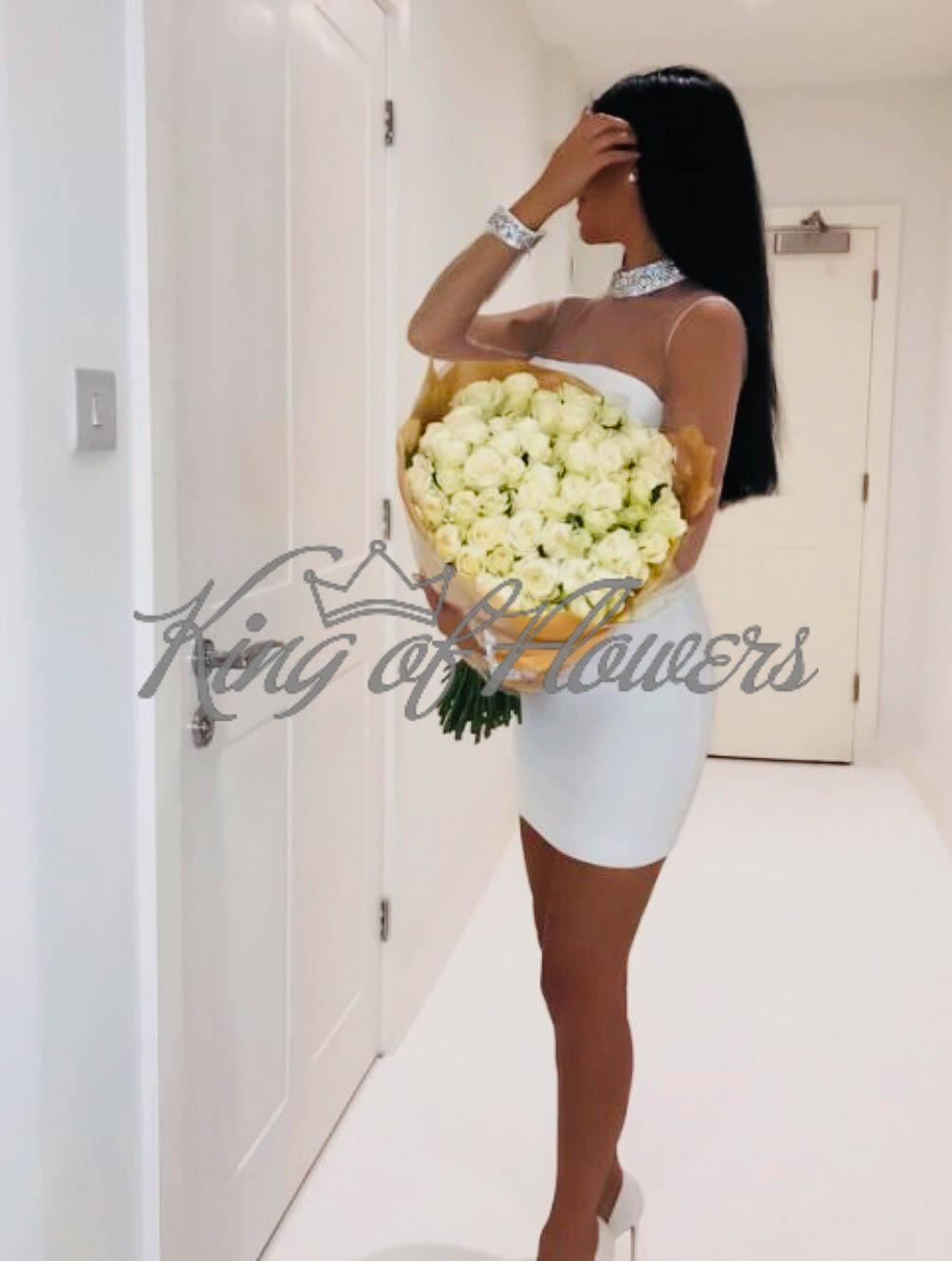 брюнетка с белыми розами