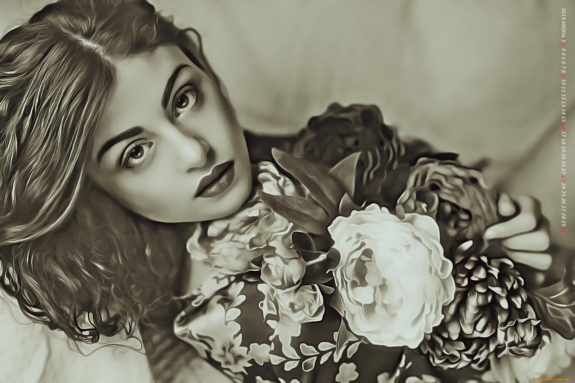цветы девушка