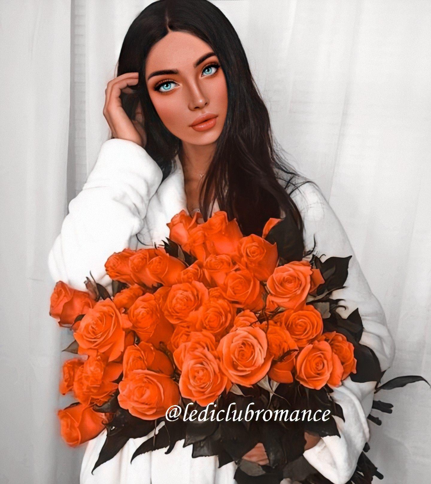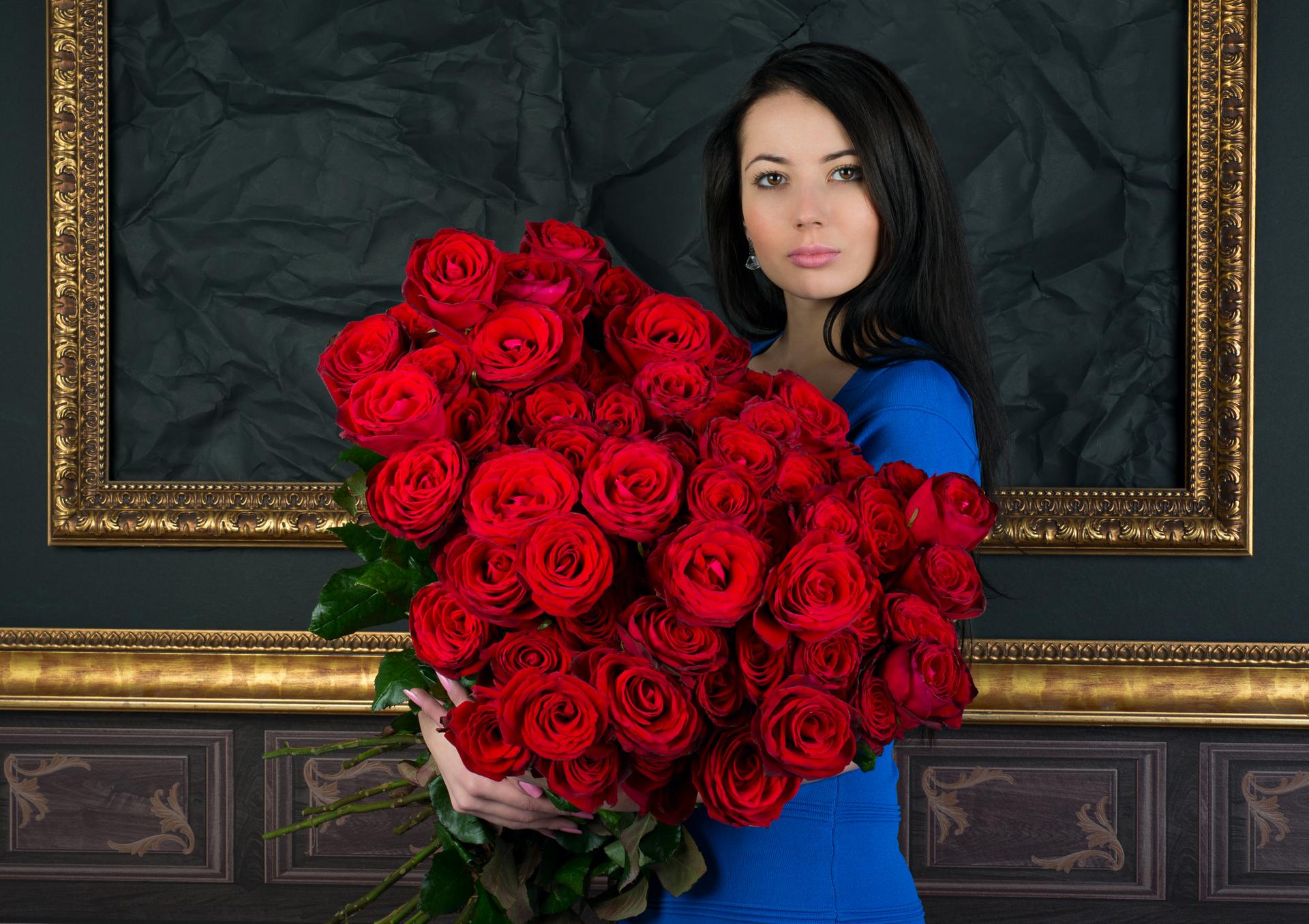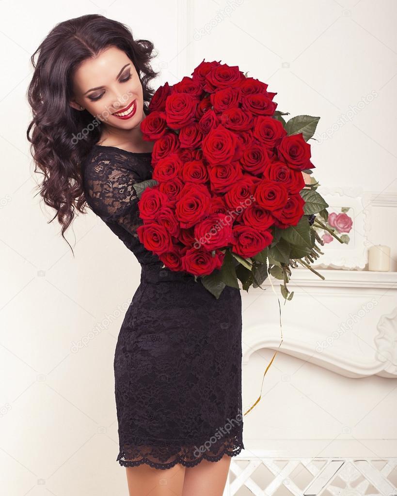 брюнетка с розами