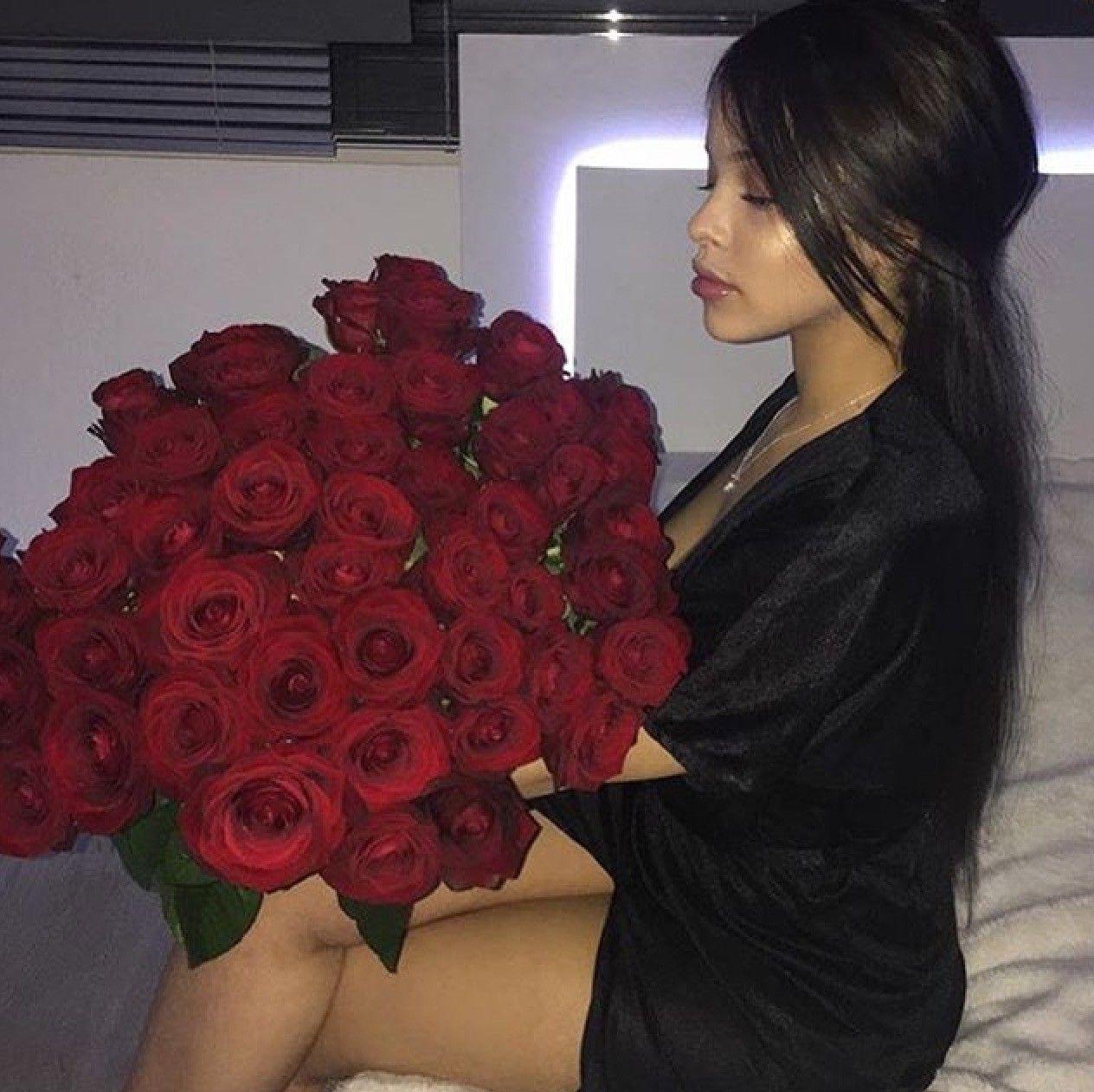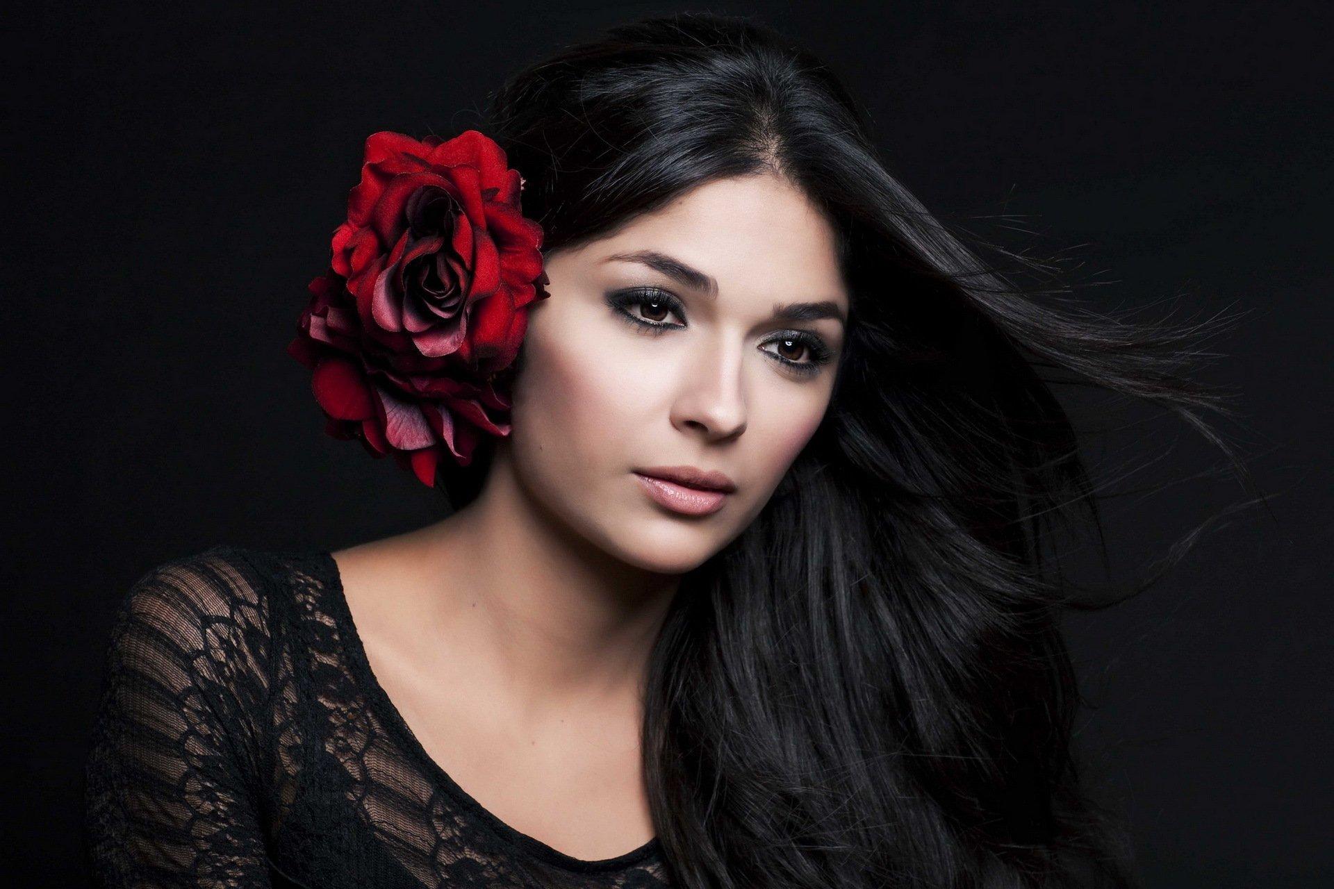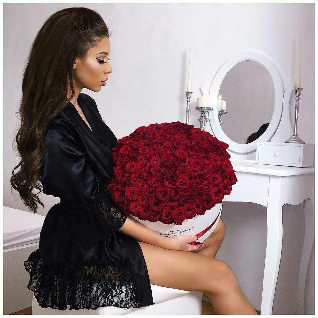 брюнетка с розами