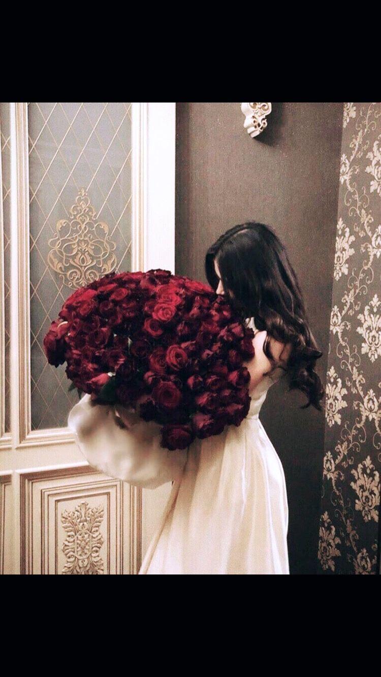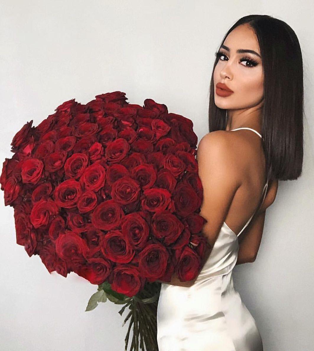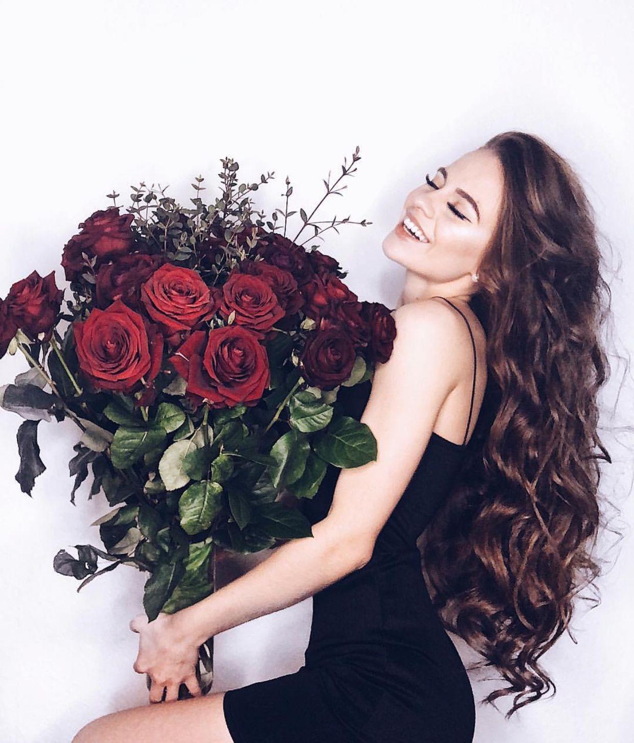 женщина с букетом роз