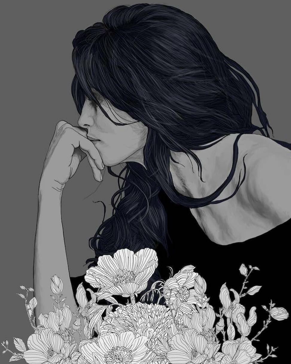 брюнетка с цветами