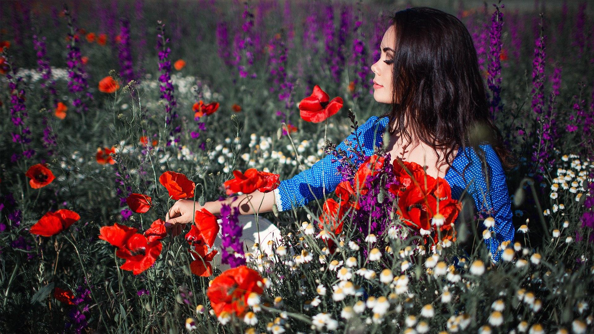 девушка в цветочном поле
