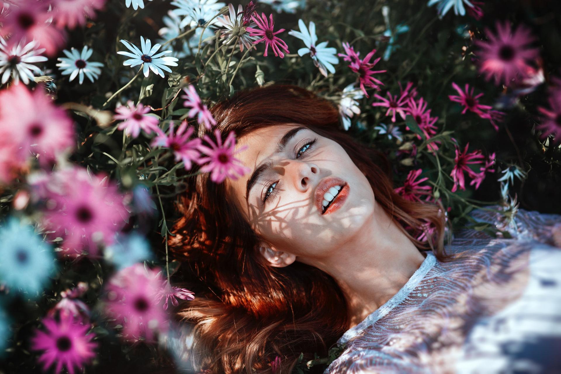 цветы и женщина