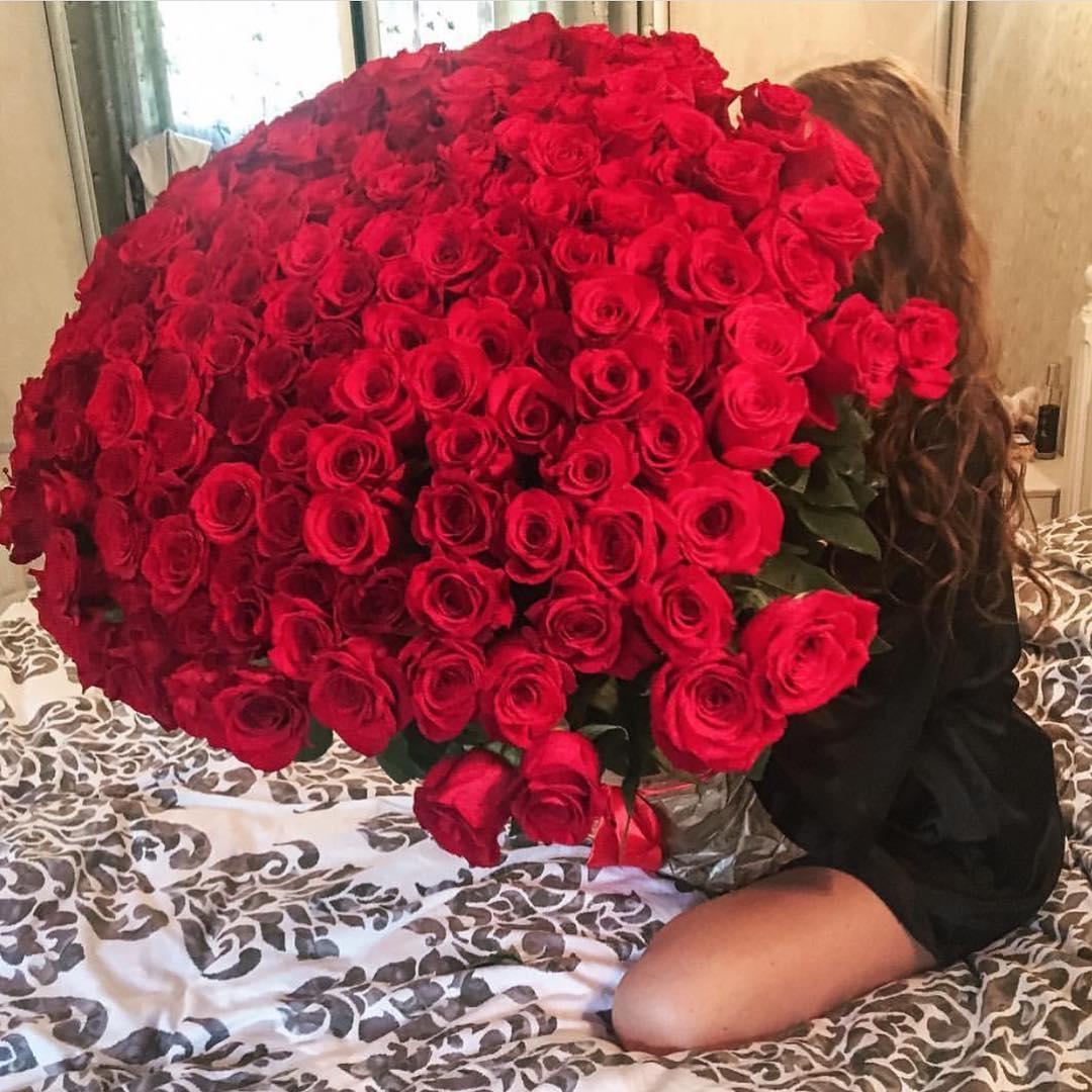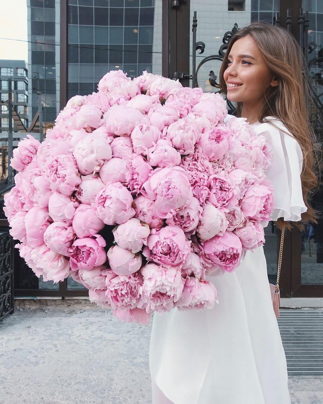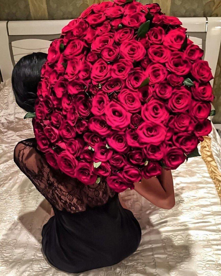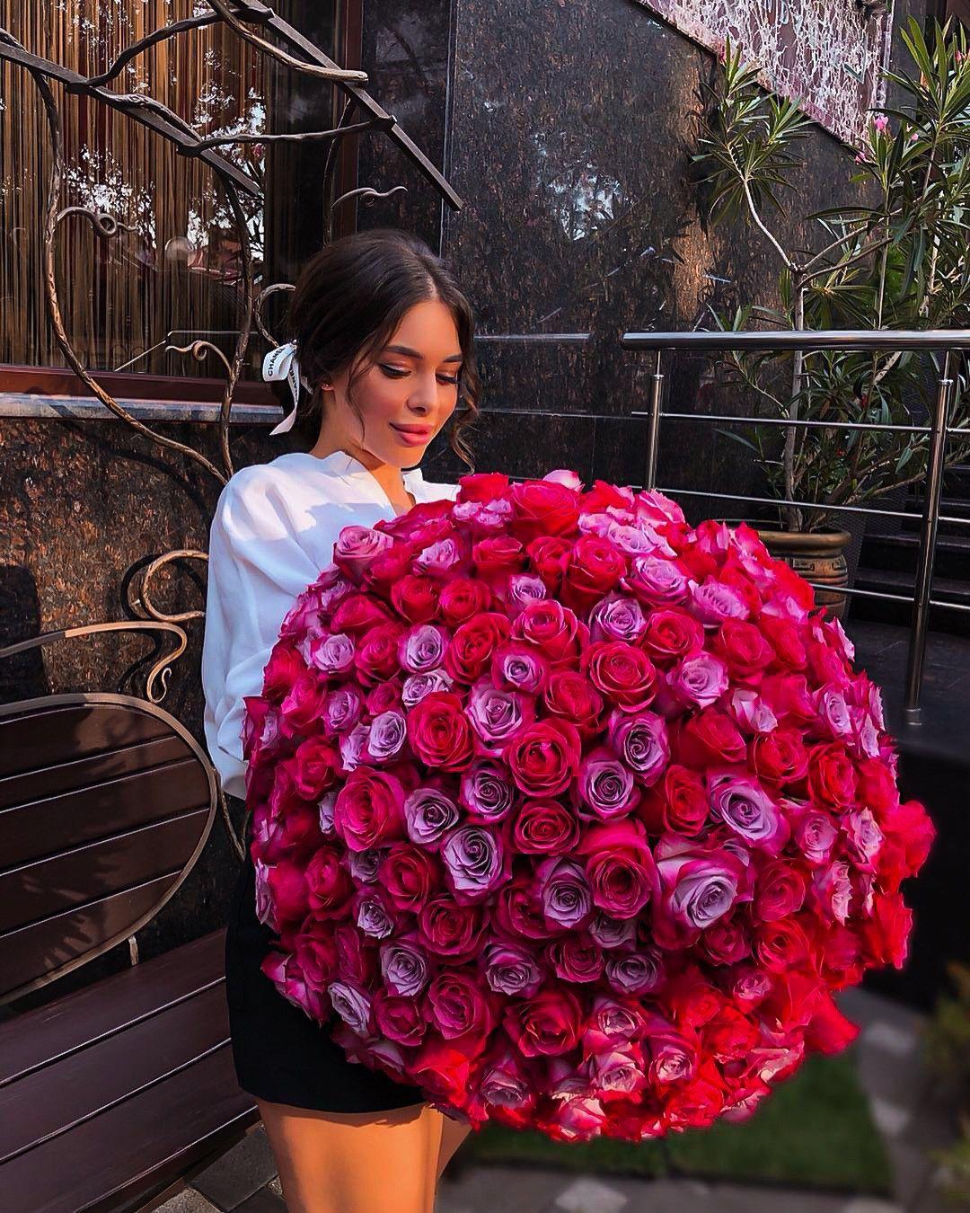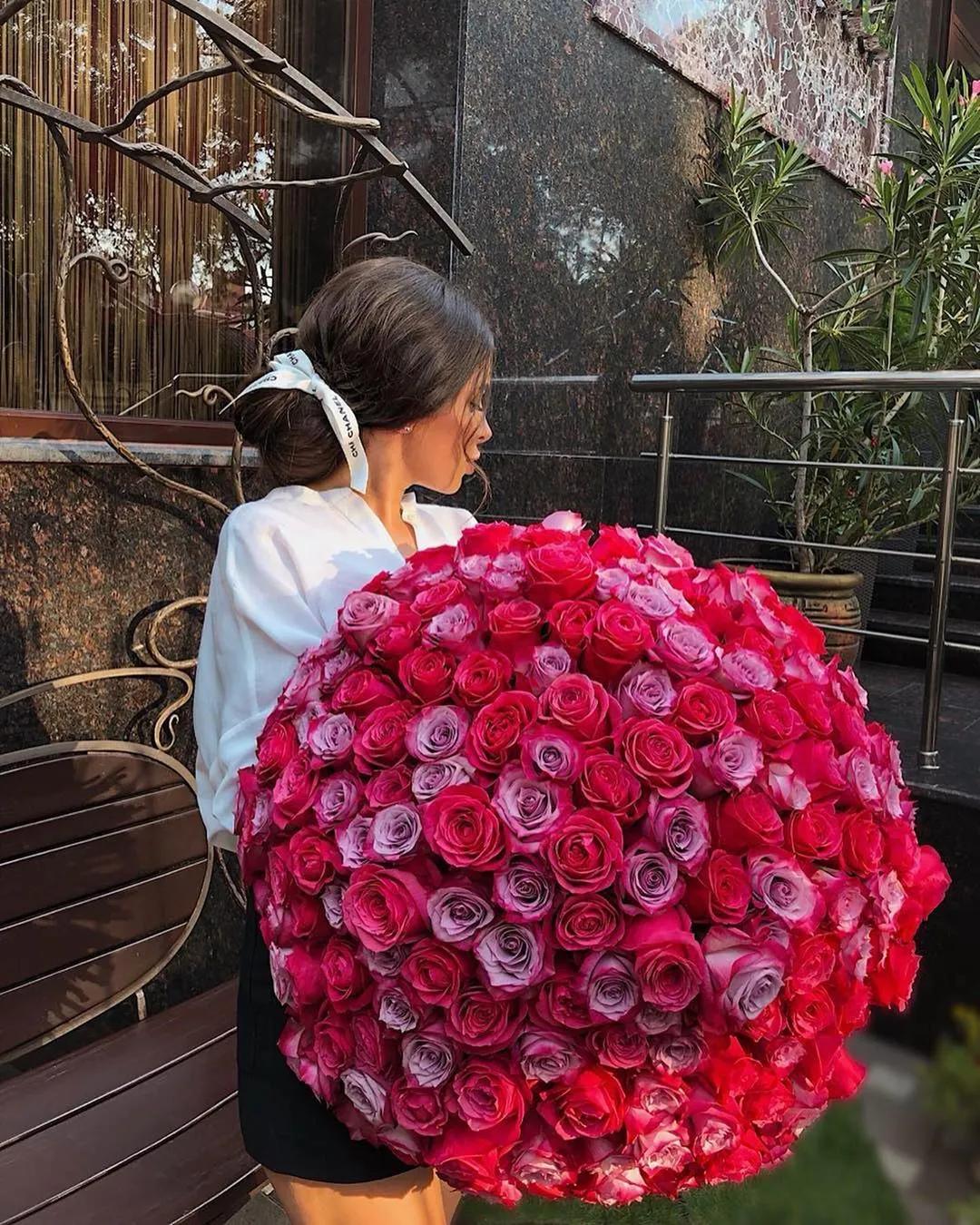 Большой букет и девушка роз