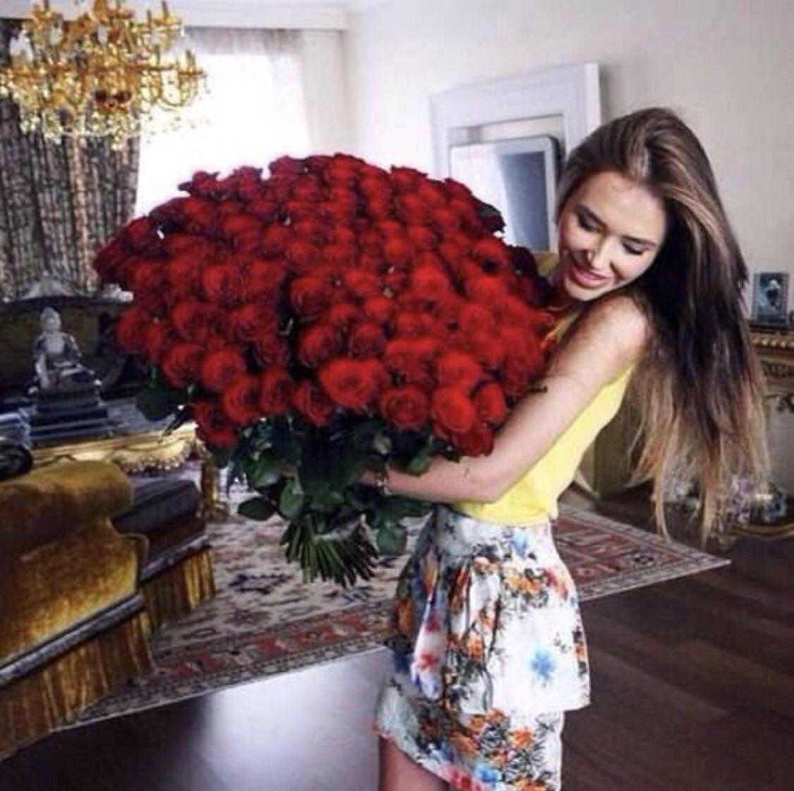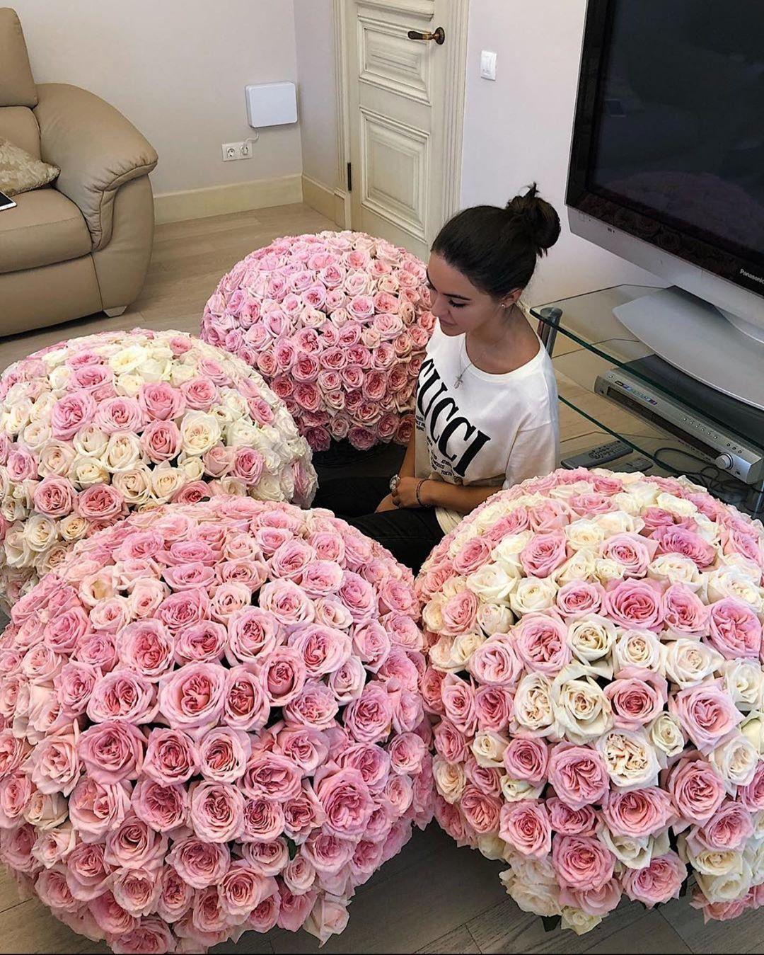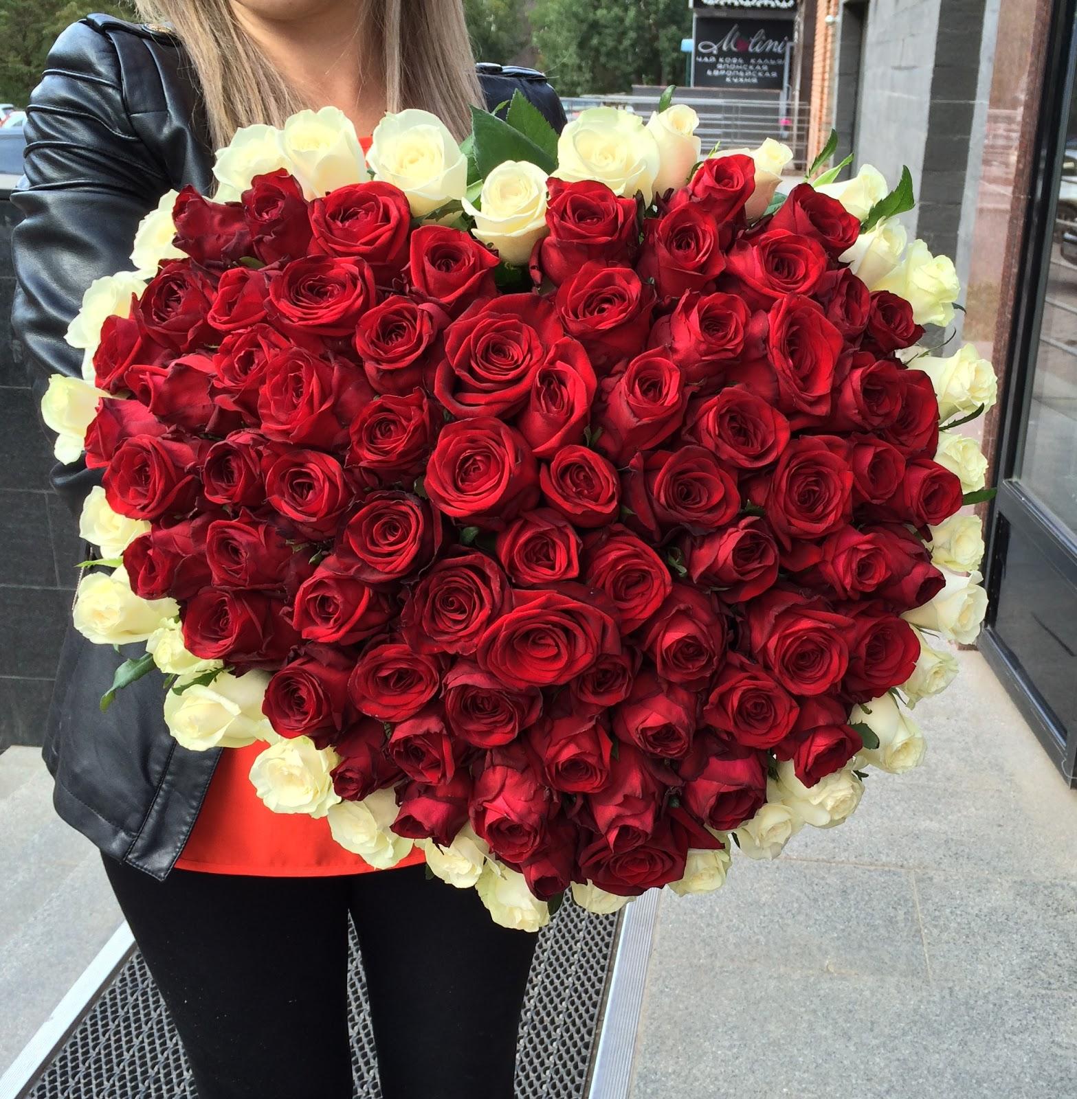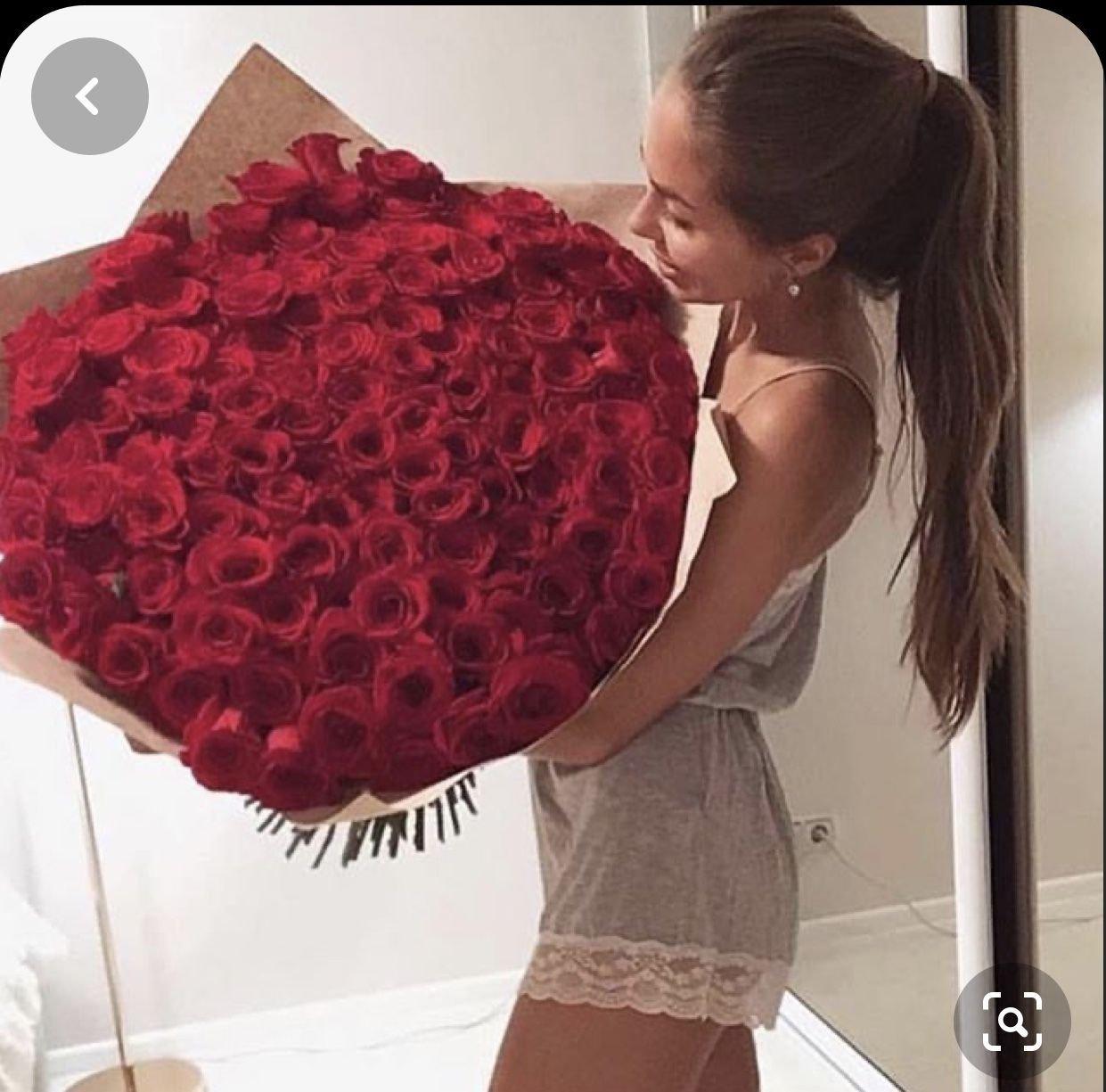 Большой букет и девушка роз