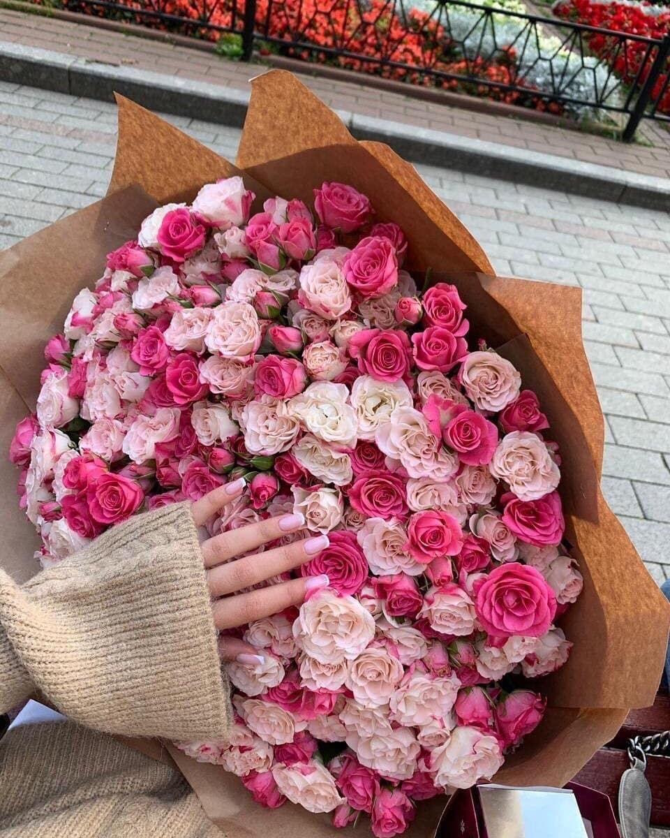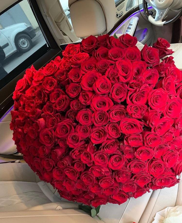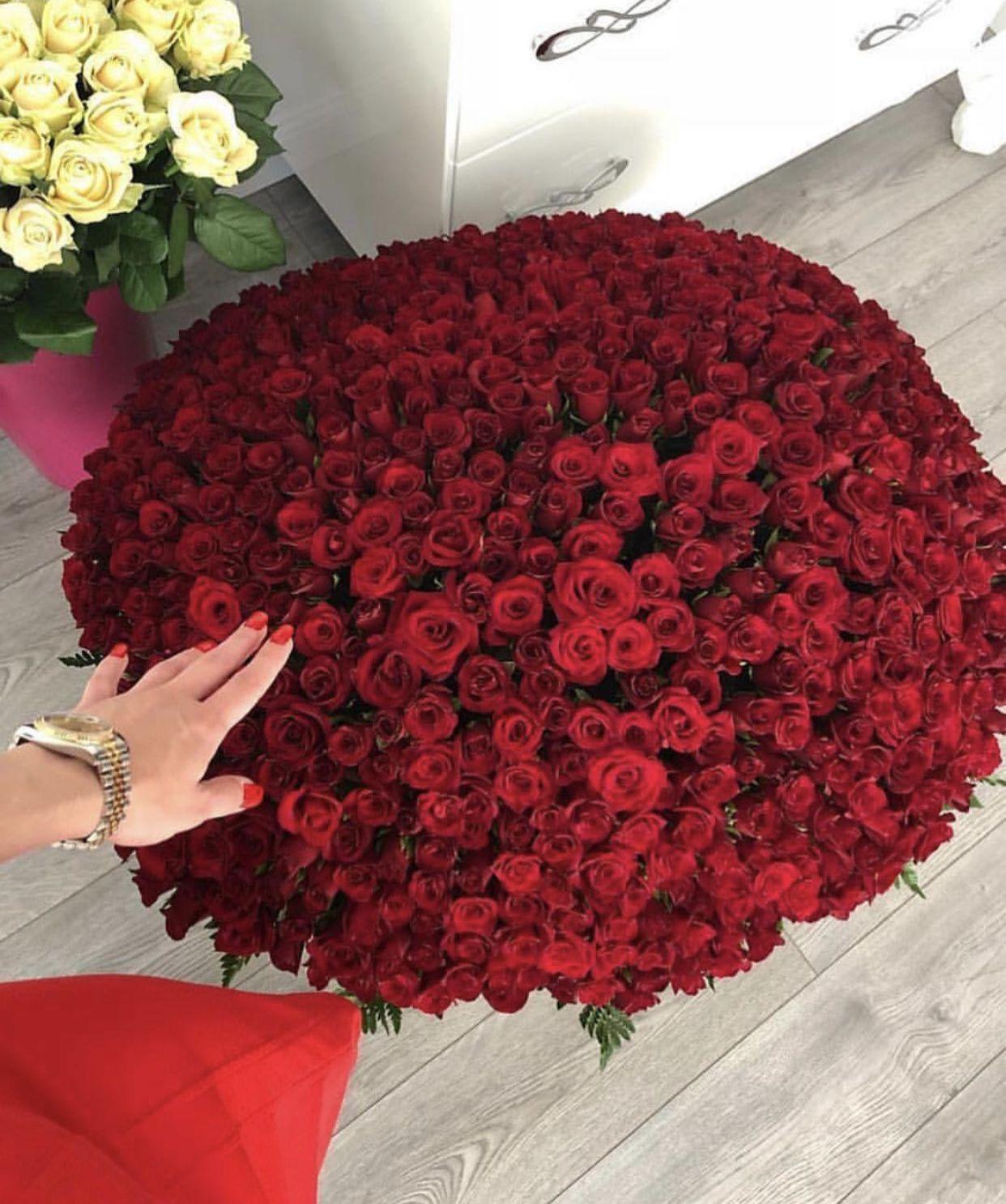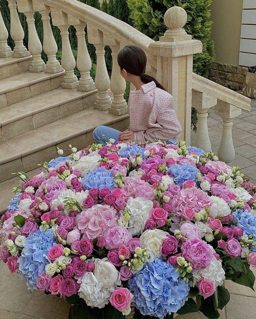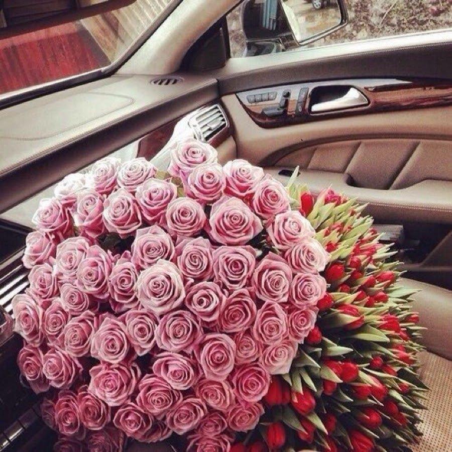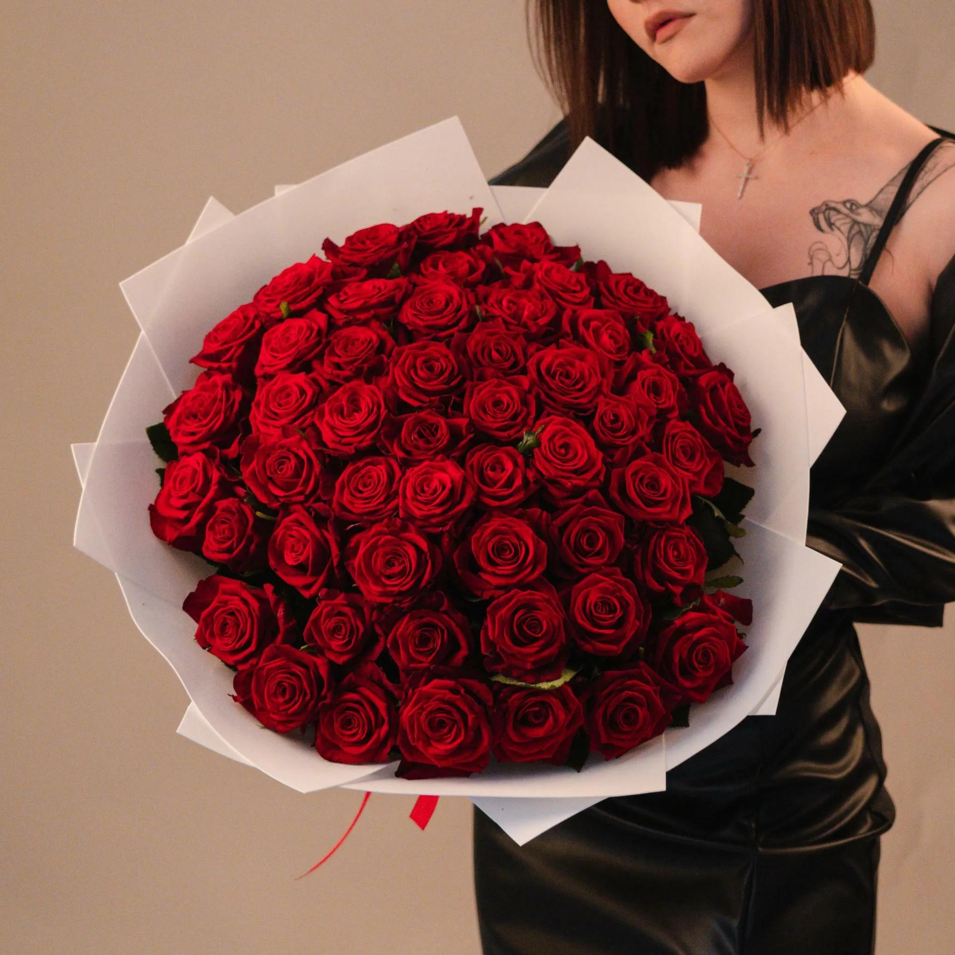 Большой букет и девушка роз