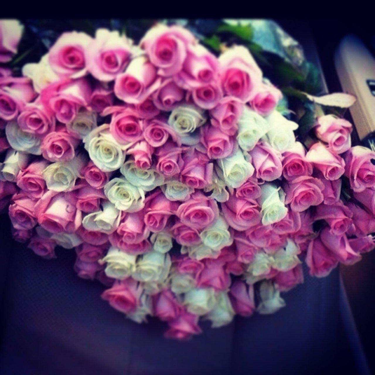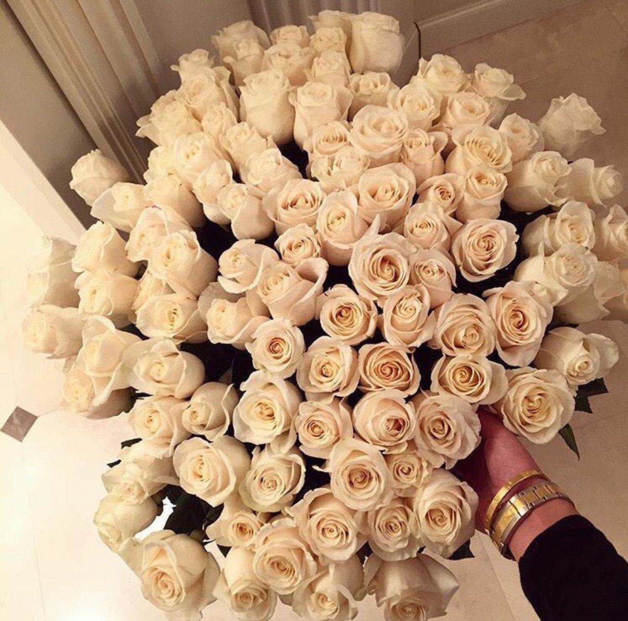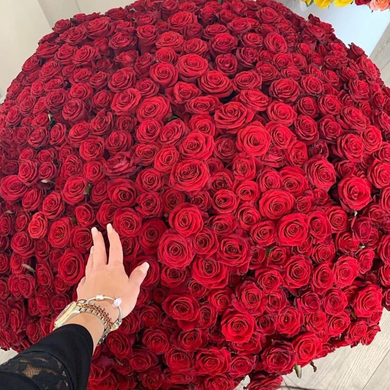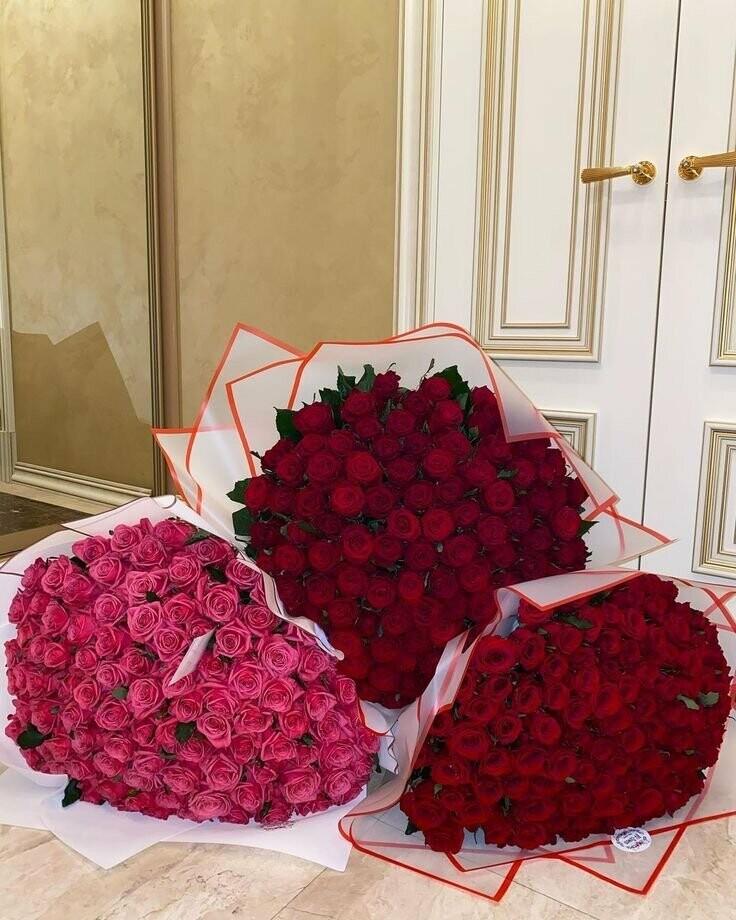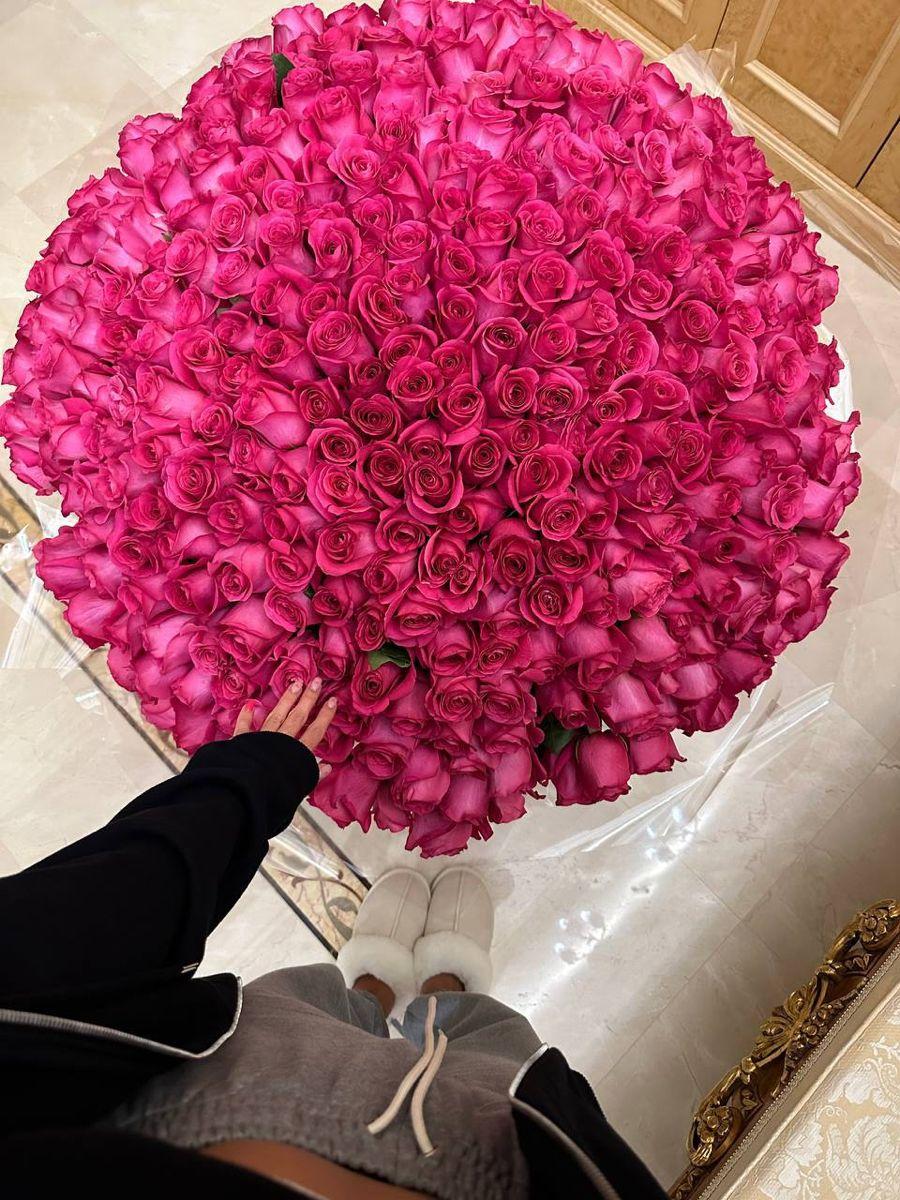 Большой букет и девушка роз