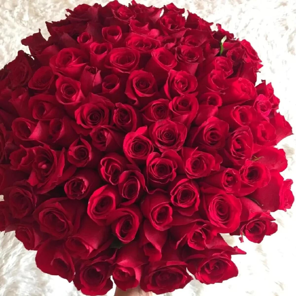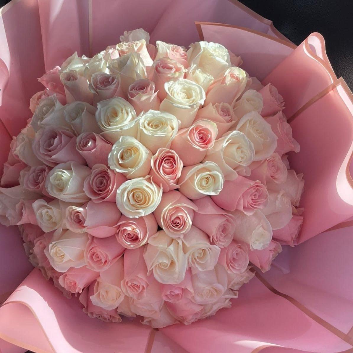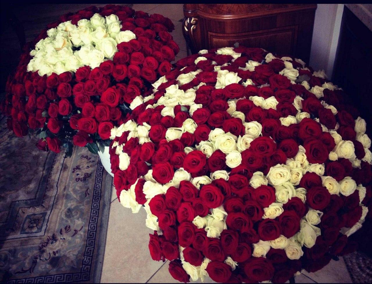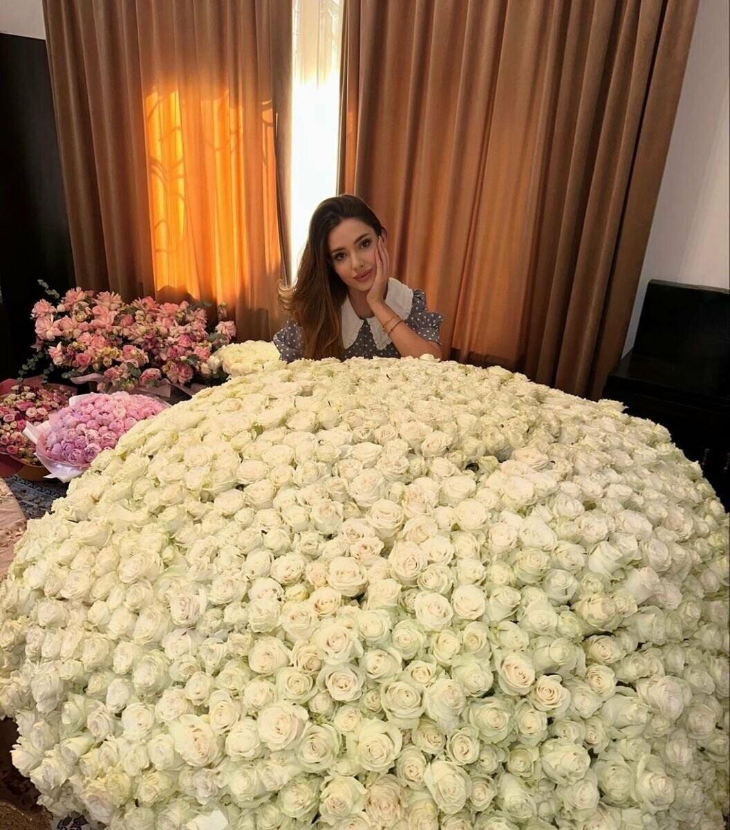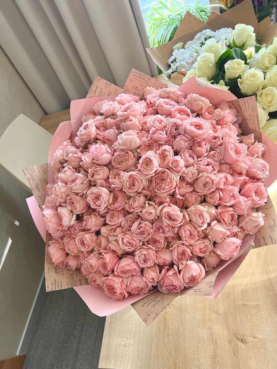 Большой букет и девушка роз