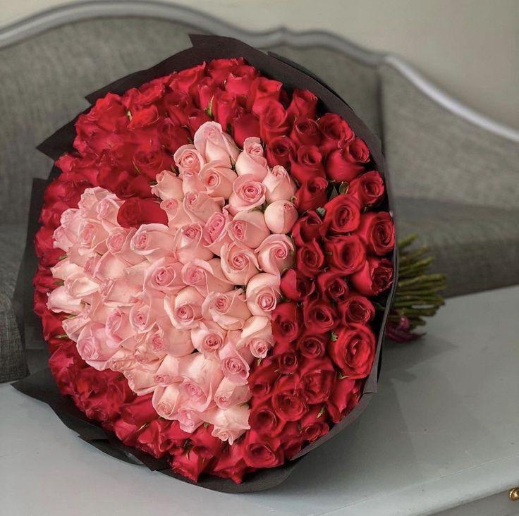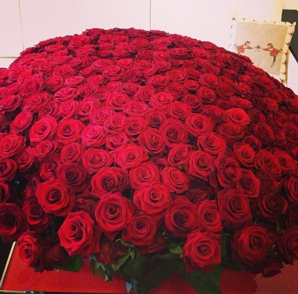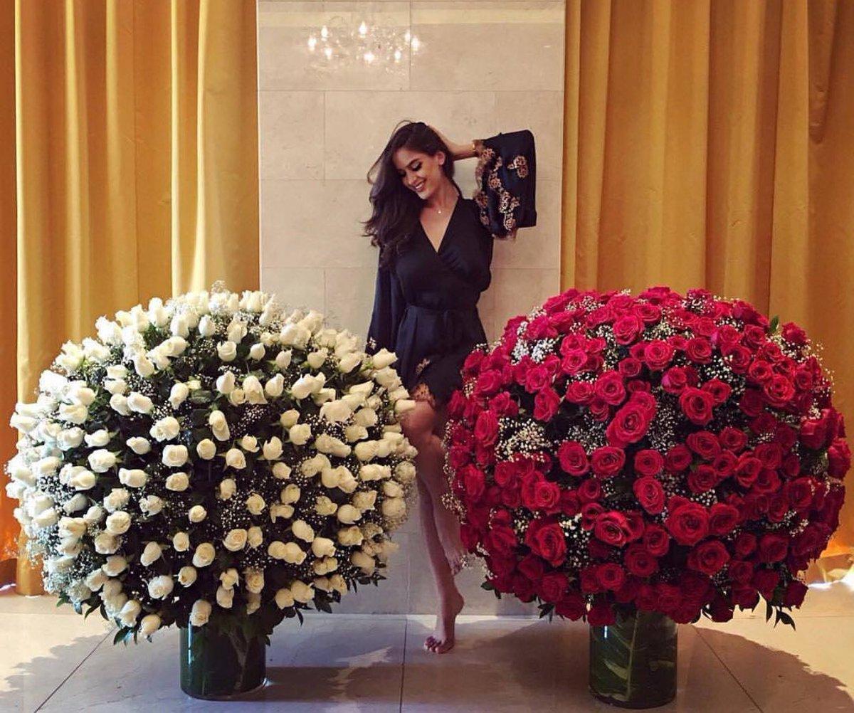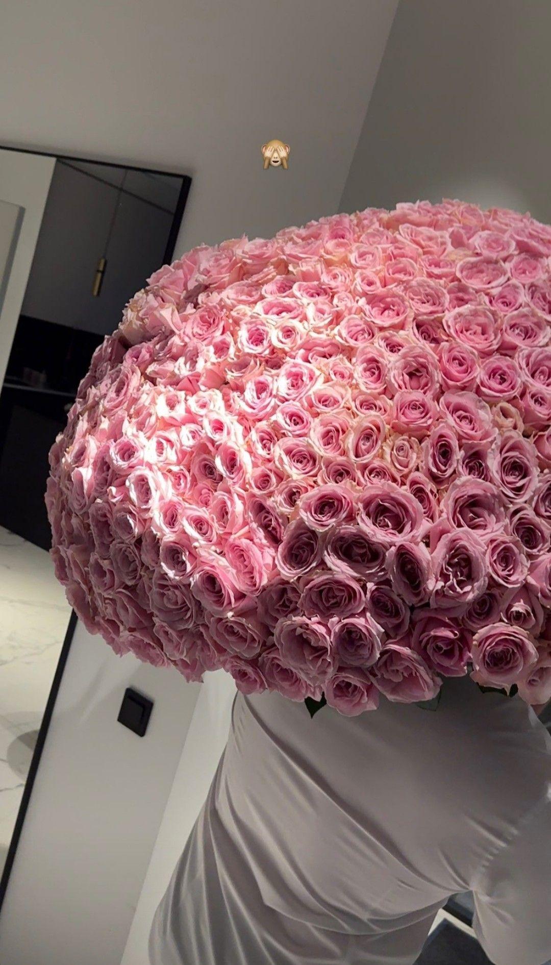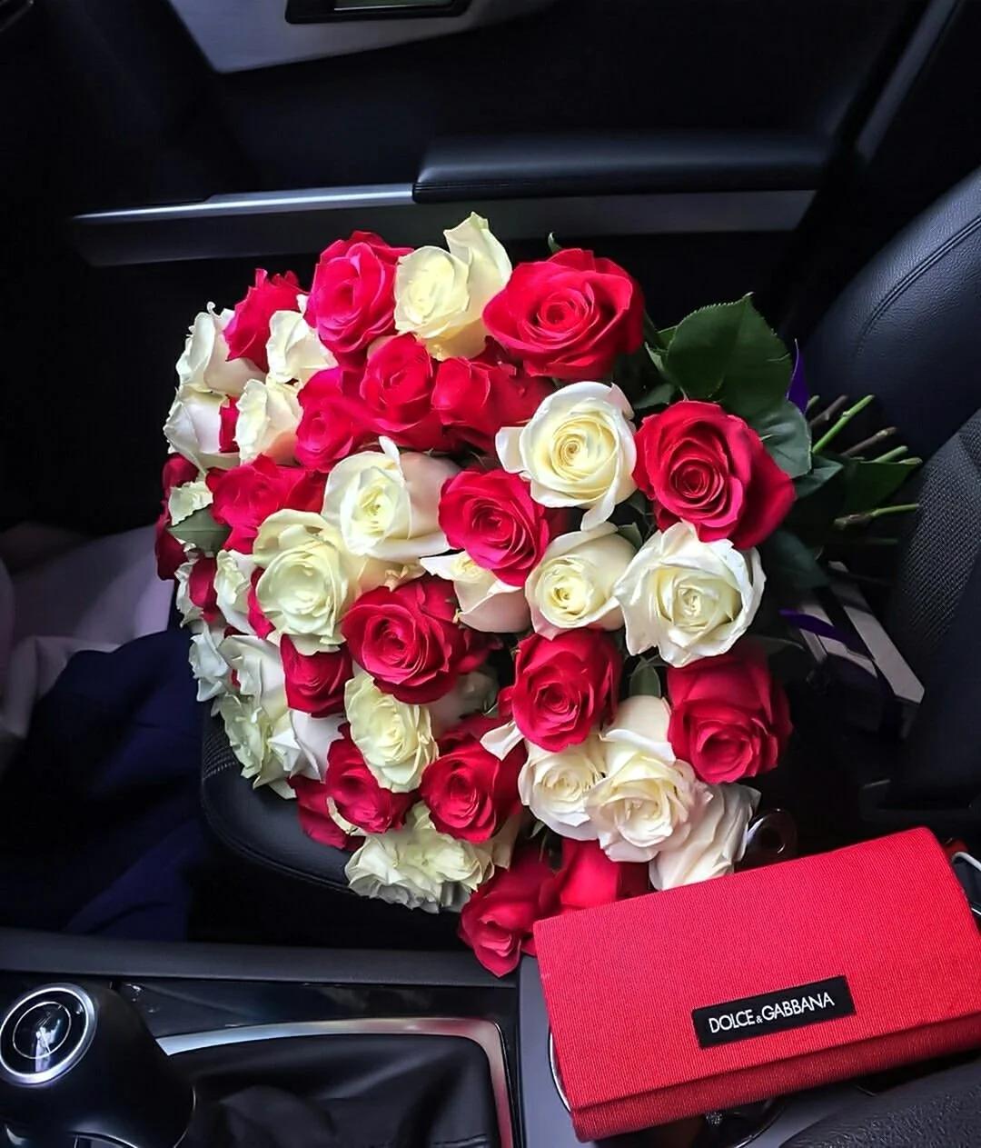 Большой букет и девушка роз