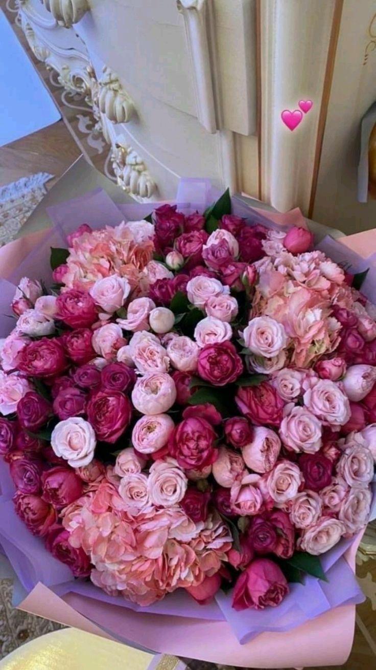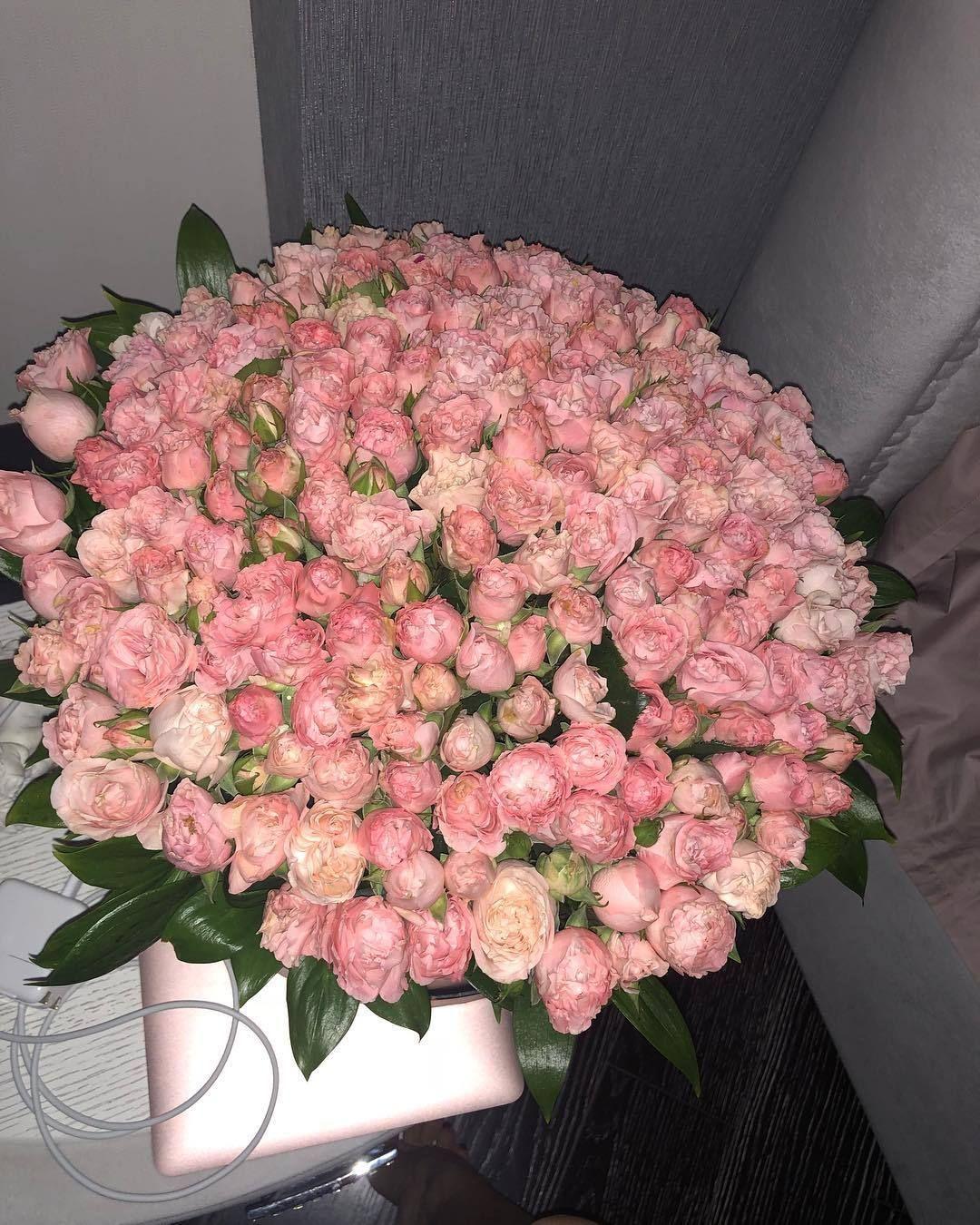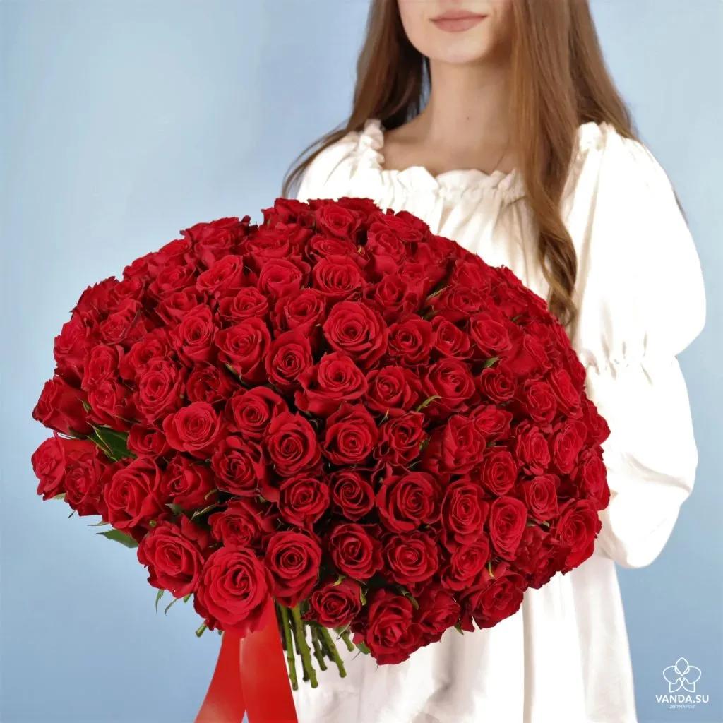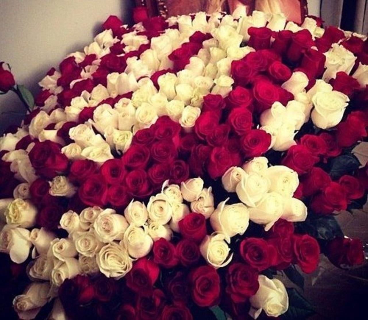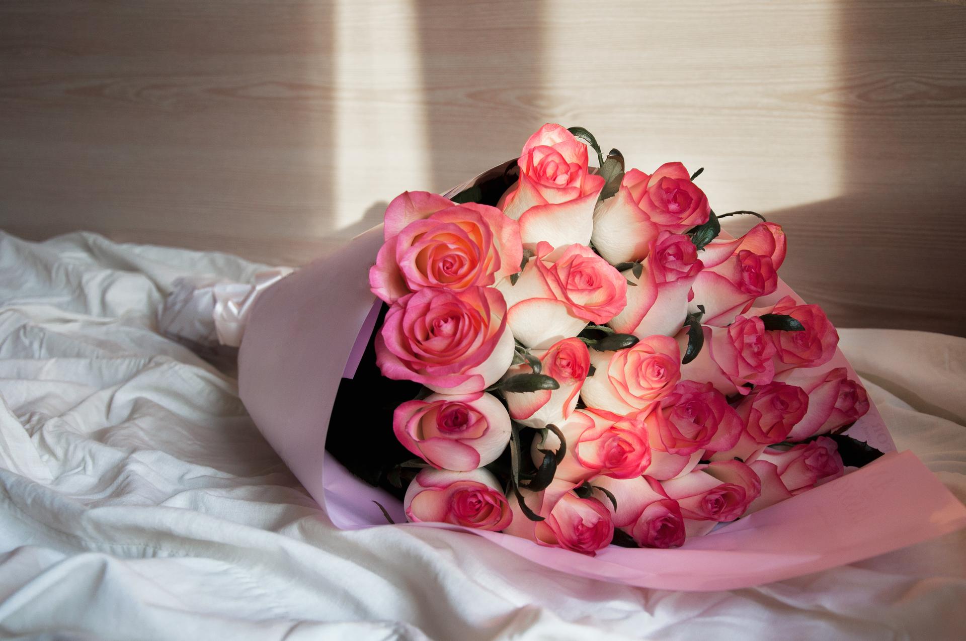 Большой букет и девушка роз