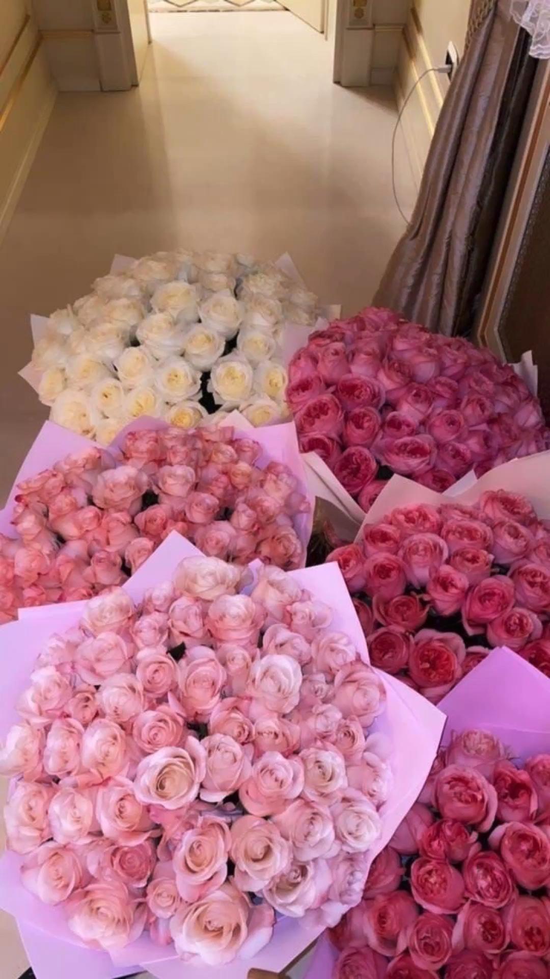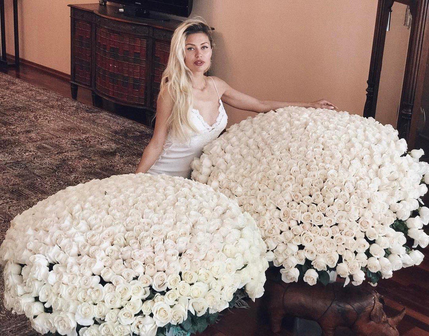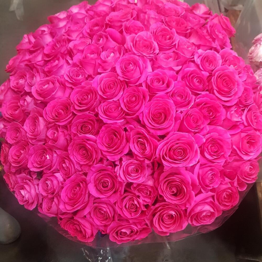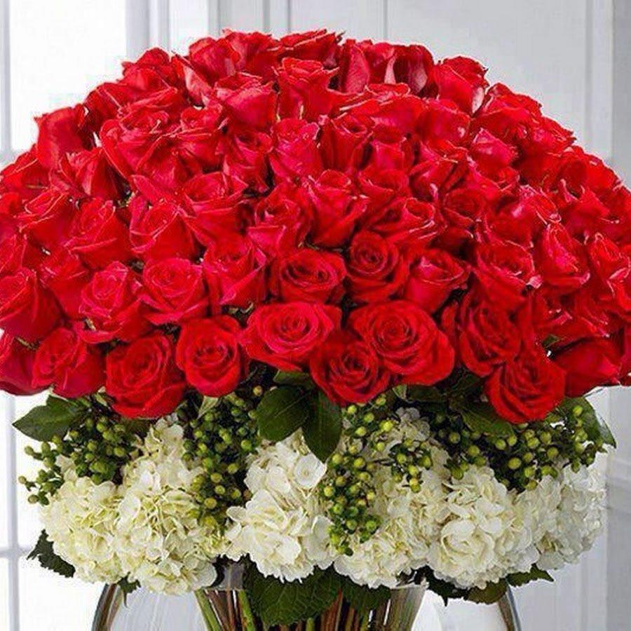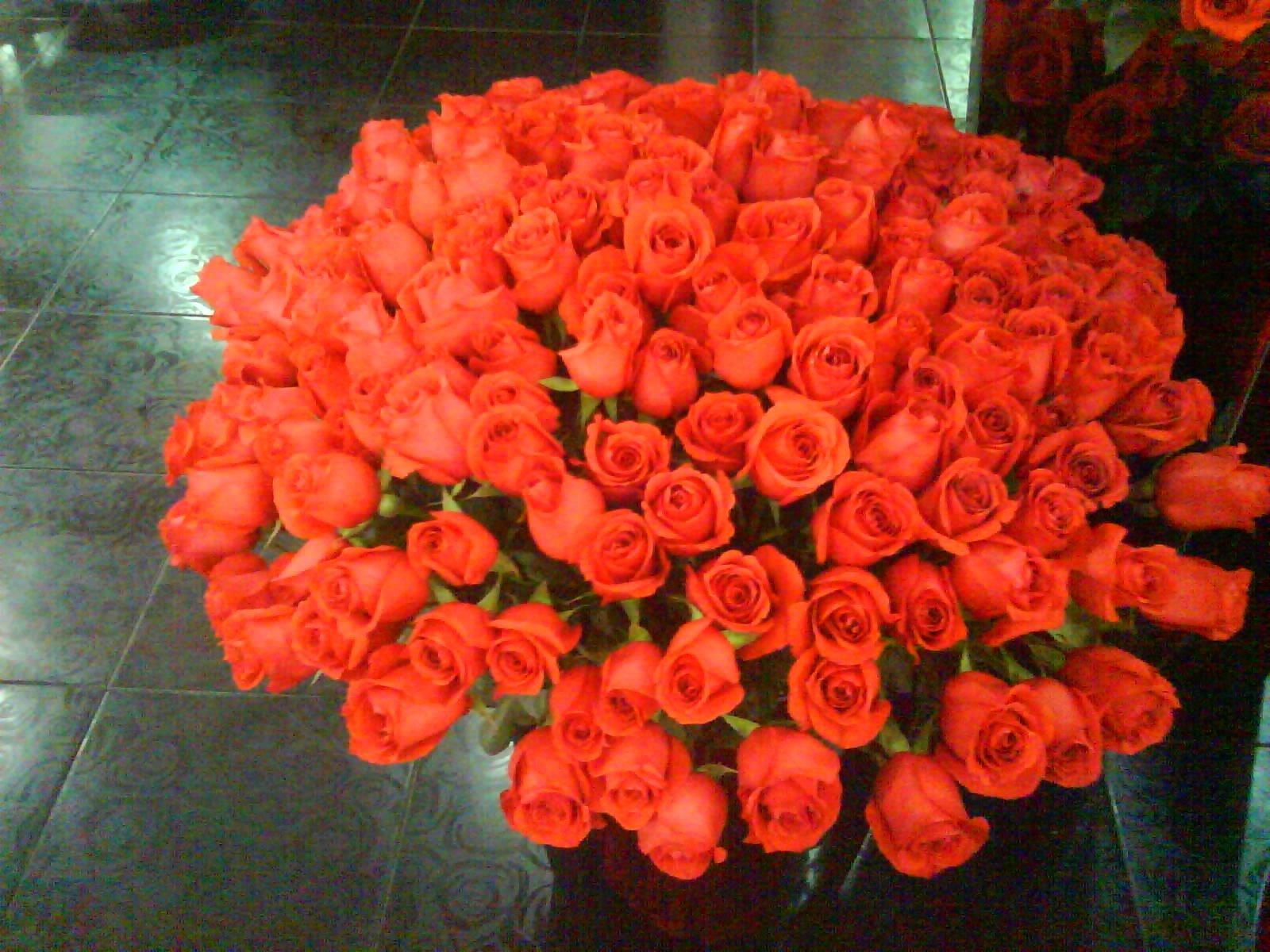 Большой букет и девушка роз