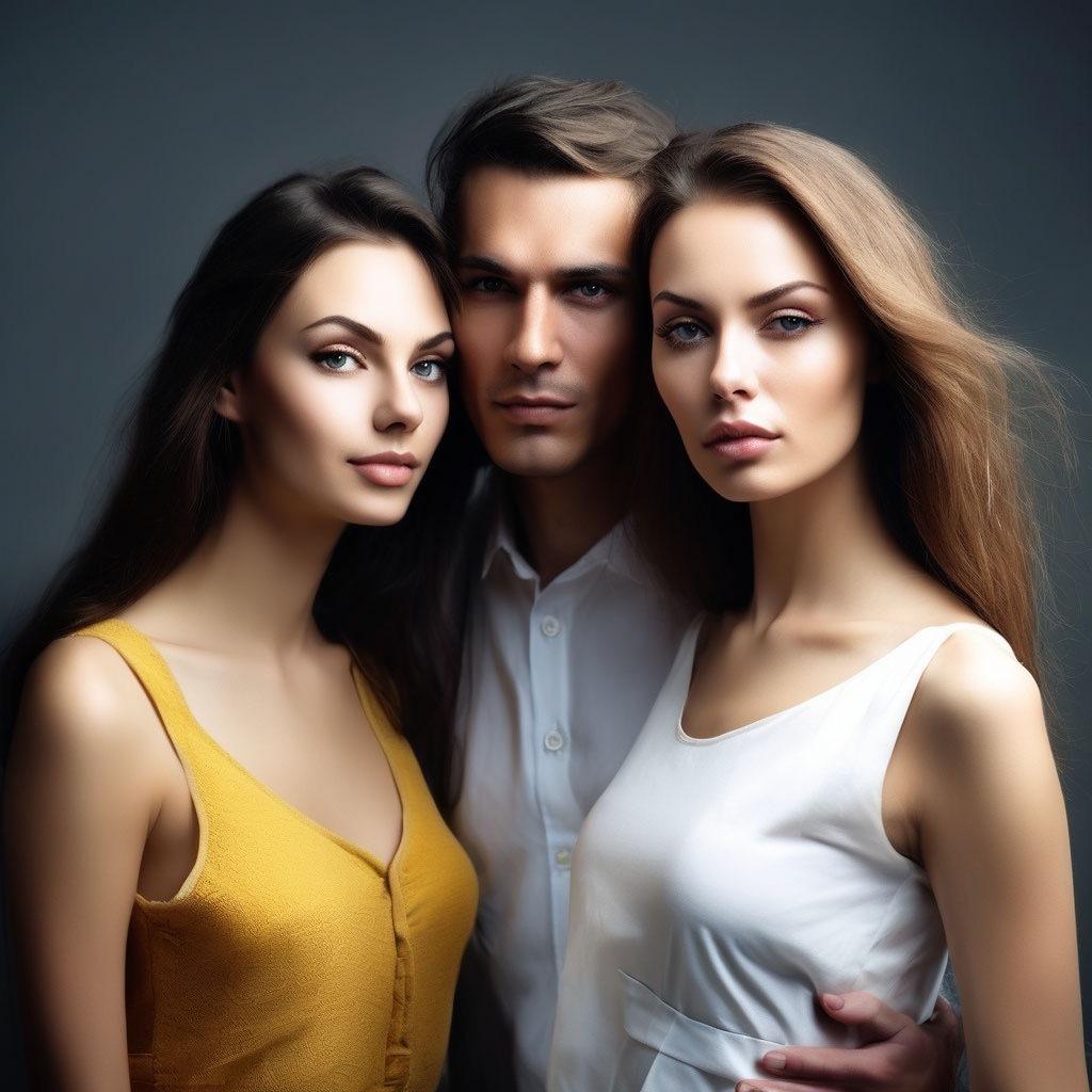Красивые картинки Два мужчины и женщина с надписями