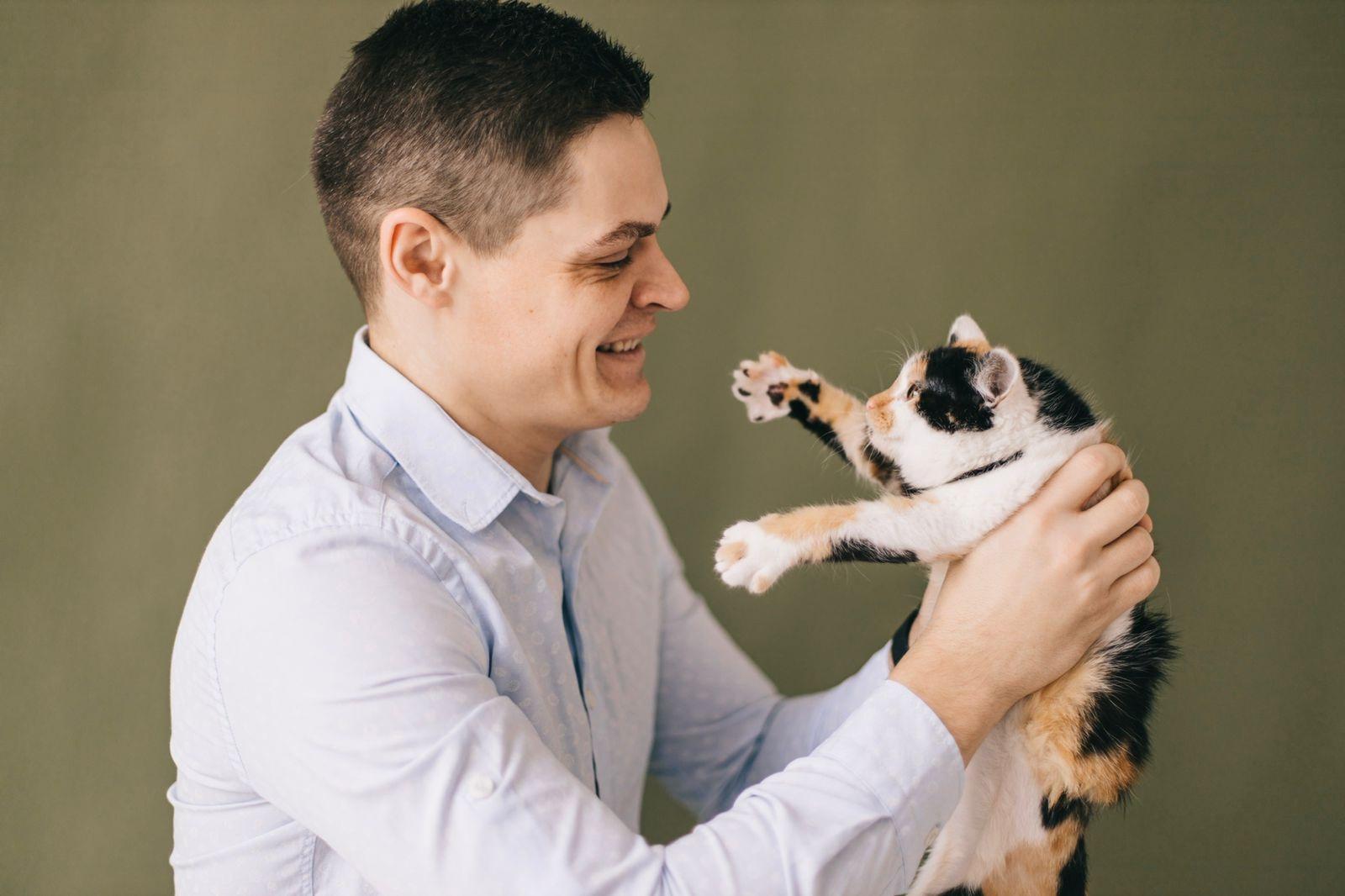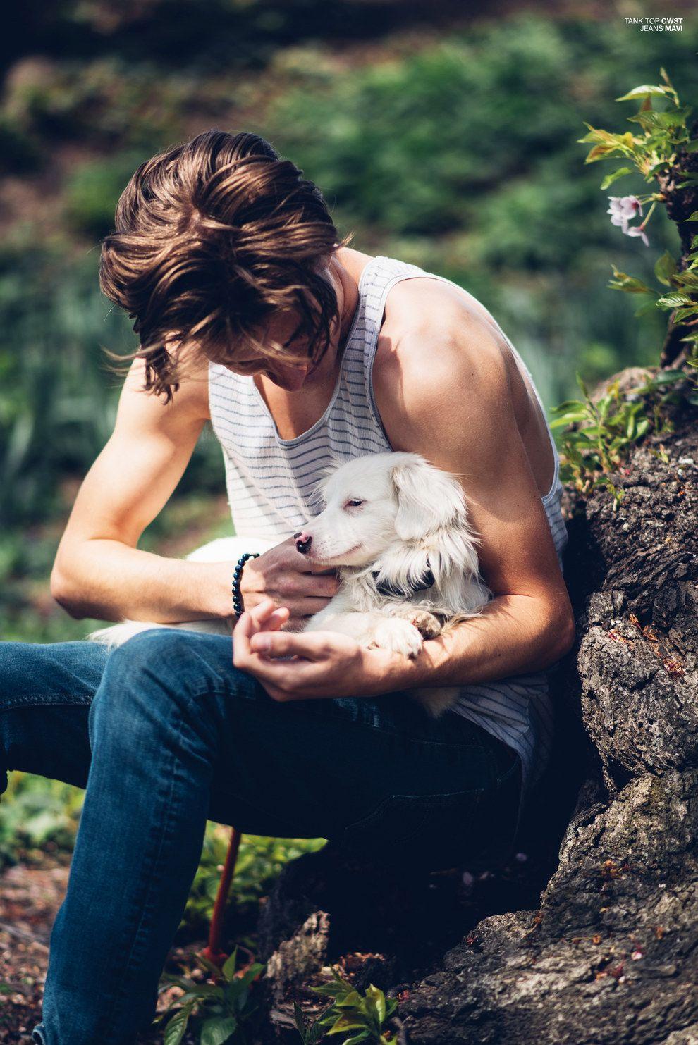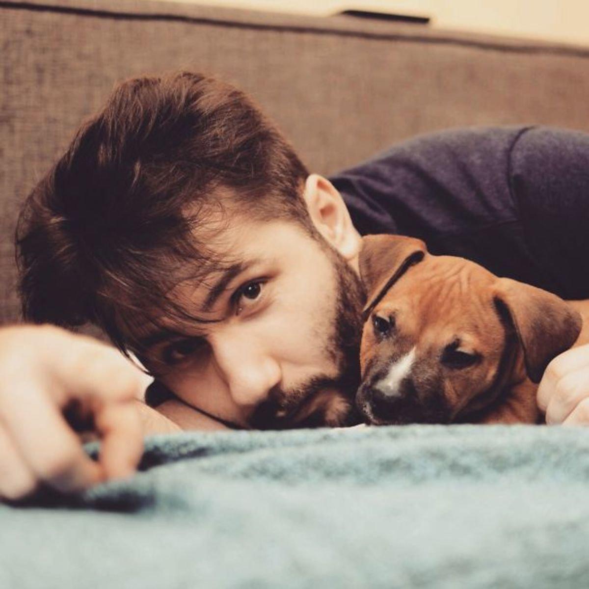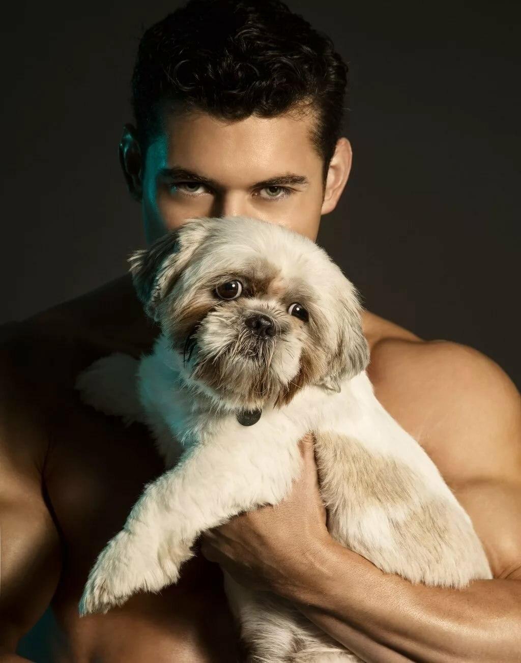 мужчина любит животных