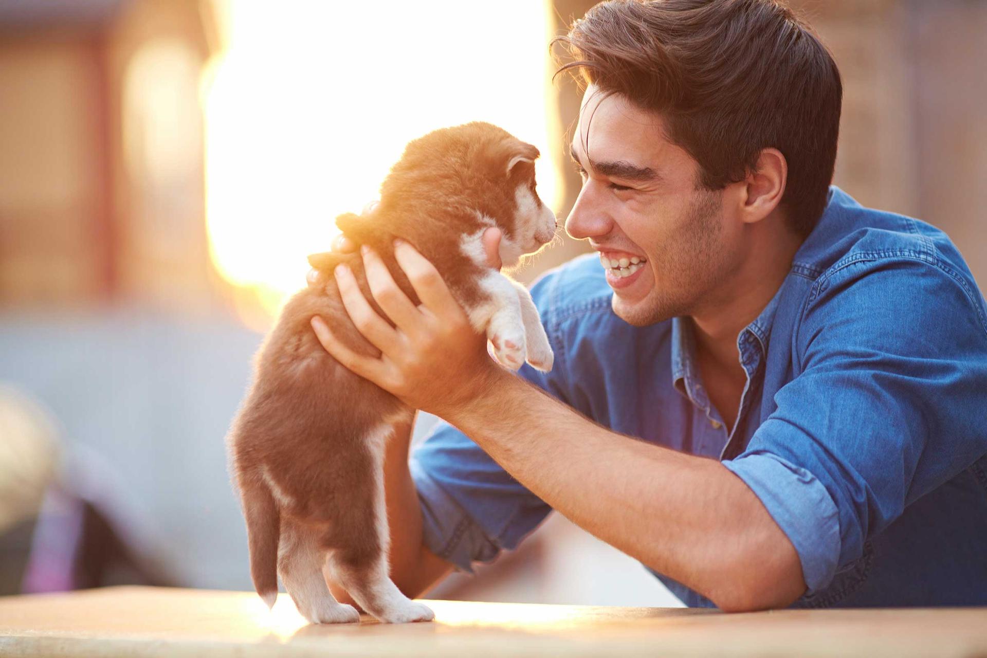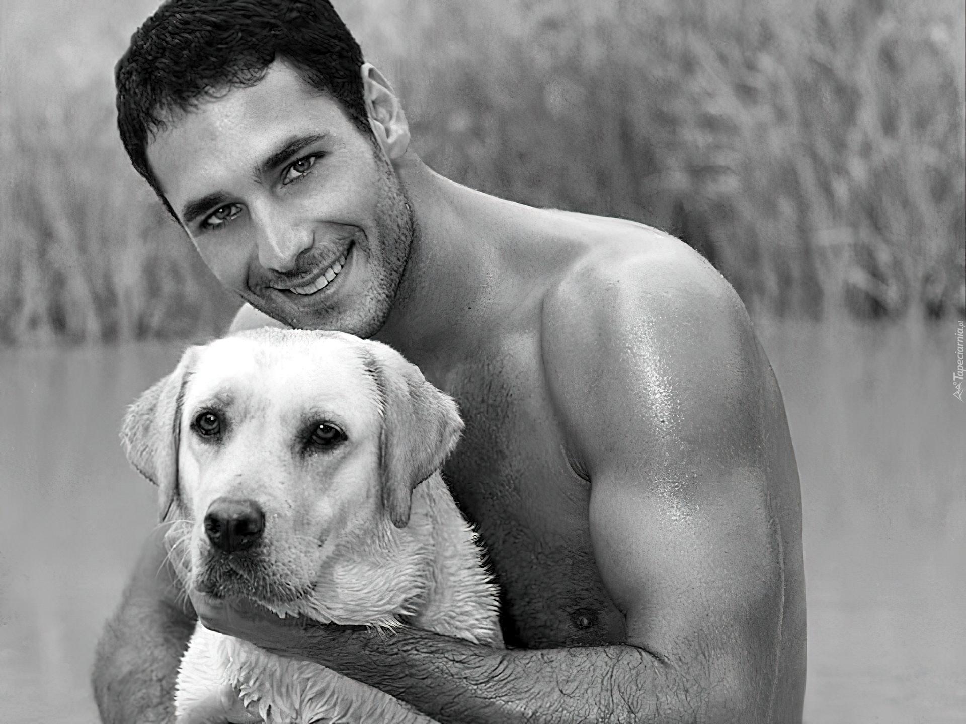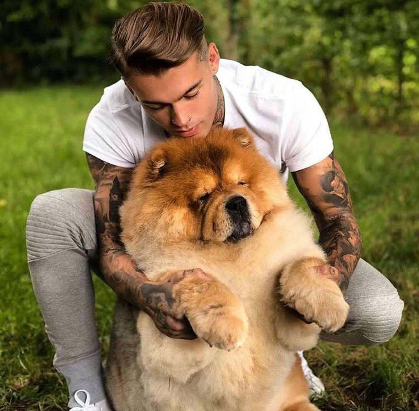 мужчина любит животных