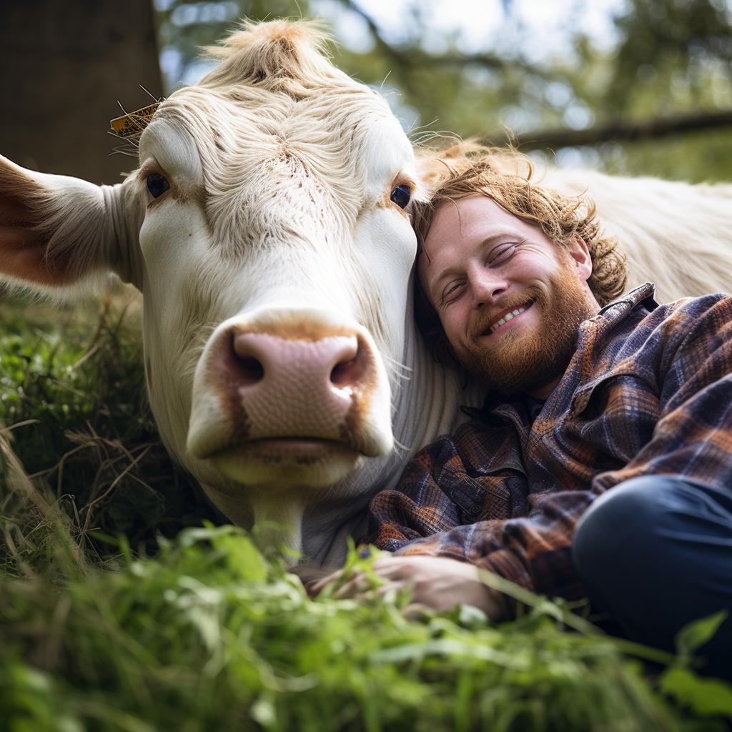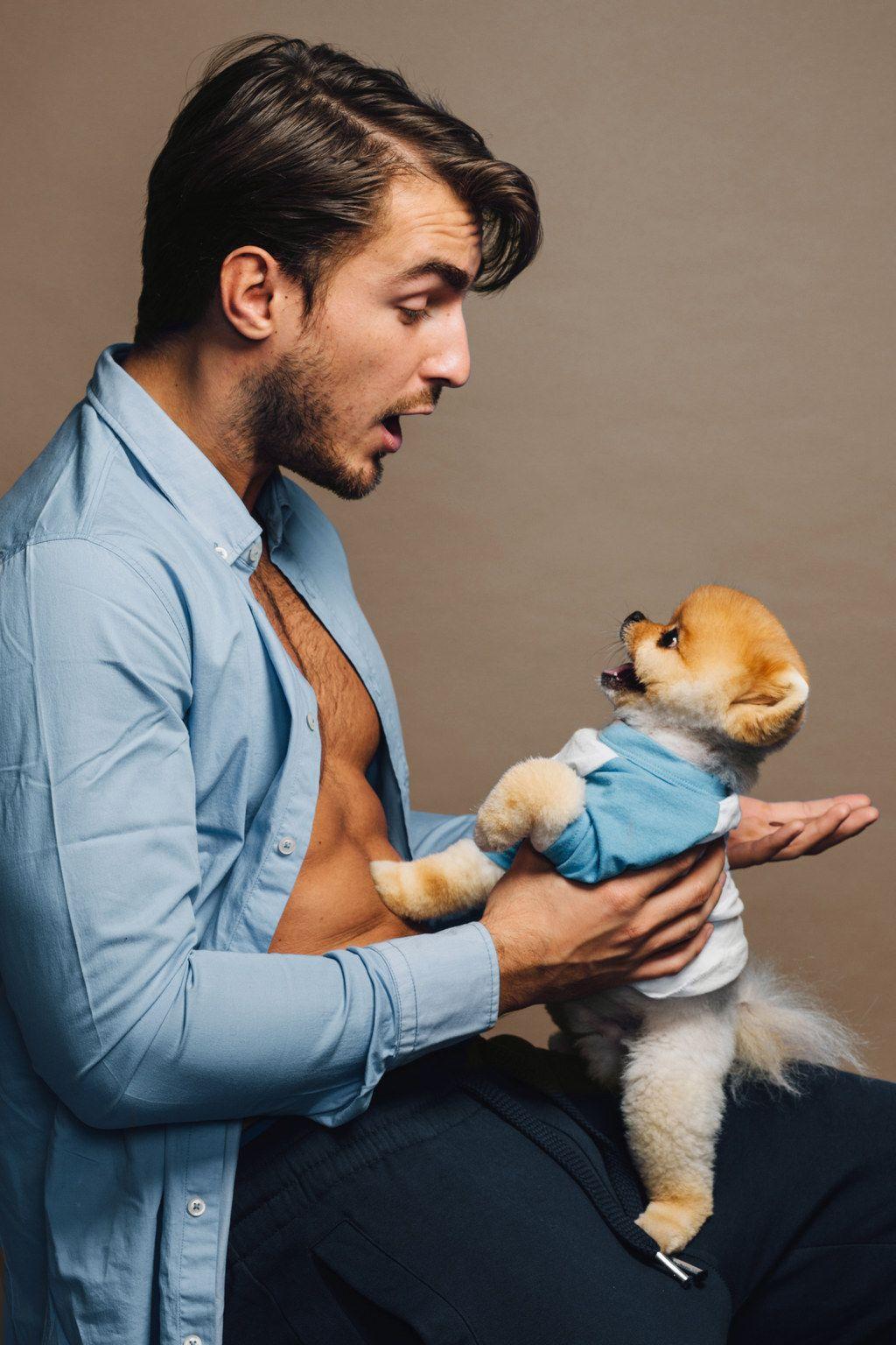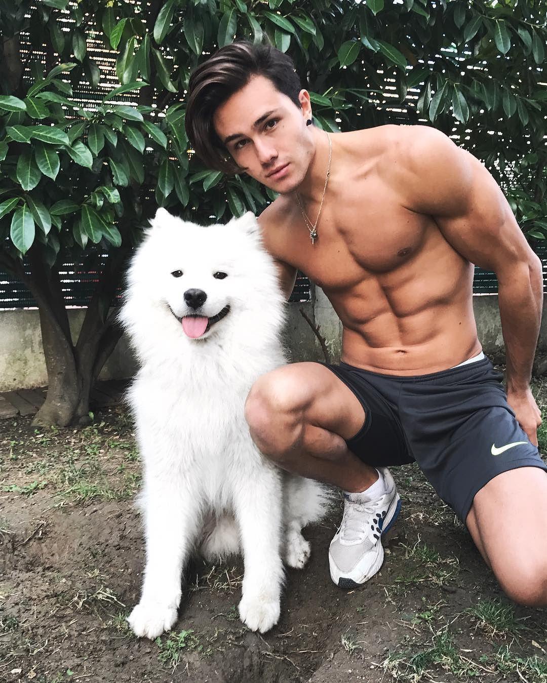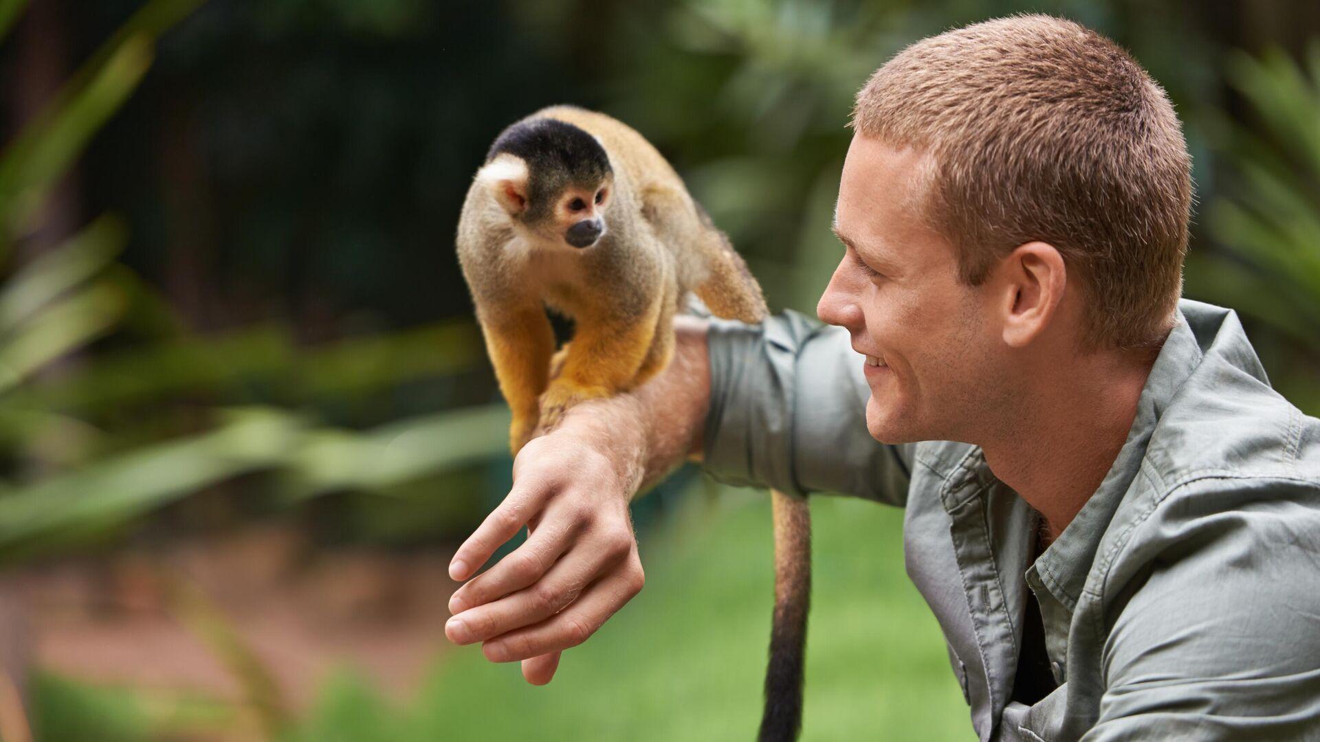 мужчина любит животных