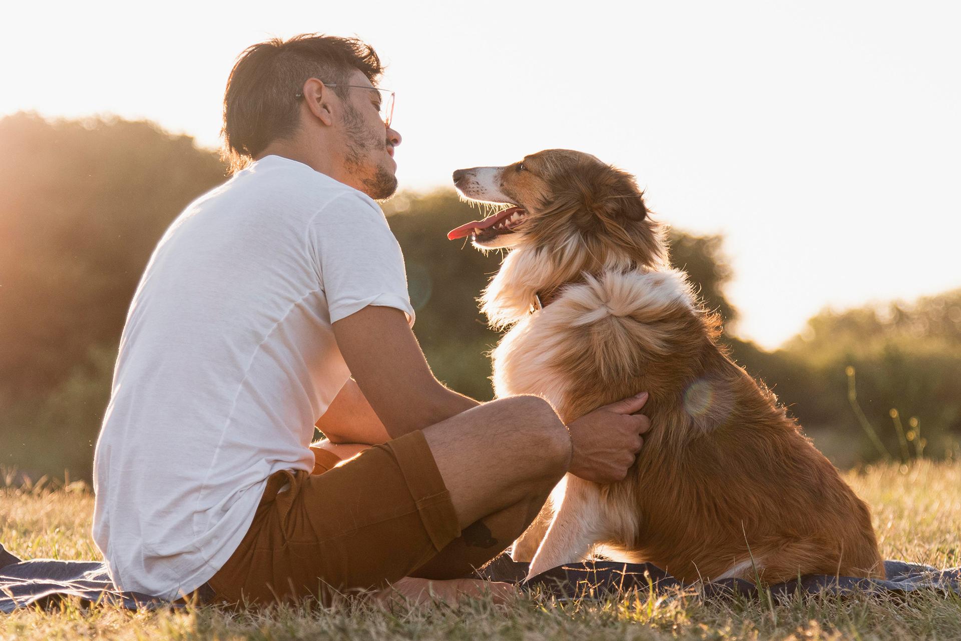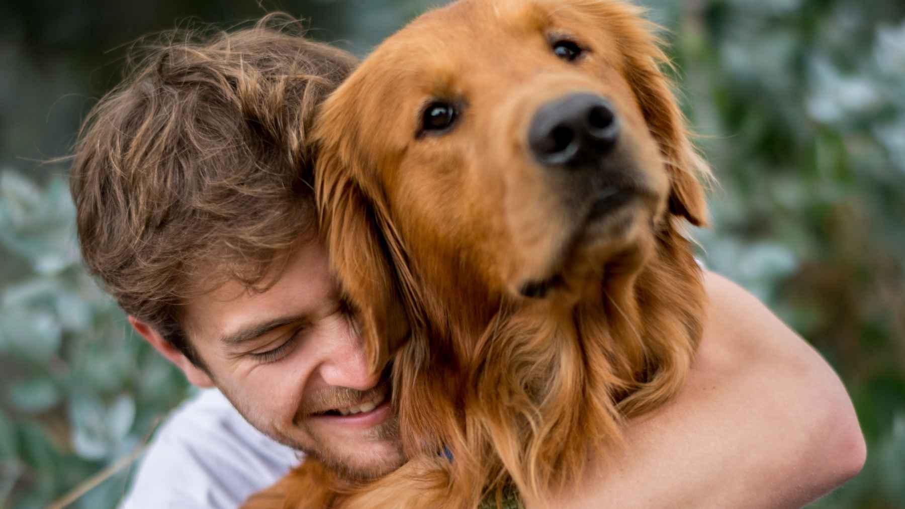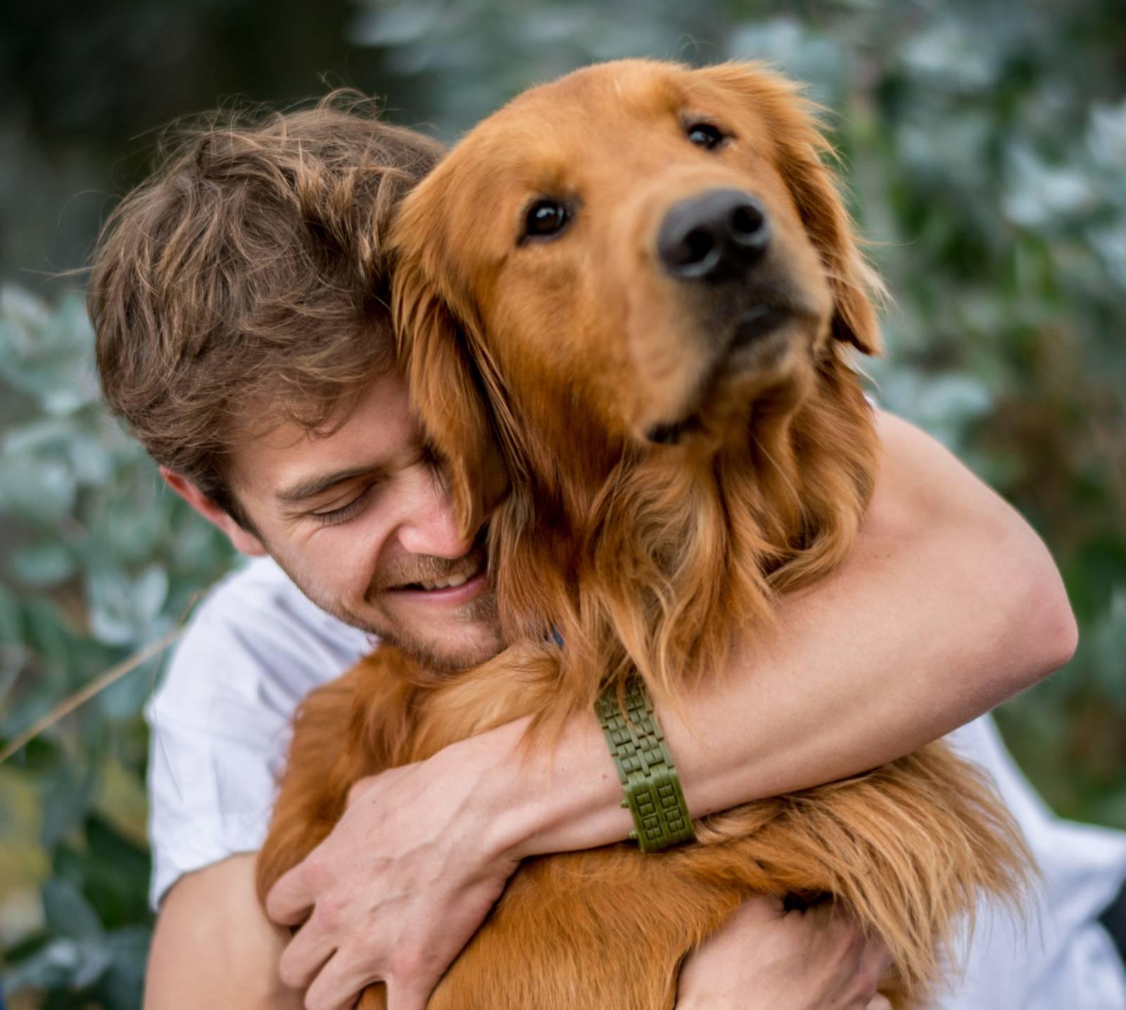 человек обнимает собаку