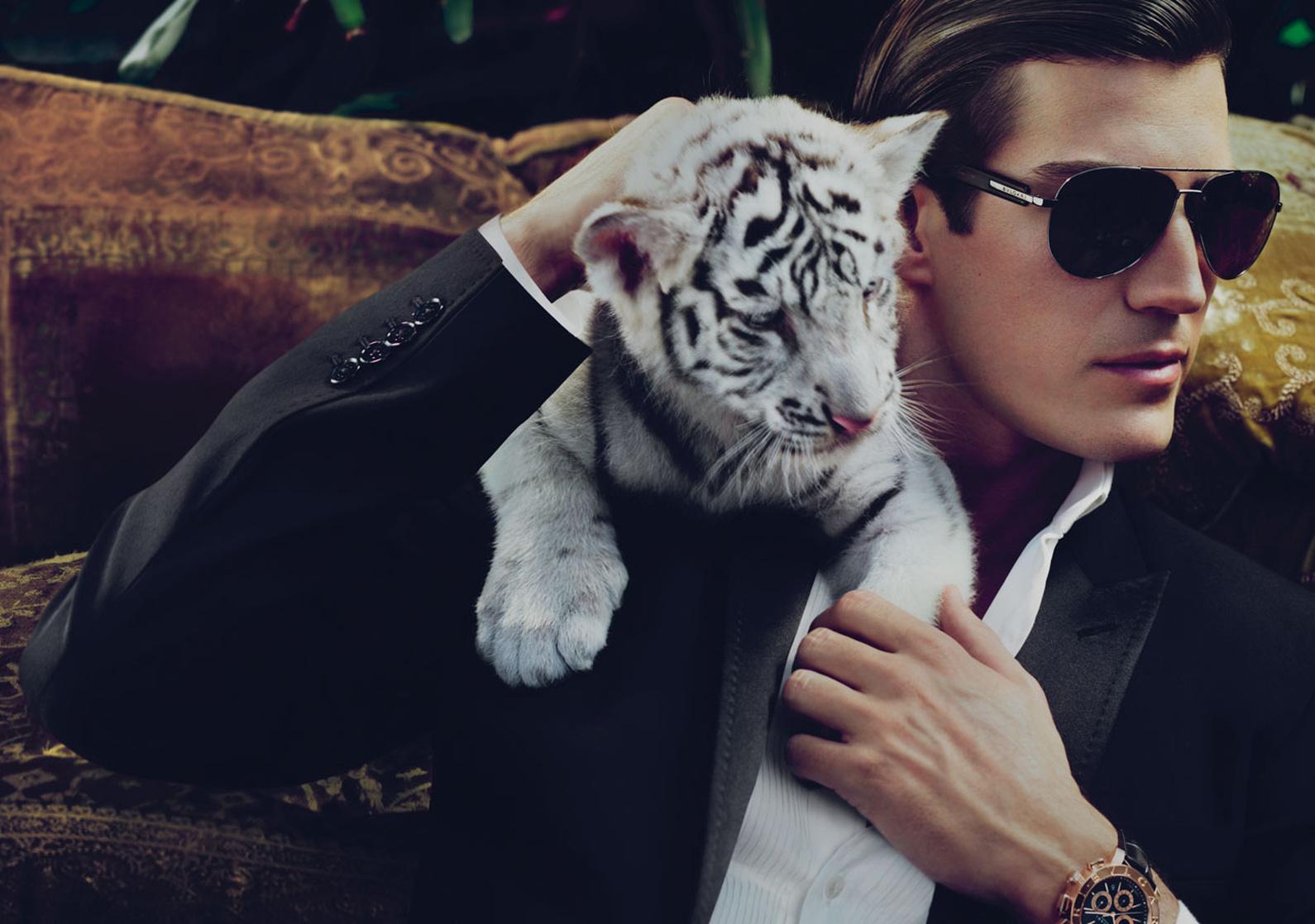 обнимает тигра