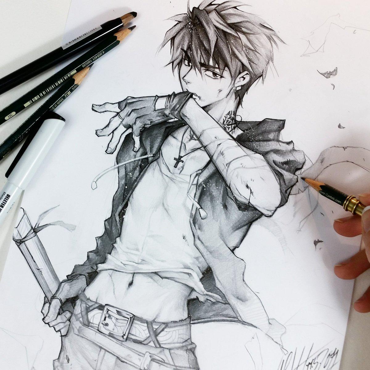 скетчи аниме парней