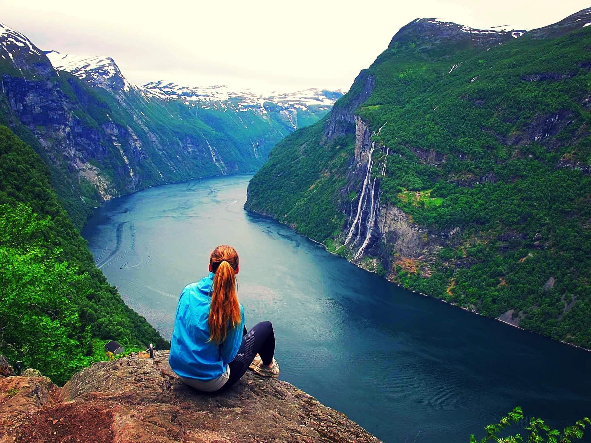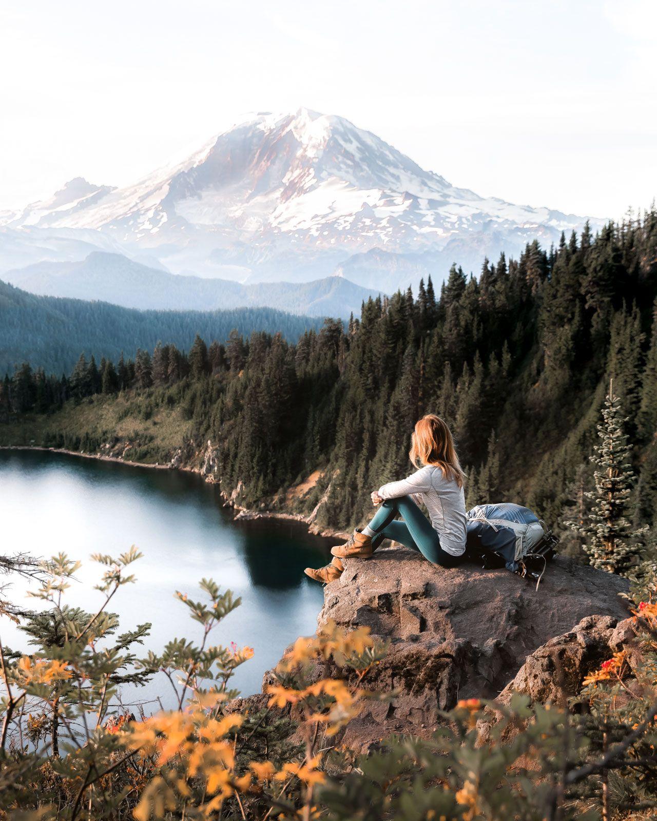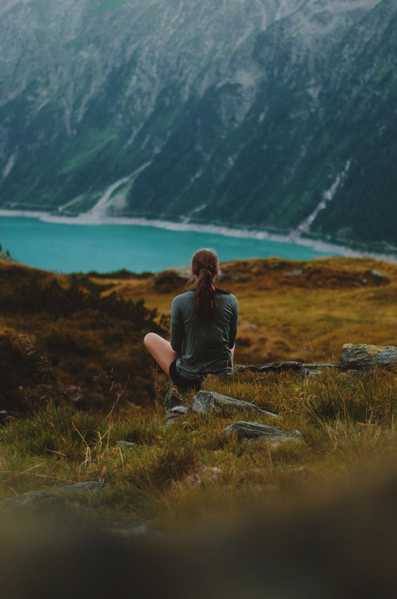 девушка горы озеро