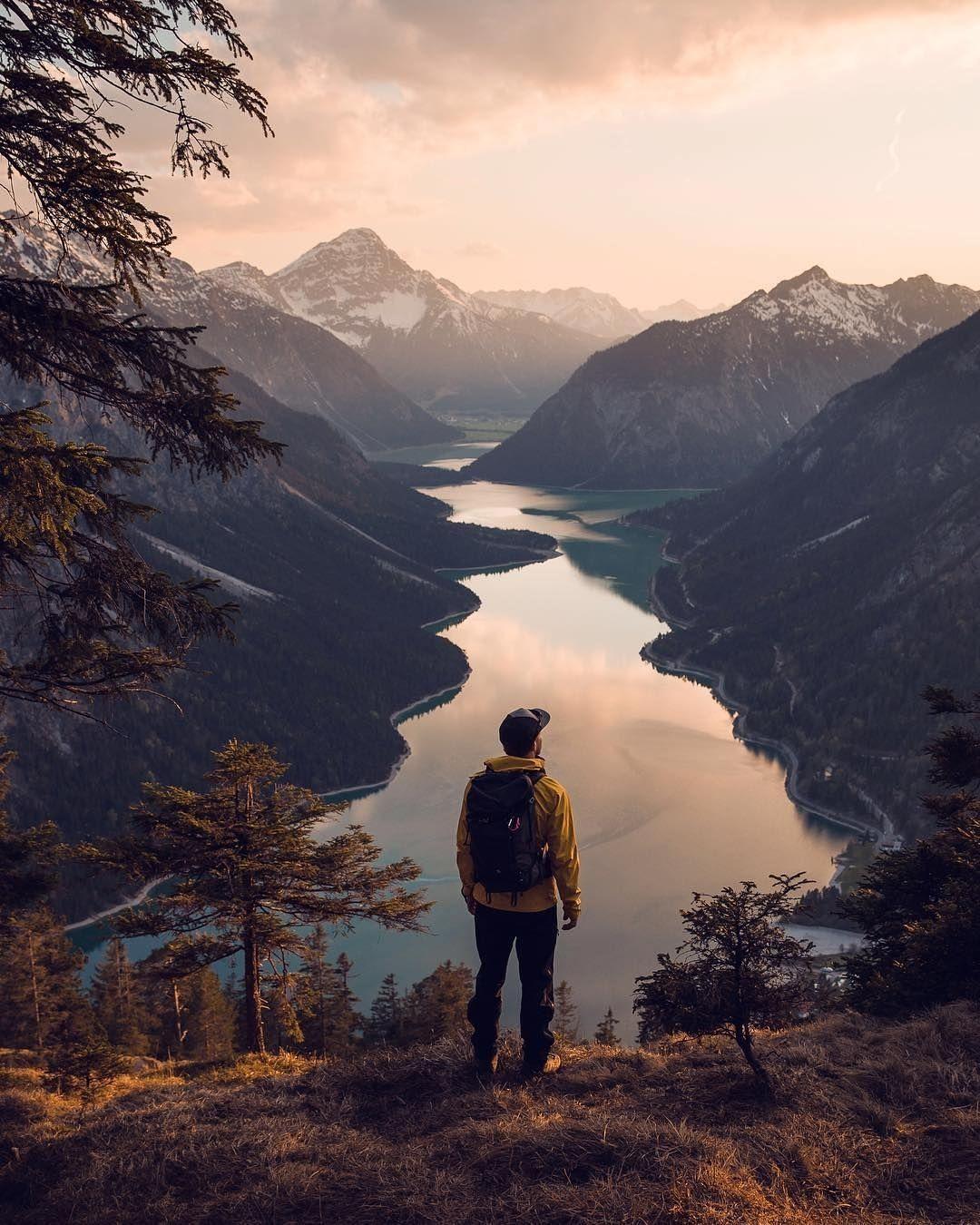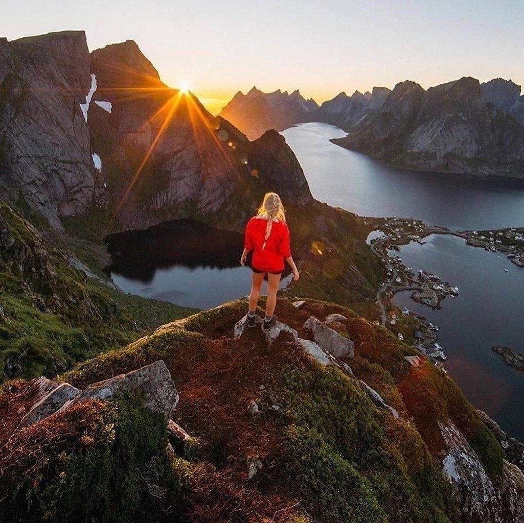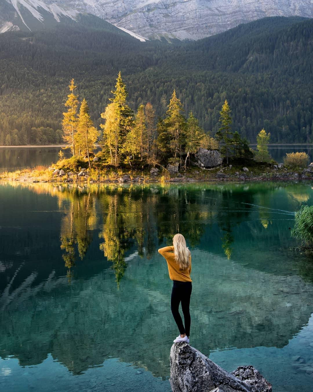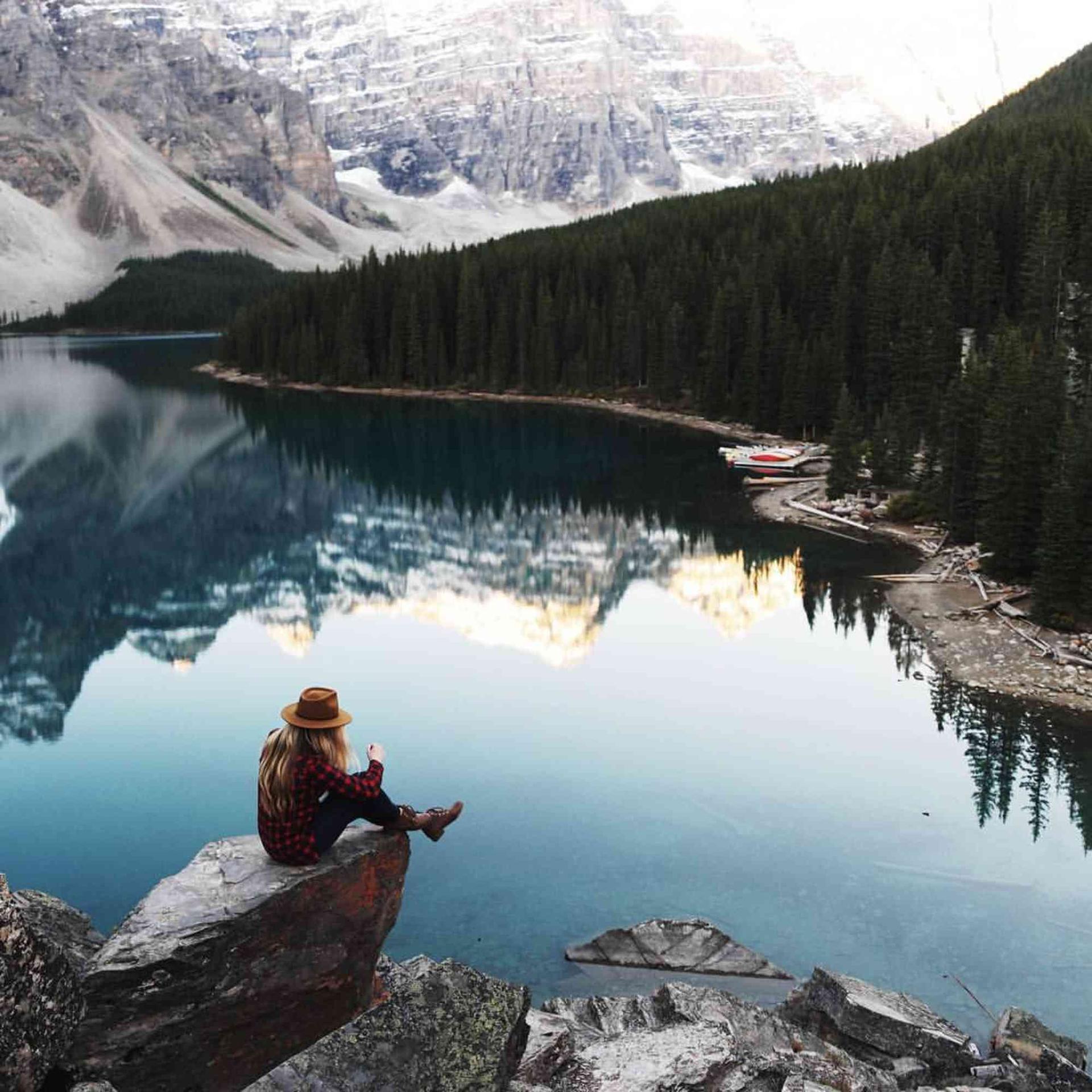 девушка горы озеро