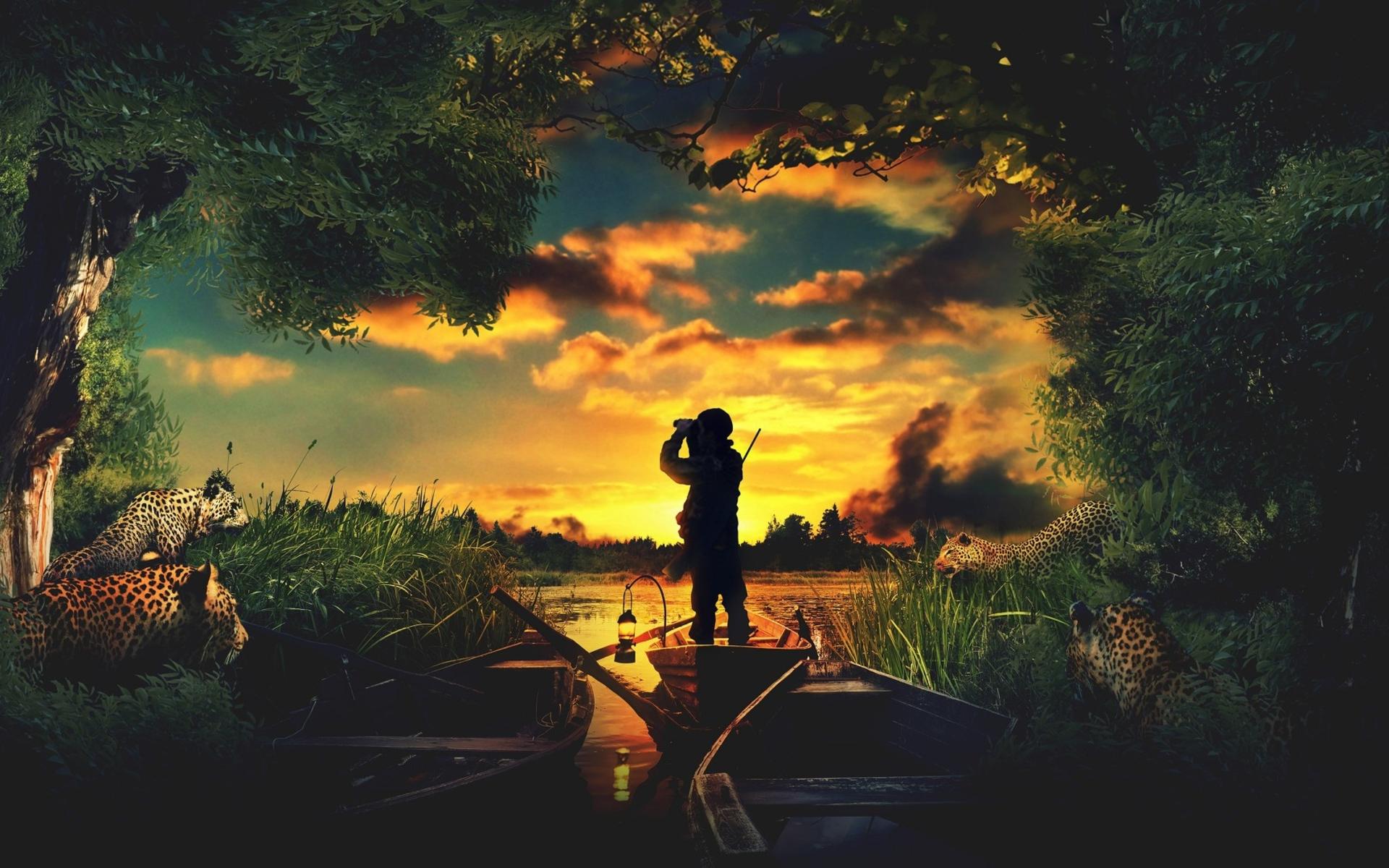 закат с человеком