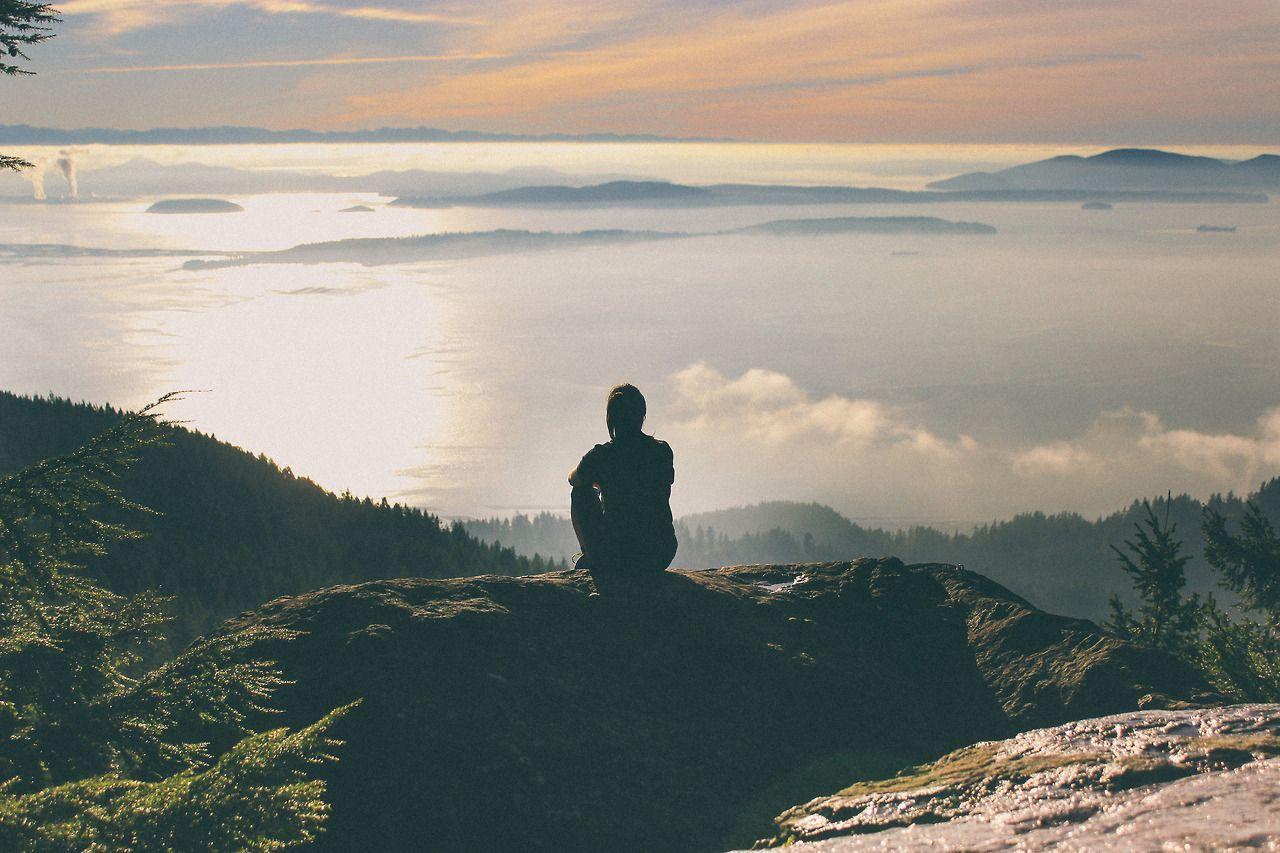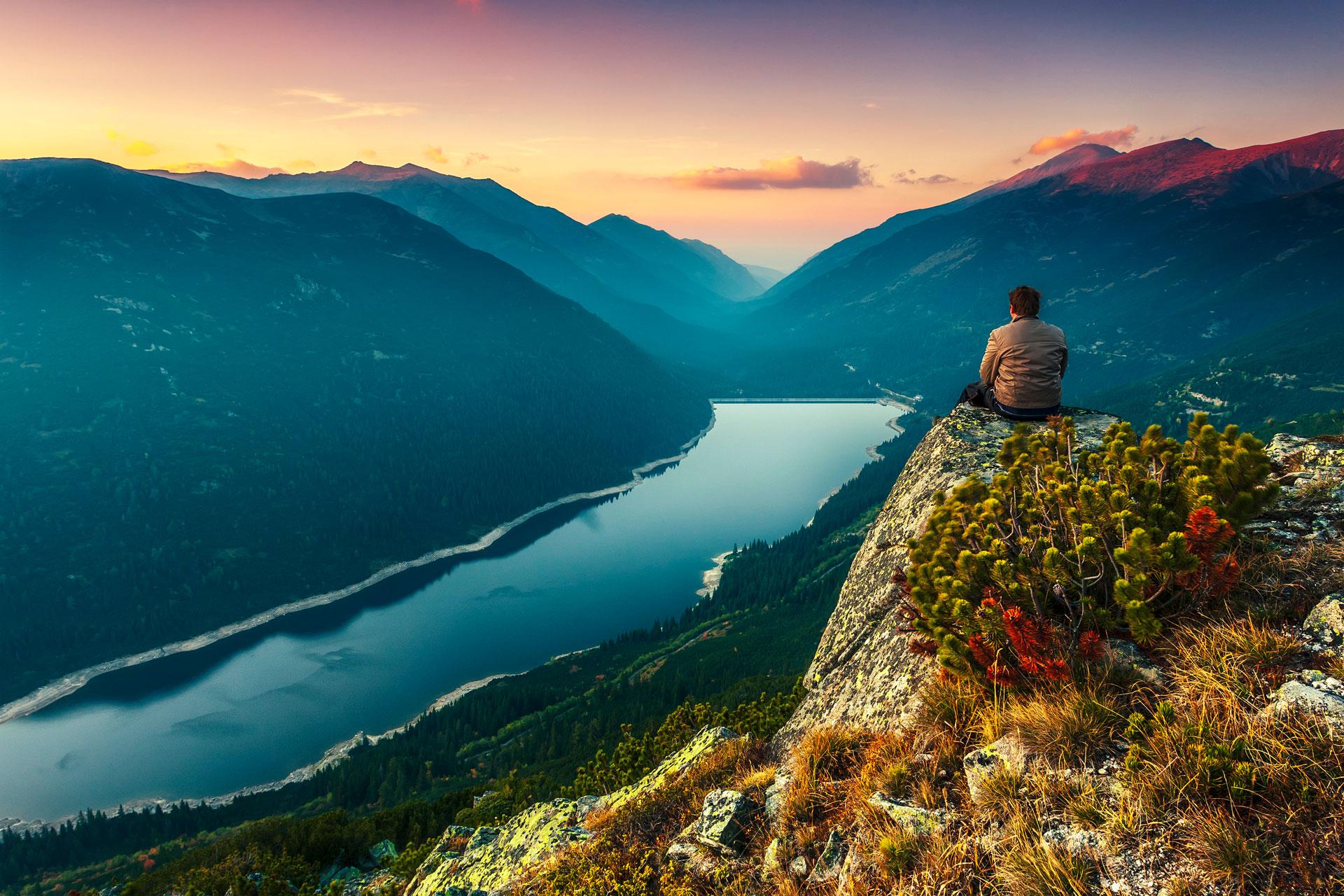 человек сидит на обрыве